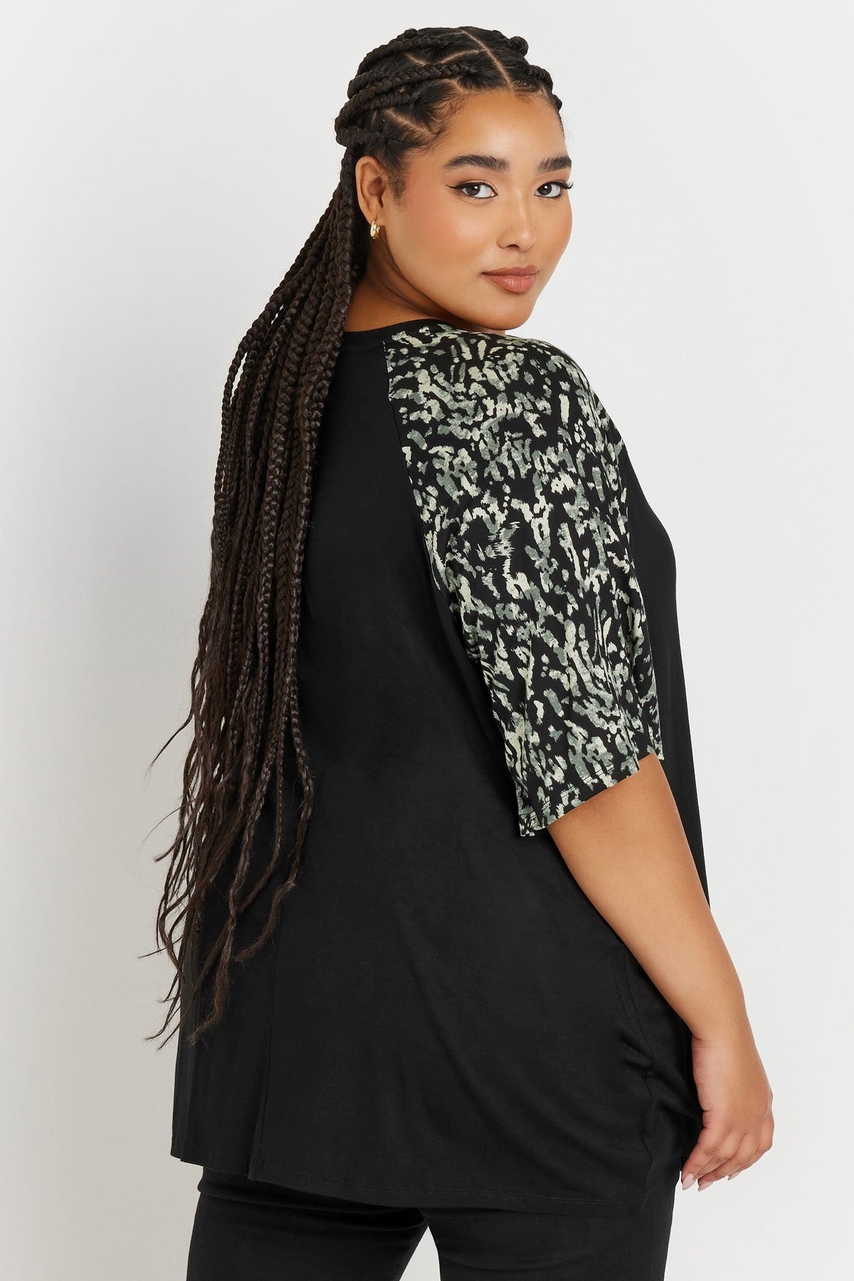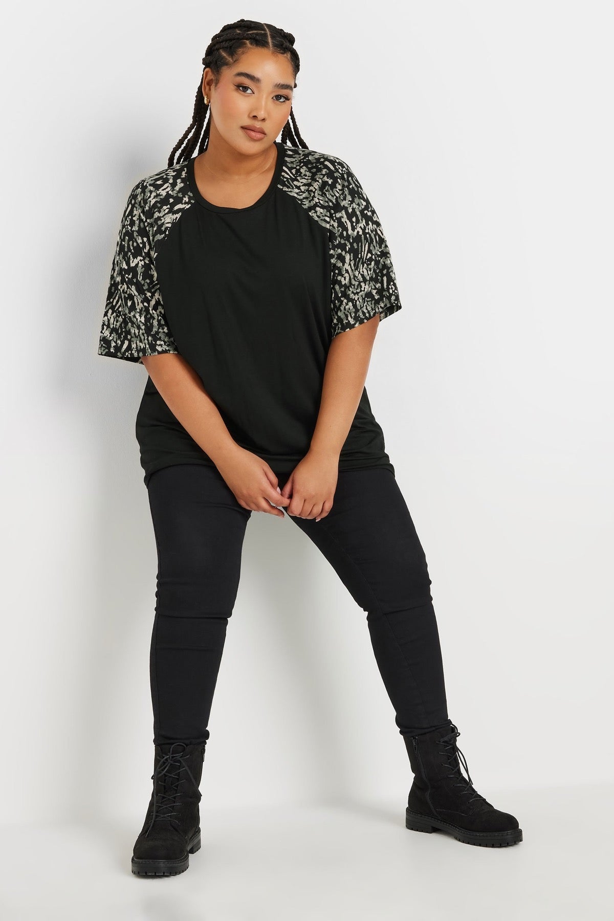 טישירט במידות גדולות שרוול קצר צווארון עגול עם הדפס 303734
