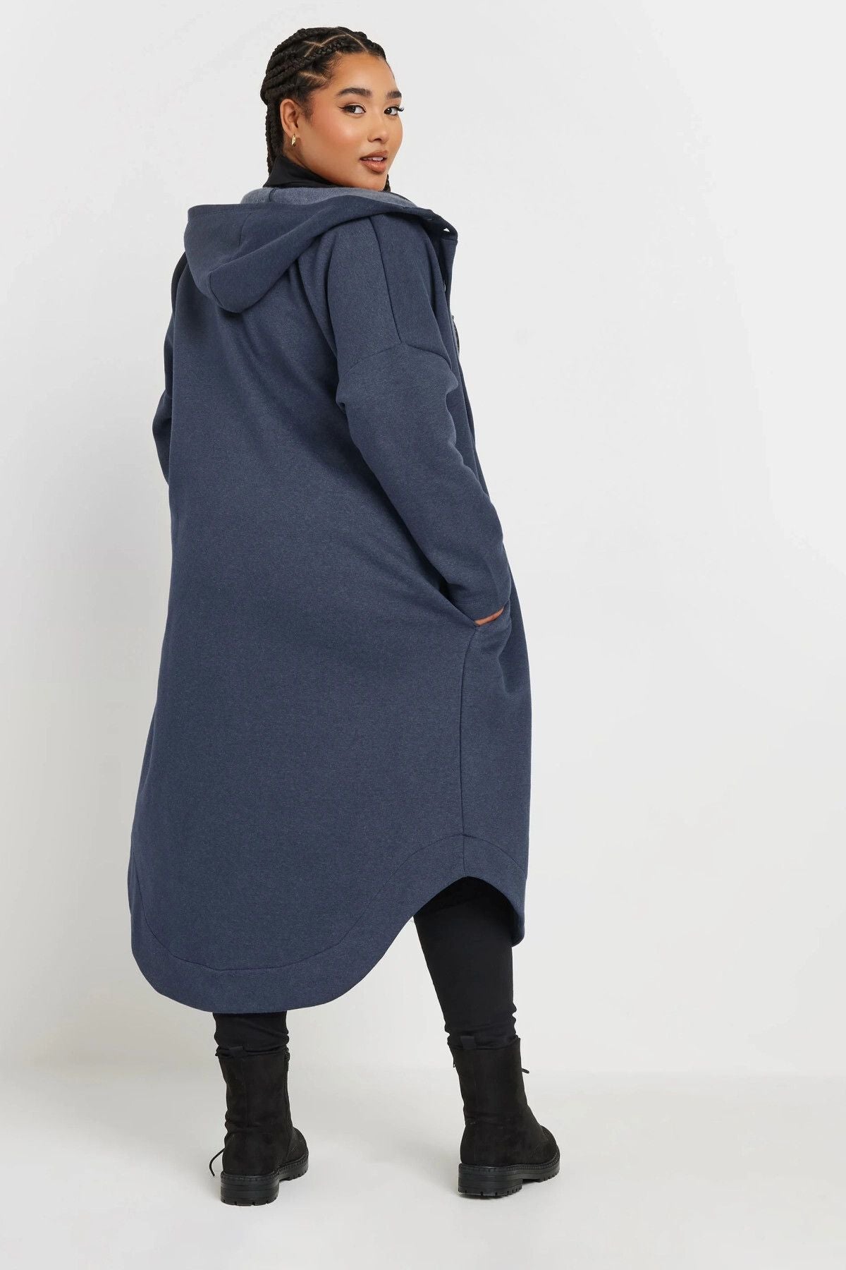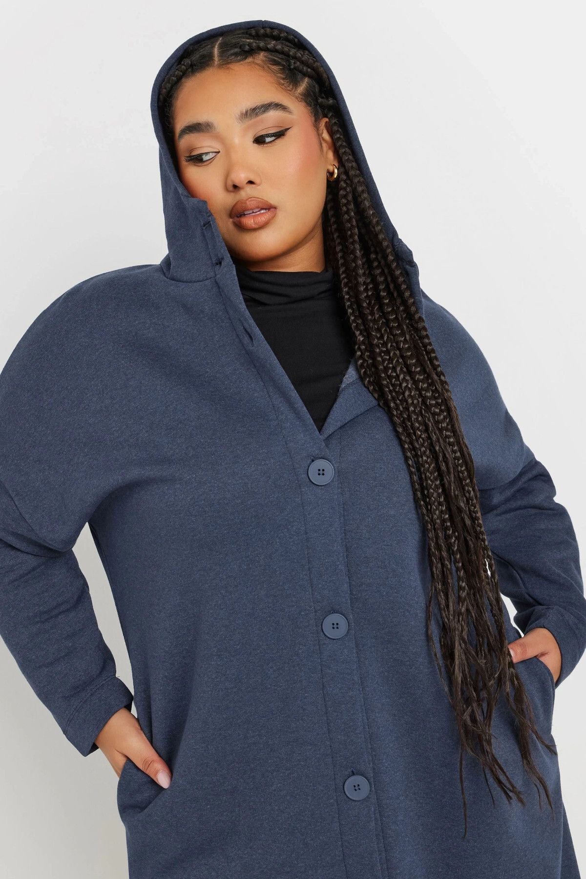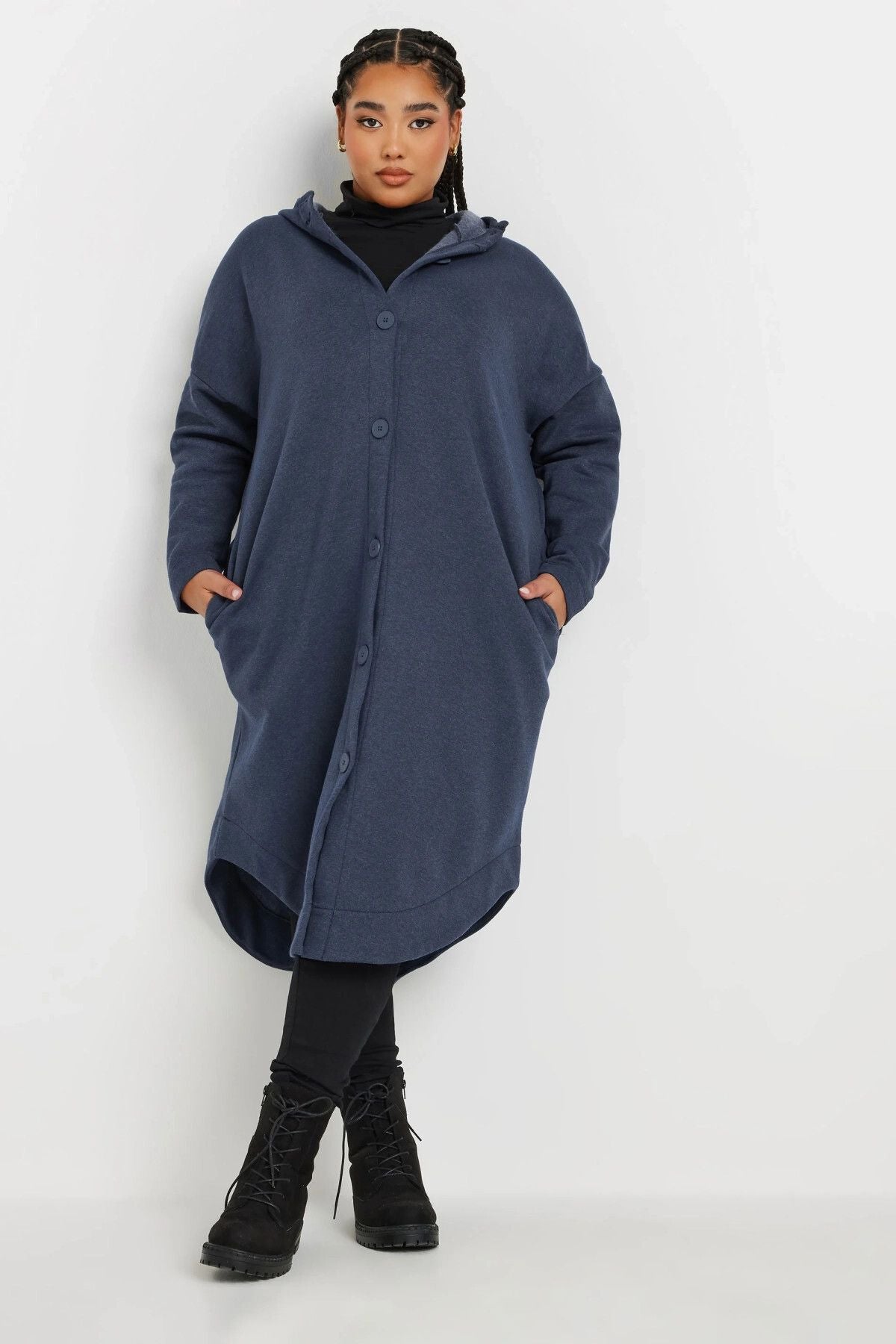 ז'קט במידות גדולות קפוצ'ון כיסים כפתורים קדמיים ארוך 303763