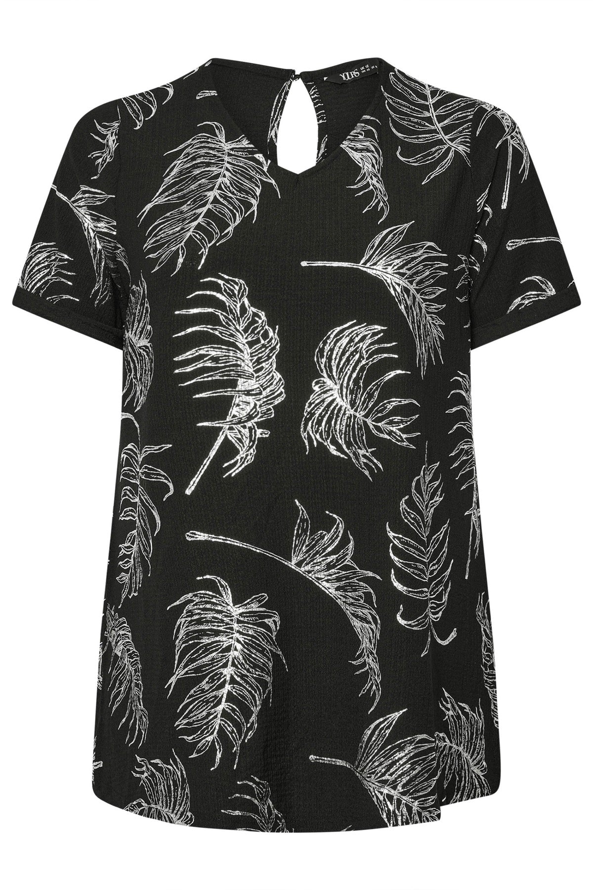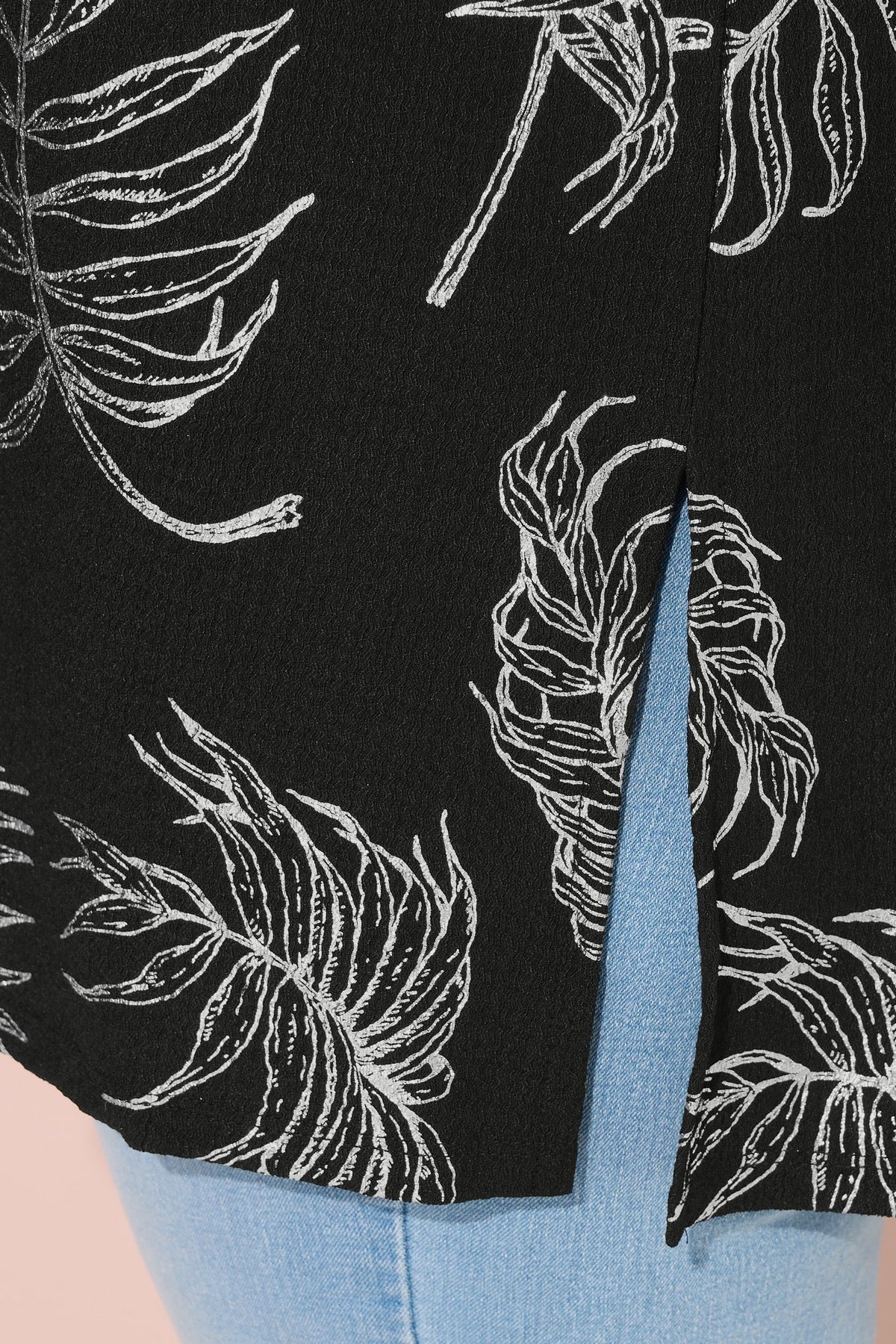 טישירט ארוכה במידות גדולות שרוול קצר צווארון עגול עם הדפס שסעים בצדדים 303780