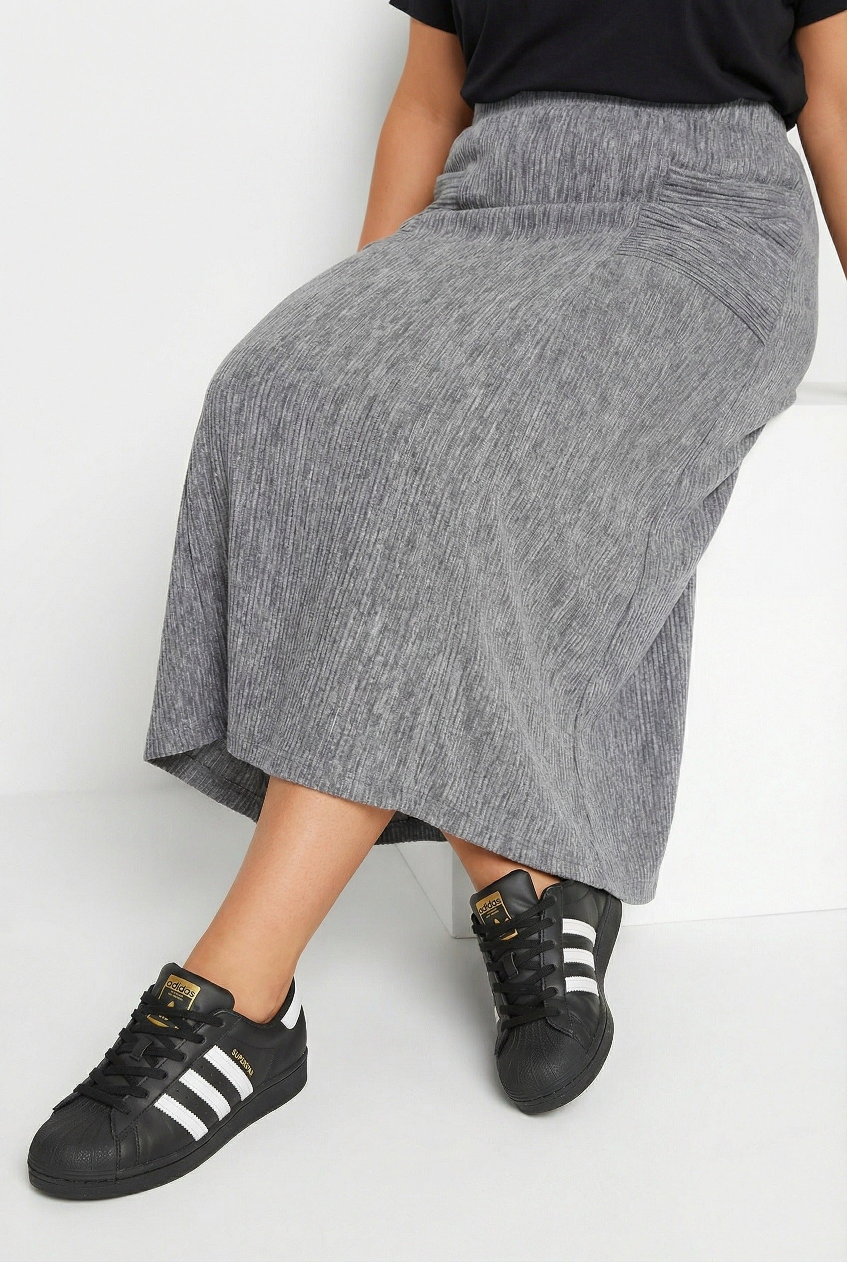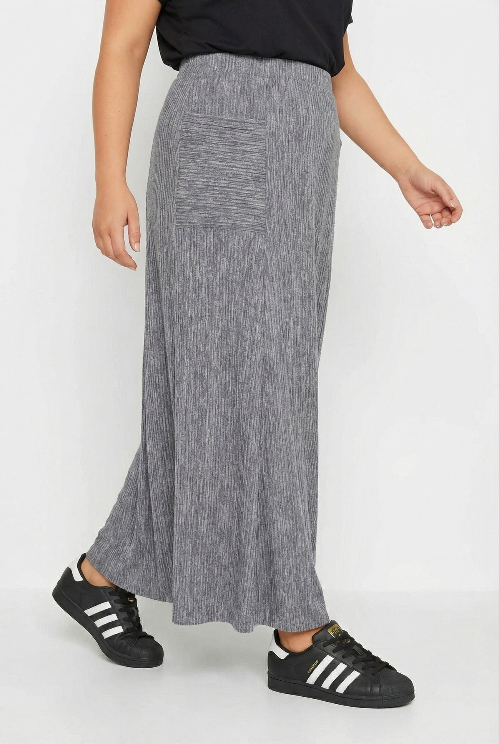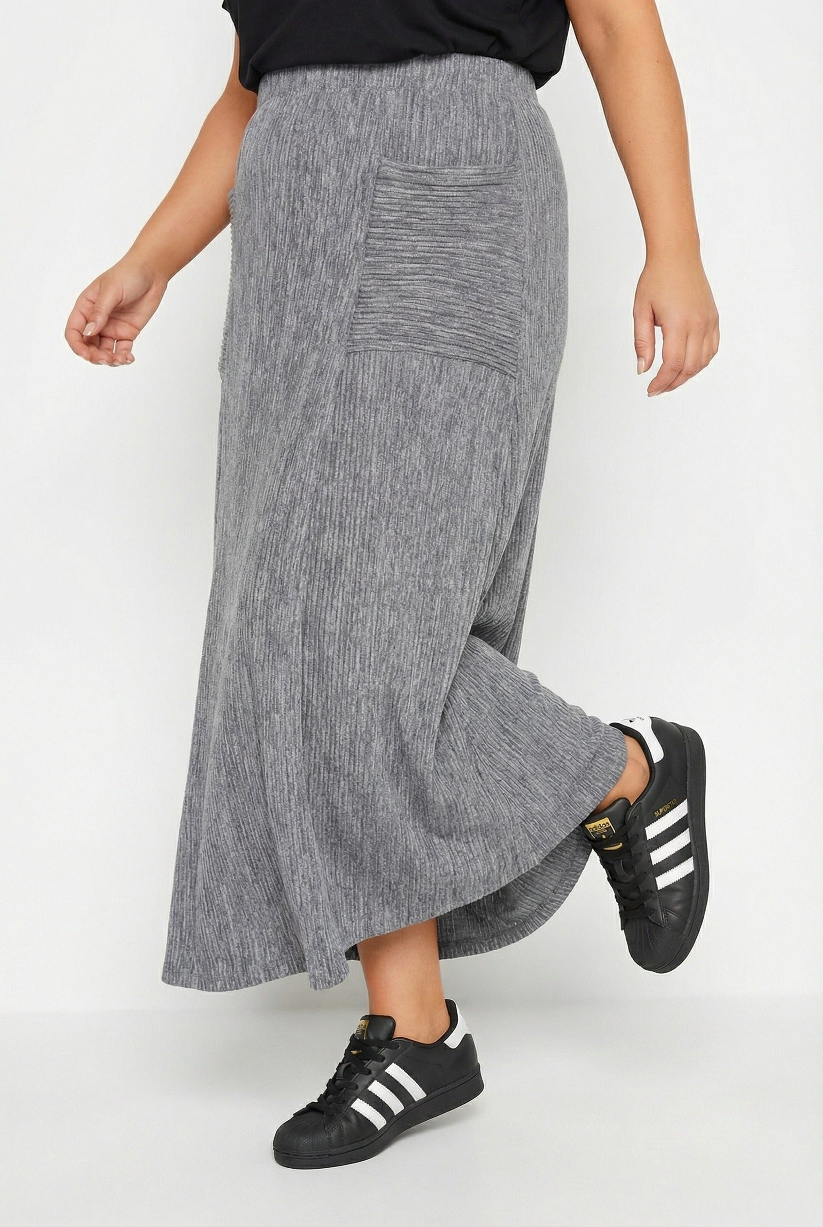 חצאית מקסי במידות גדולות גומי במותן בד במרקם