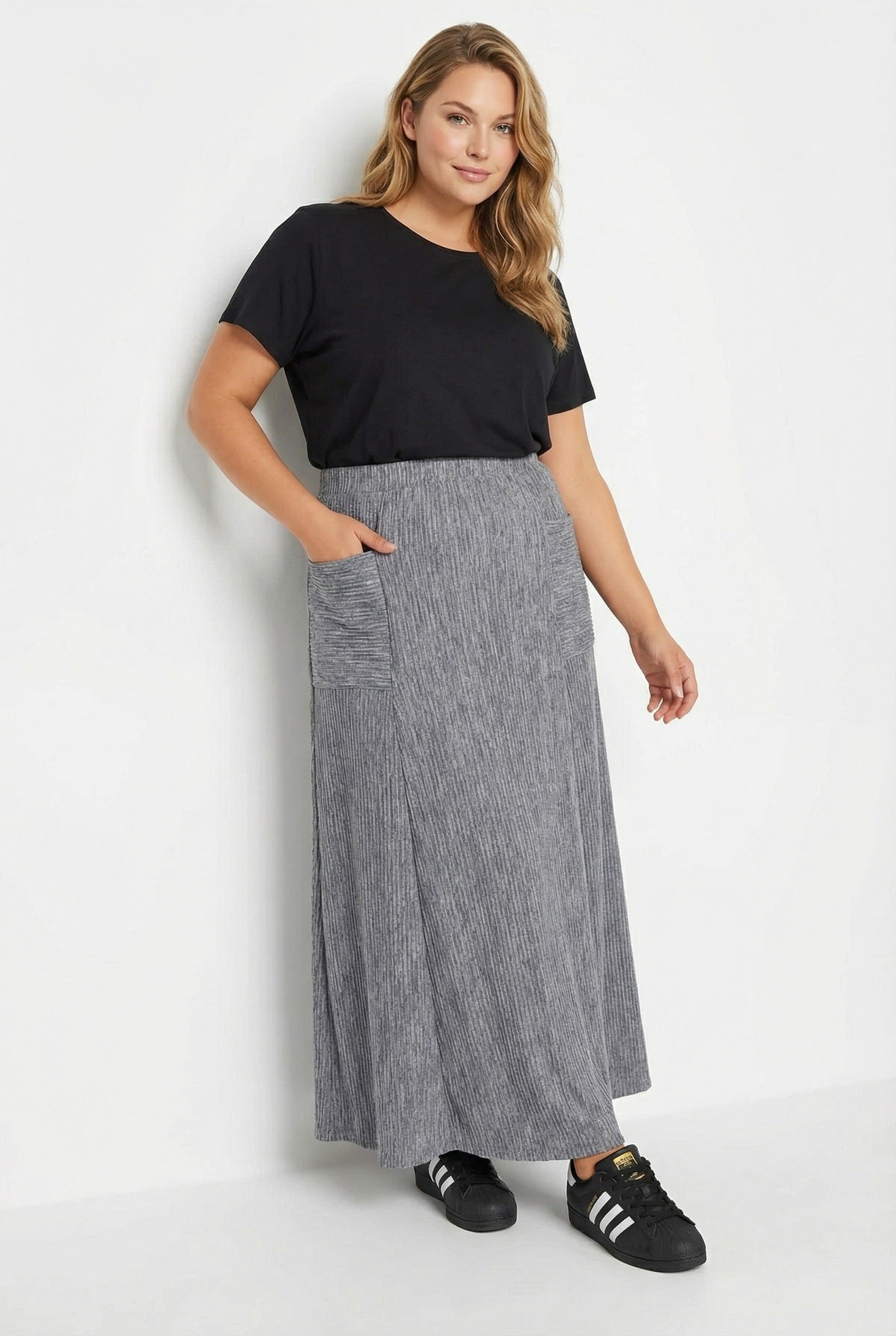- תיאור מוצר: הכירו את פריט המפתח למלתחת הקיץ ולמעבר עונות: חצאית מקסי קפלים! הבד הרך והגמיש, המותן האלסטית והכיסים השימושיים הופכים אותה לפריט שהוא גם אלגנטי וגם פונקציונלי. בשילוב טישירט בסיסית ונעלי ספורט מתקבל מראה יומיומי נוח. בערבי קיץ ניתן להוסיף ז׳קט ג׳ינס להשלמת המראה. פריט עלזמני שניתן לסמוך עליו תמיד.