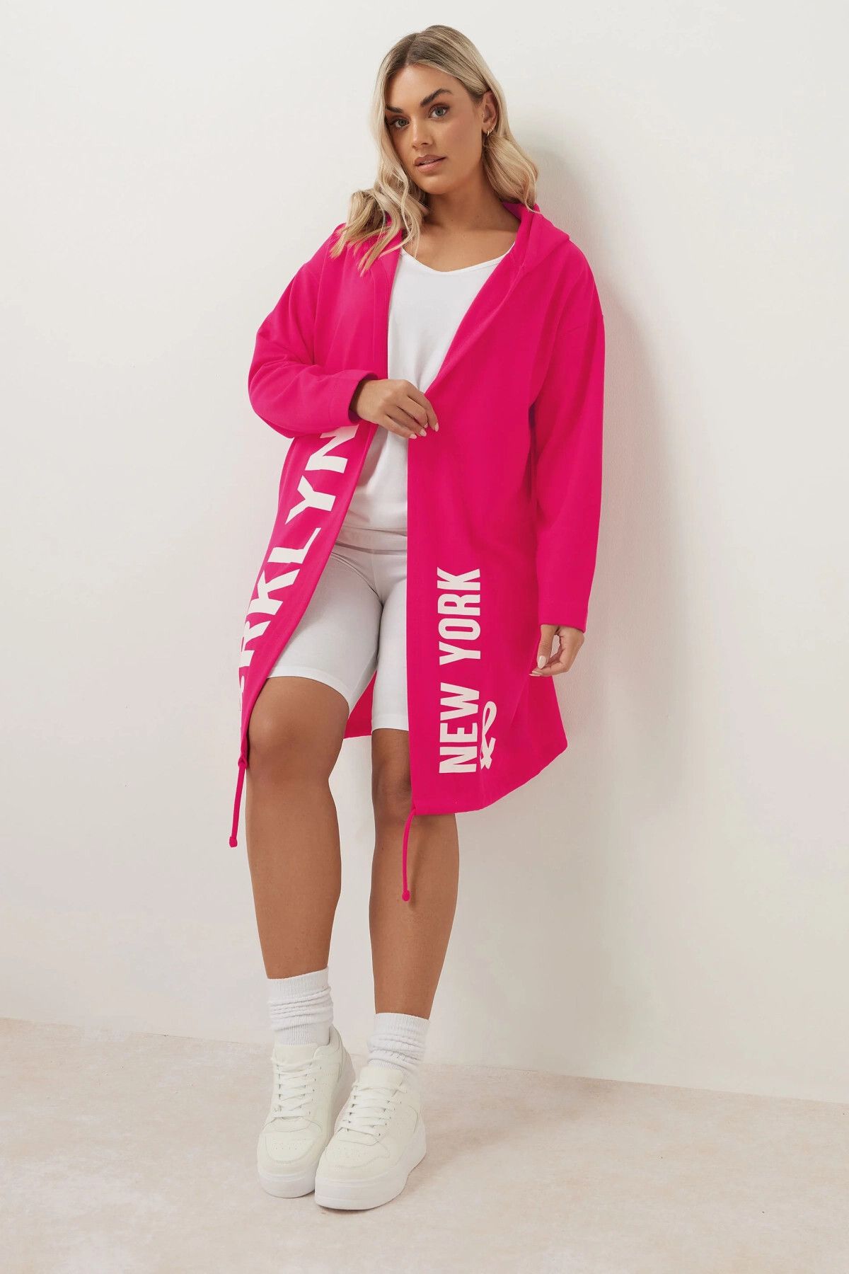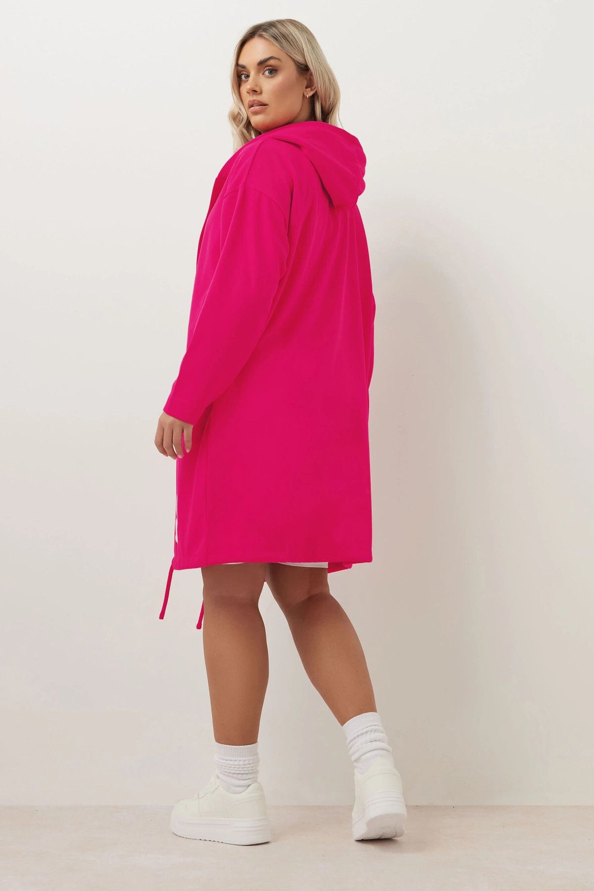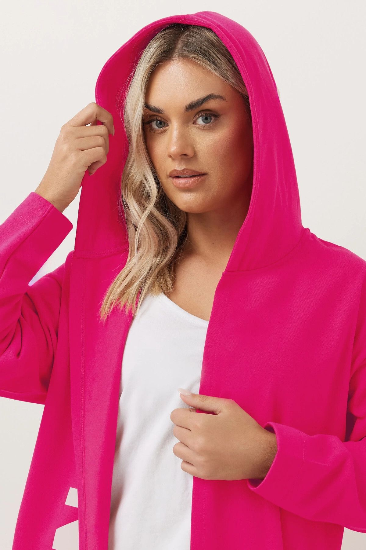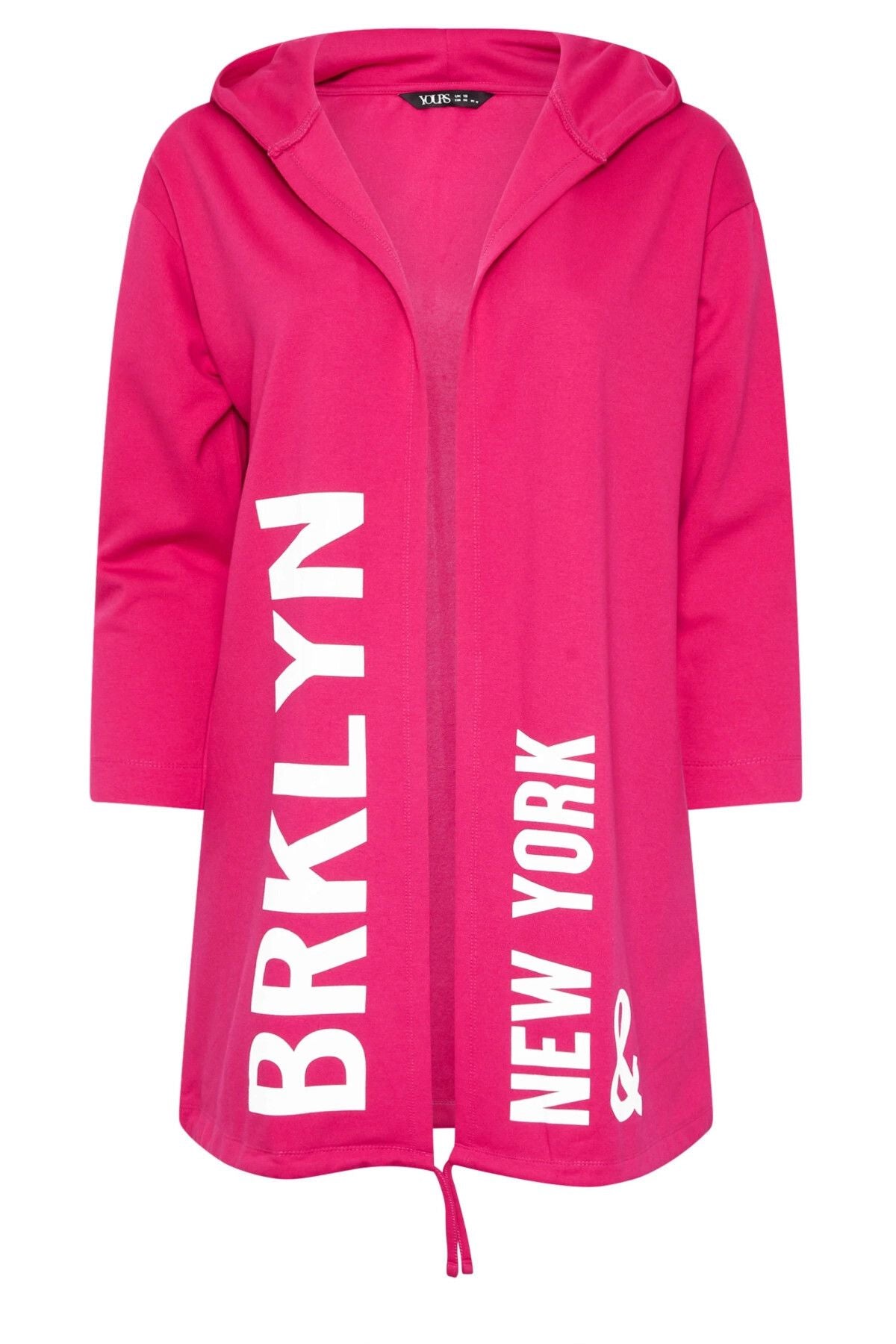 קרדיגן ארוך במידות גדולות עם קפוצ'ון דוגמת כתוב שרוול ארוך ללא כיסים 303983