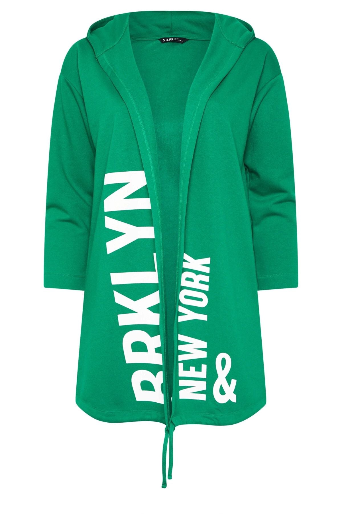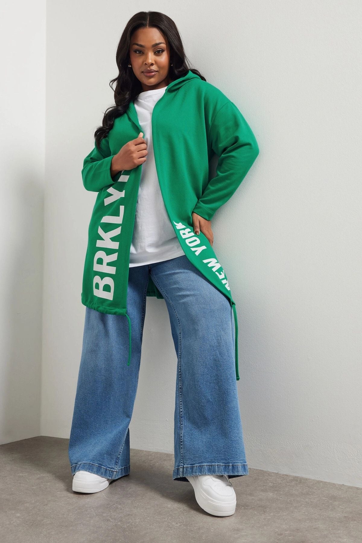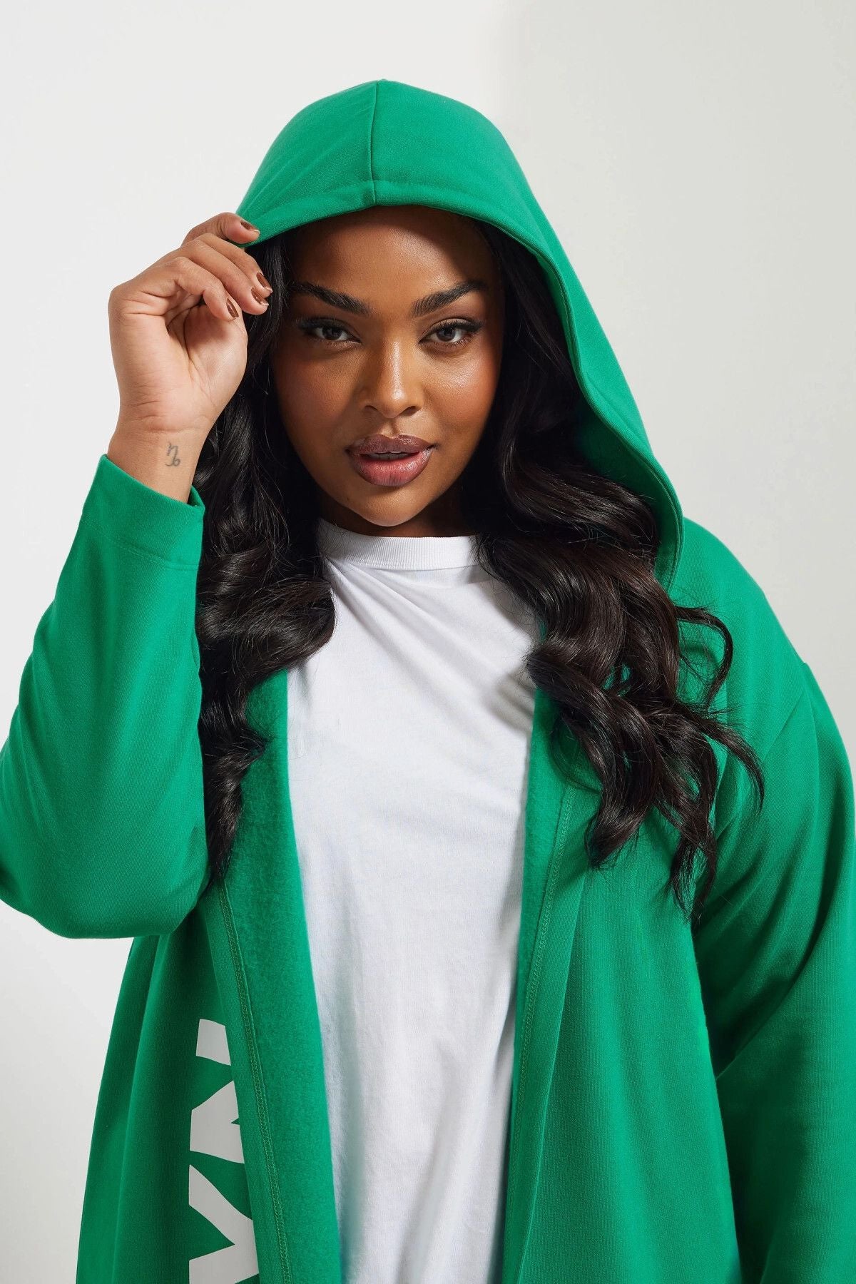 קרדיגן במידות גדולות עם קפוצ'ון שרוול ארוך דוגמת כתוב ללא כיסים 303984