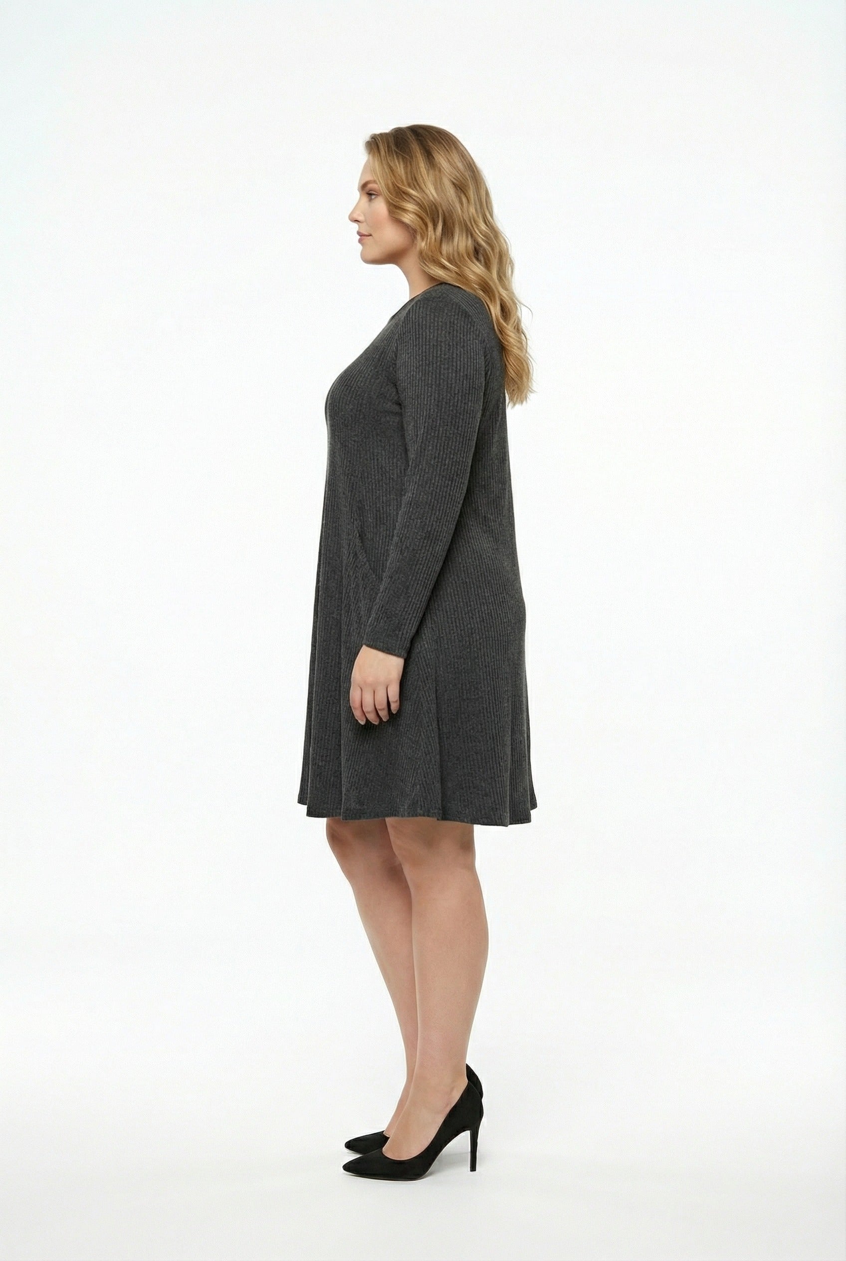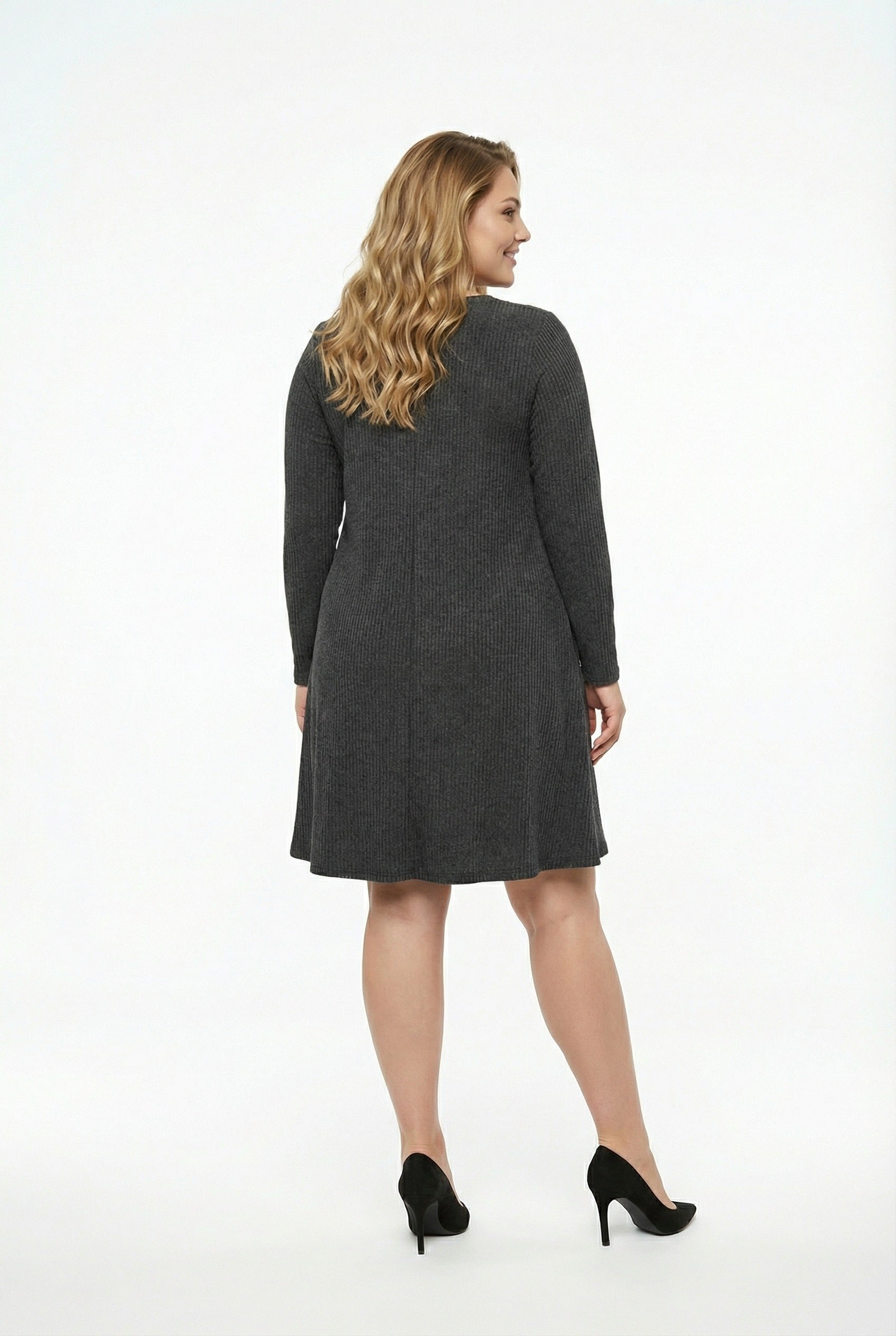 שמלה במידות גדולות עם כיסים בד במרקם מיני