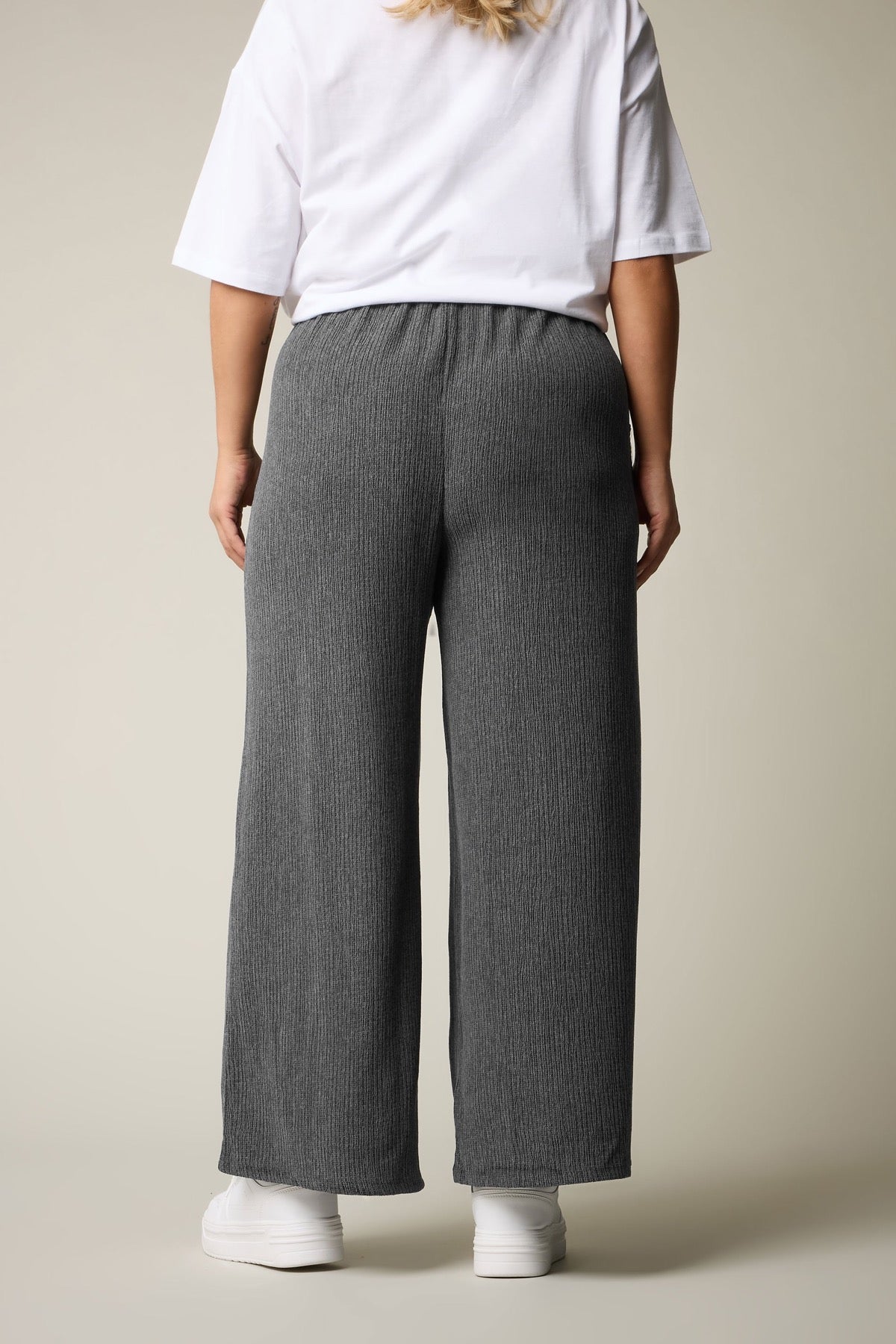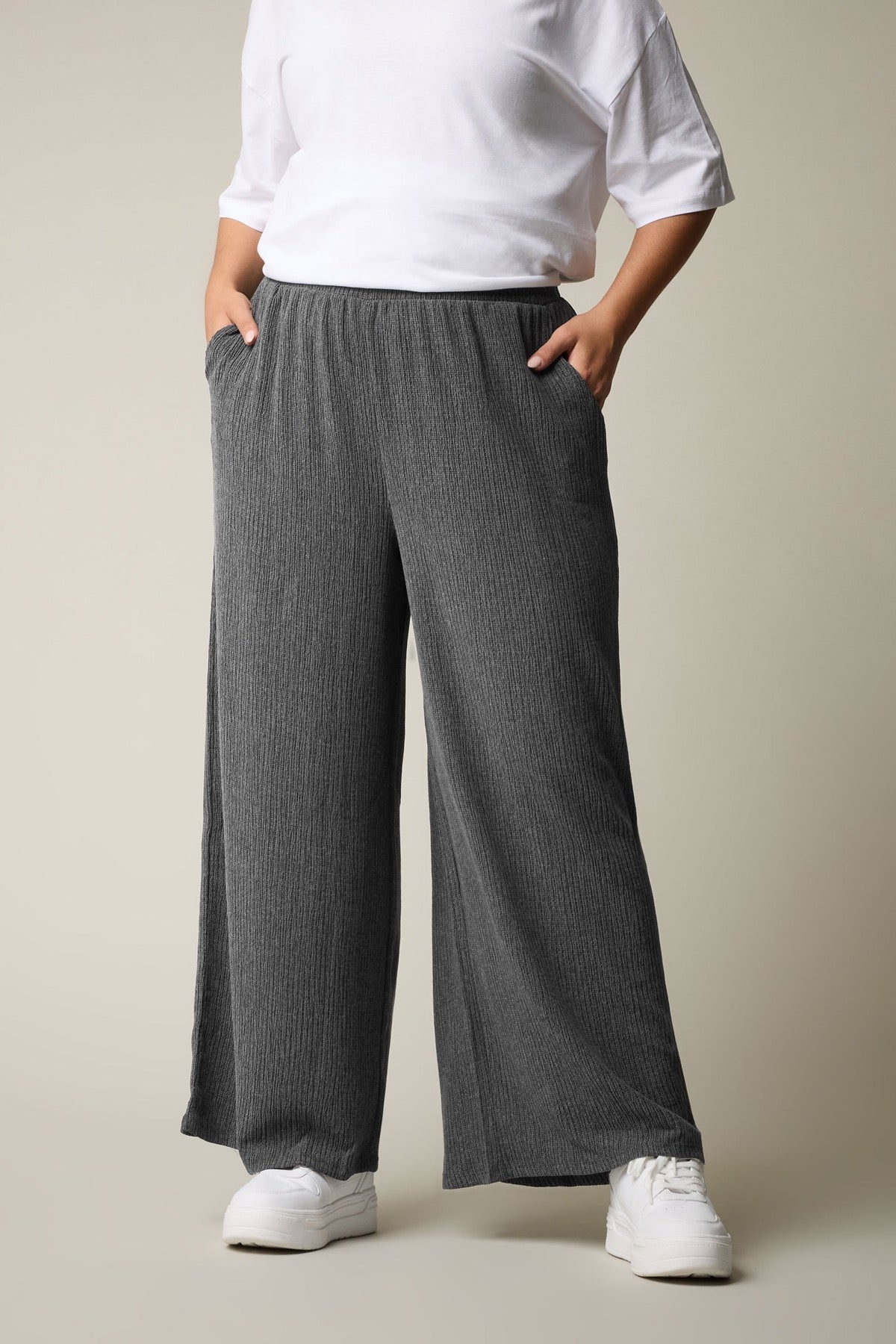 מכנסיים במידות גדולות גומי במותן קרסול רחב שתי כיסים קדמיים 304012