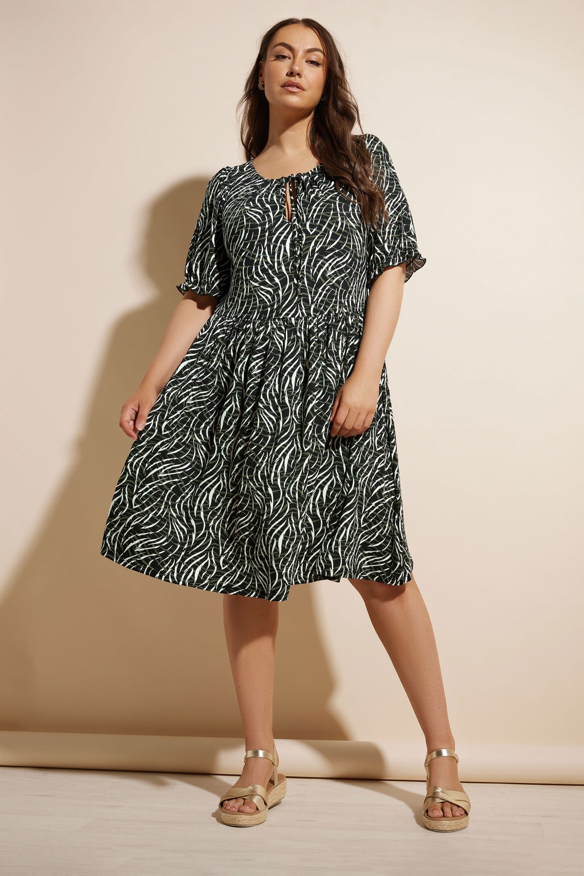שמלה מיני במידות גדולות פרטי כיווץ עם הדפס 304018