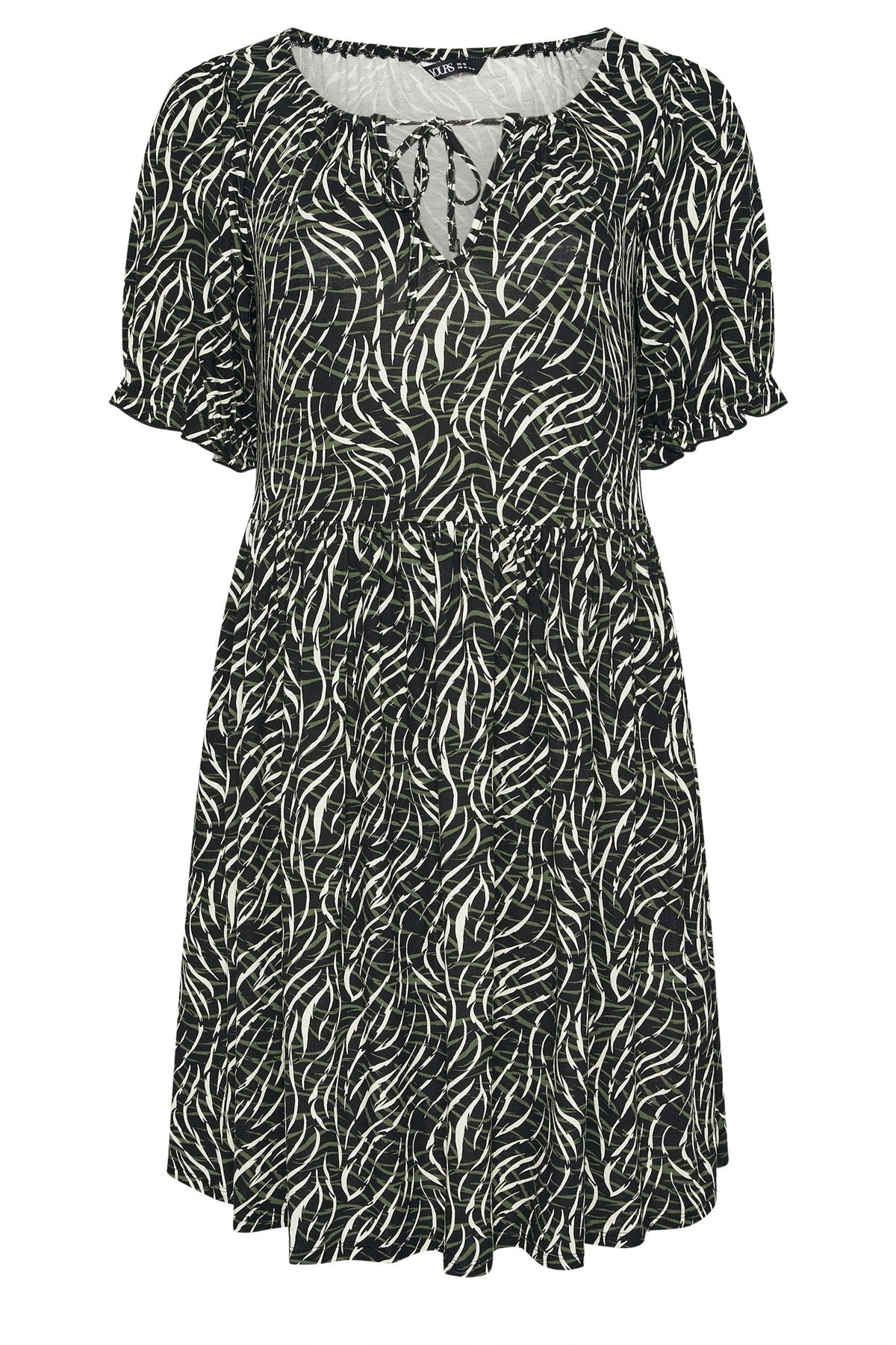 - פרטי הדגם: דוגמת אבסטרקט, קשירה בצוואר, שרוול קצר, מידי