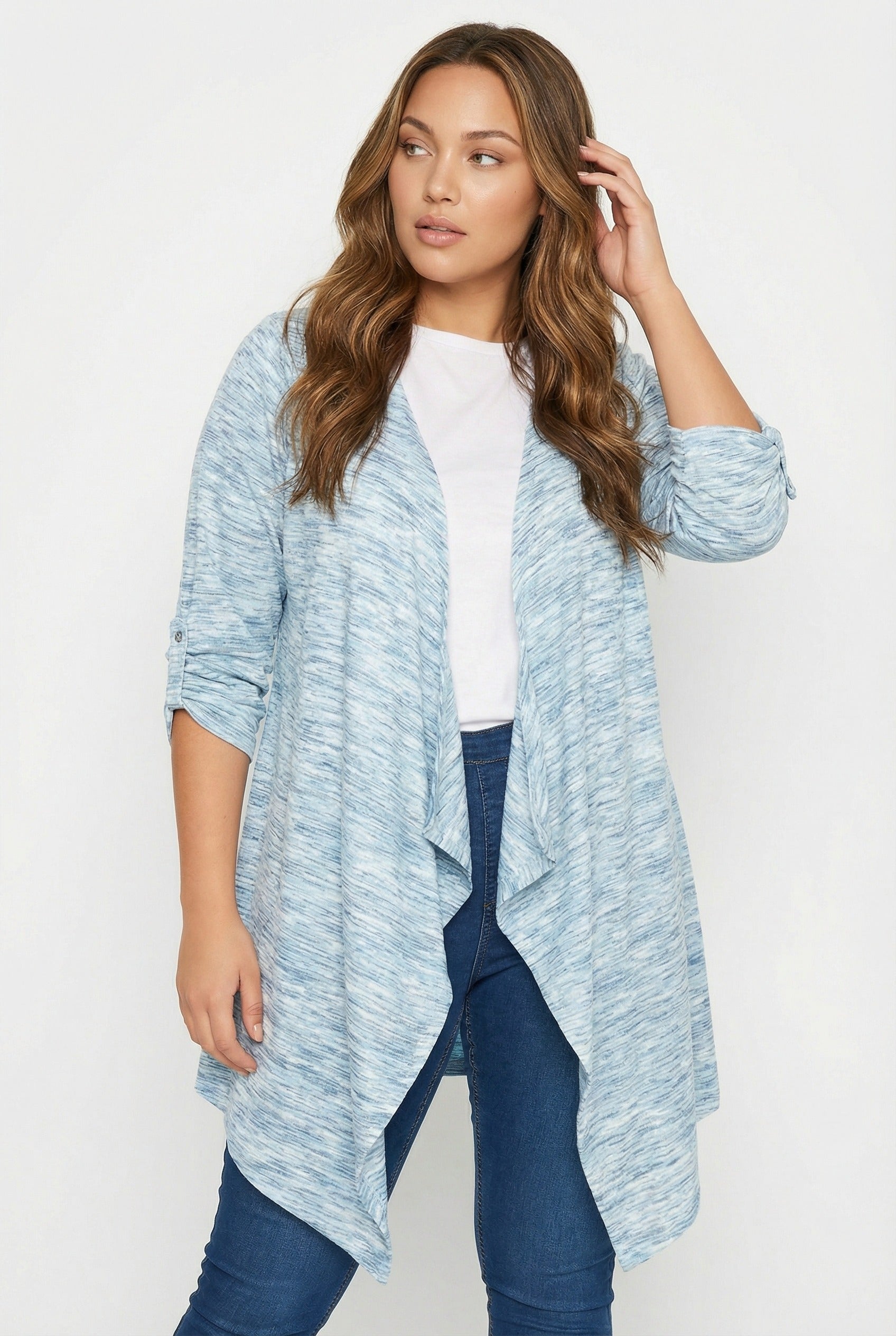 קרדיגן במידות גדולות שרוול ארוך ללא סגירה