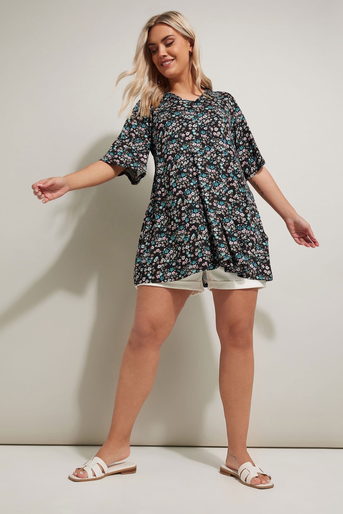 • תיאור מוצר: רעננו את אוסף היומיום עם בלוזה פרחונית זו. עשויה ויסקוזה נוחה, עם פרטי קפלים בחזית, ללא שרוולים וצווארון V. שלבו עם שורט ג׳ינס וסנדלים למראה קיצי מושלם. הדוגמה הקטנה מושלמת לעונה.