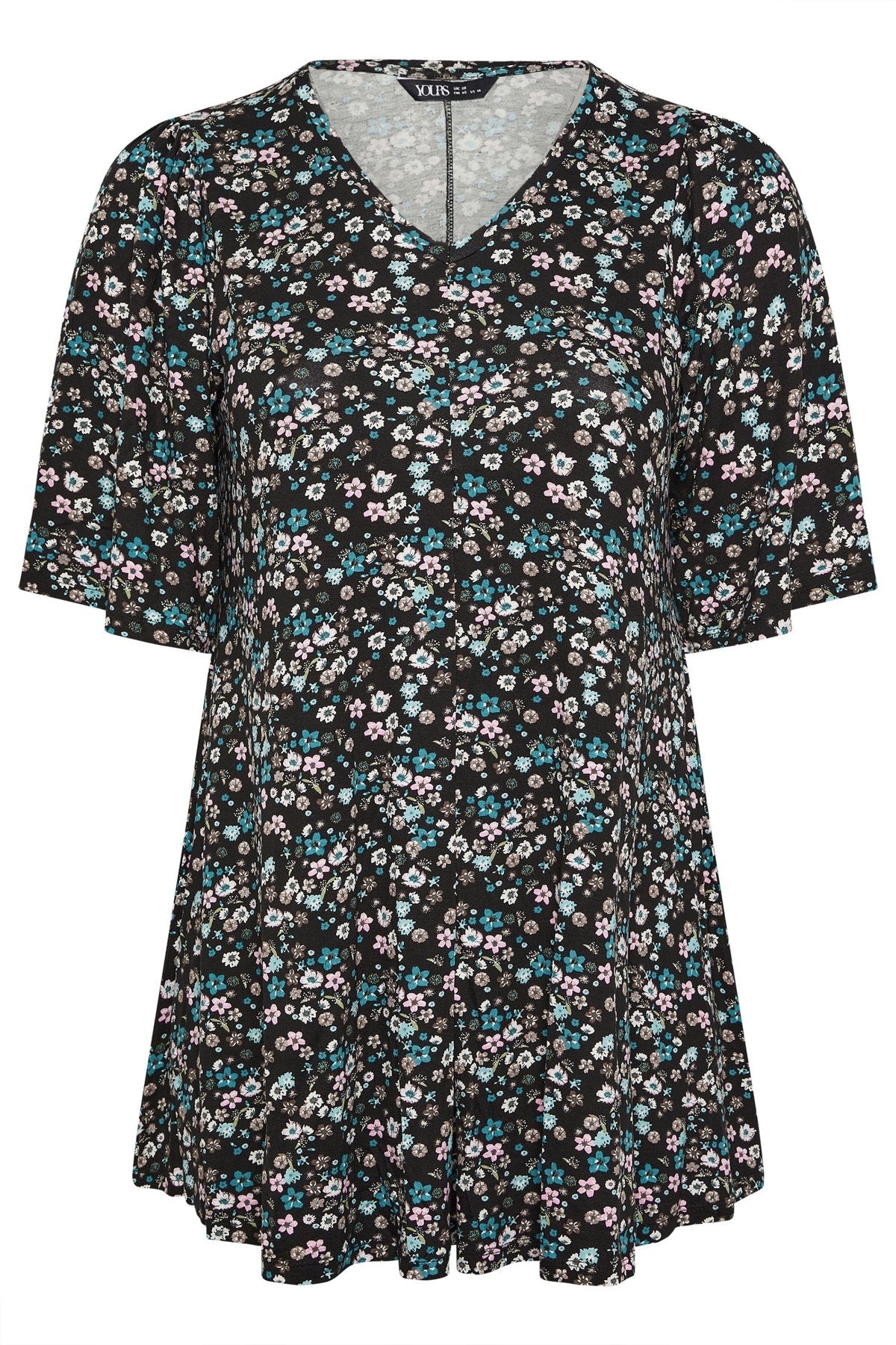 • פרטי הדגם: דוגמת פרחים, קפלים בחזית, ללא שרוולים, גזרה א-סימטרית, צווארון V