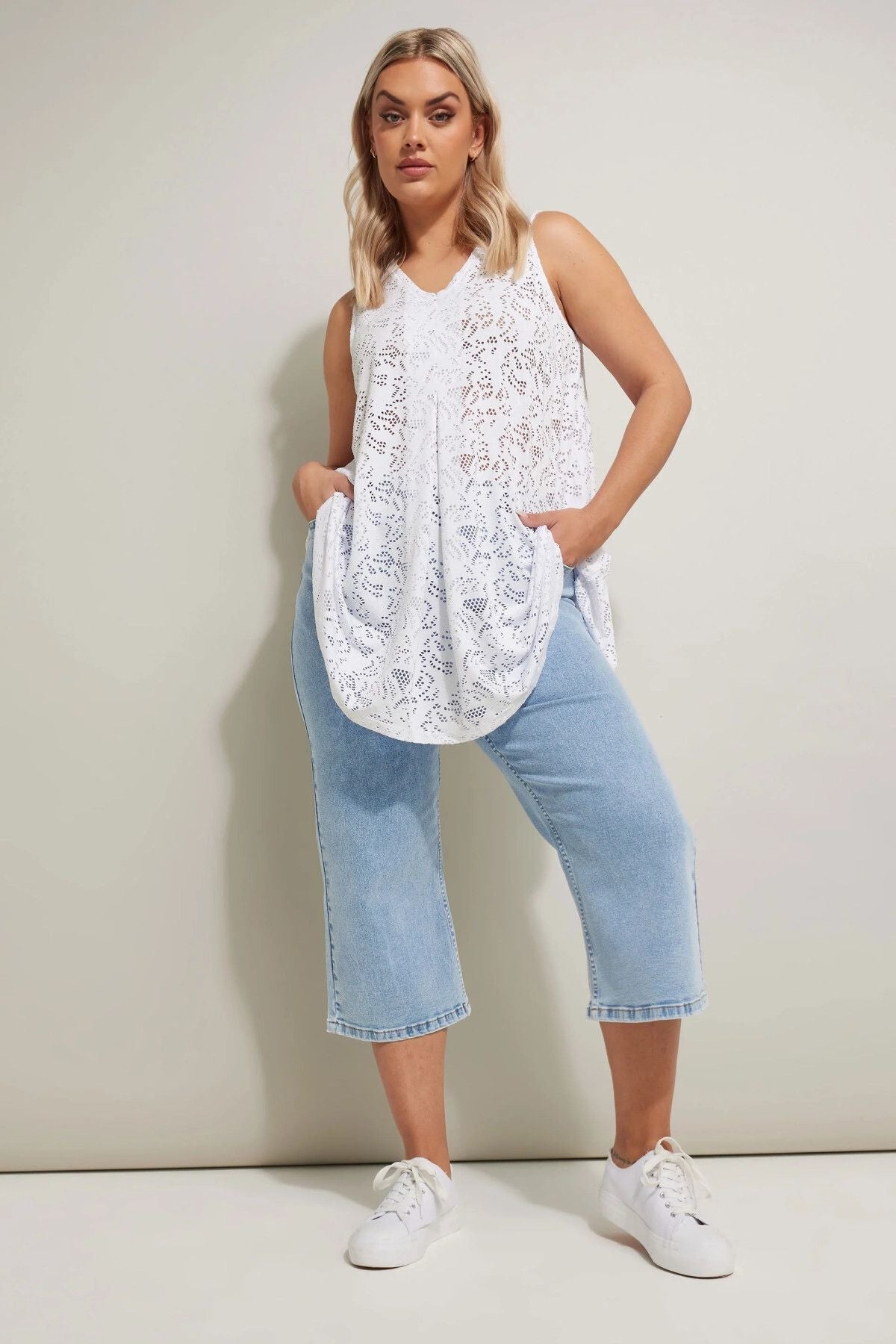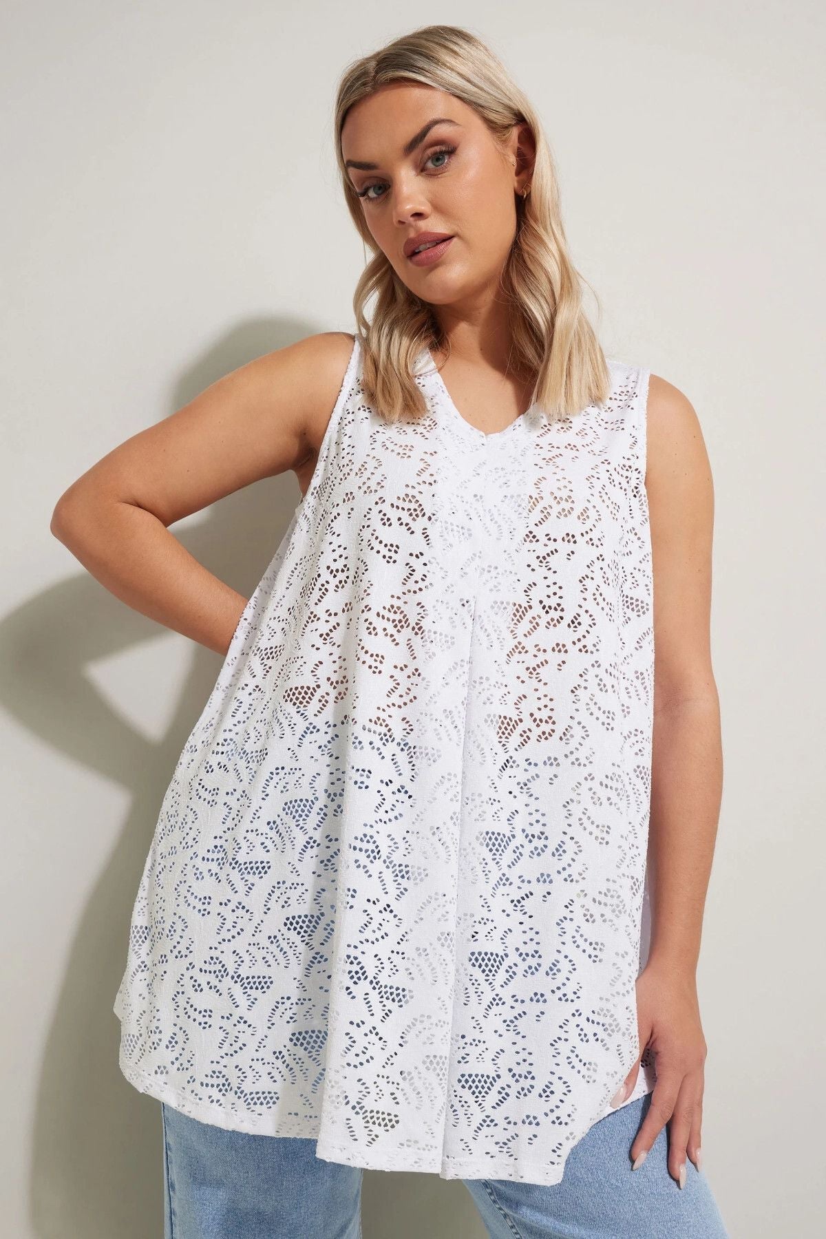 חולצה במידות גדולות צווארון V חולצה ללא שרוולים פרטי תחרה ללא בטנה 304098