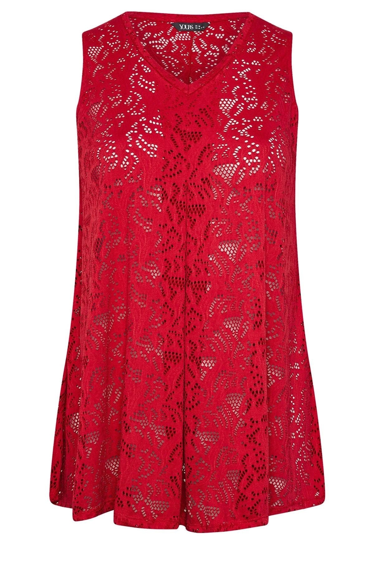 טישירט במידות גדולות צווארון V חולצה ללא שרוולים תחרה ללא בטנה 304104