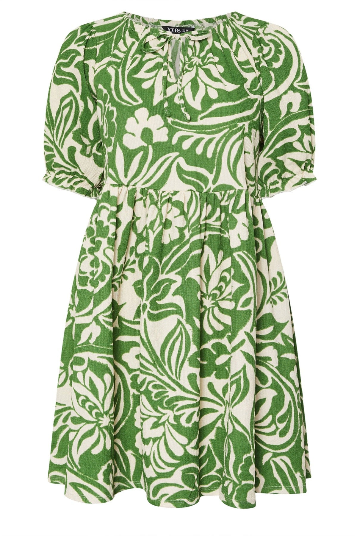 פרטי הדגם: עם דוגמה אבסטרקטית, צווארון עם קשירה, שרוולים קצרים, אורך מידי