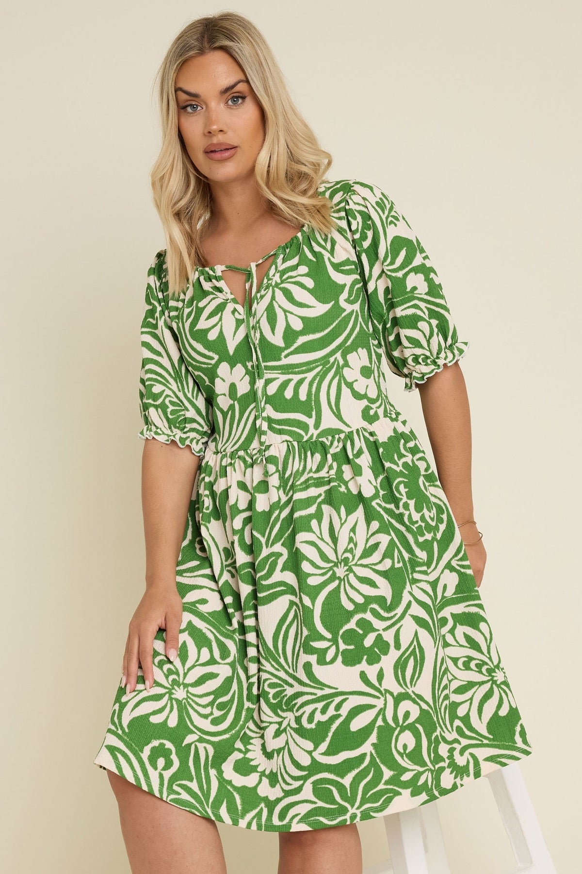 שמלה במידות גדולות עם דוגמת פרחים צווארון מכיווץ מיני 304112