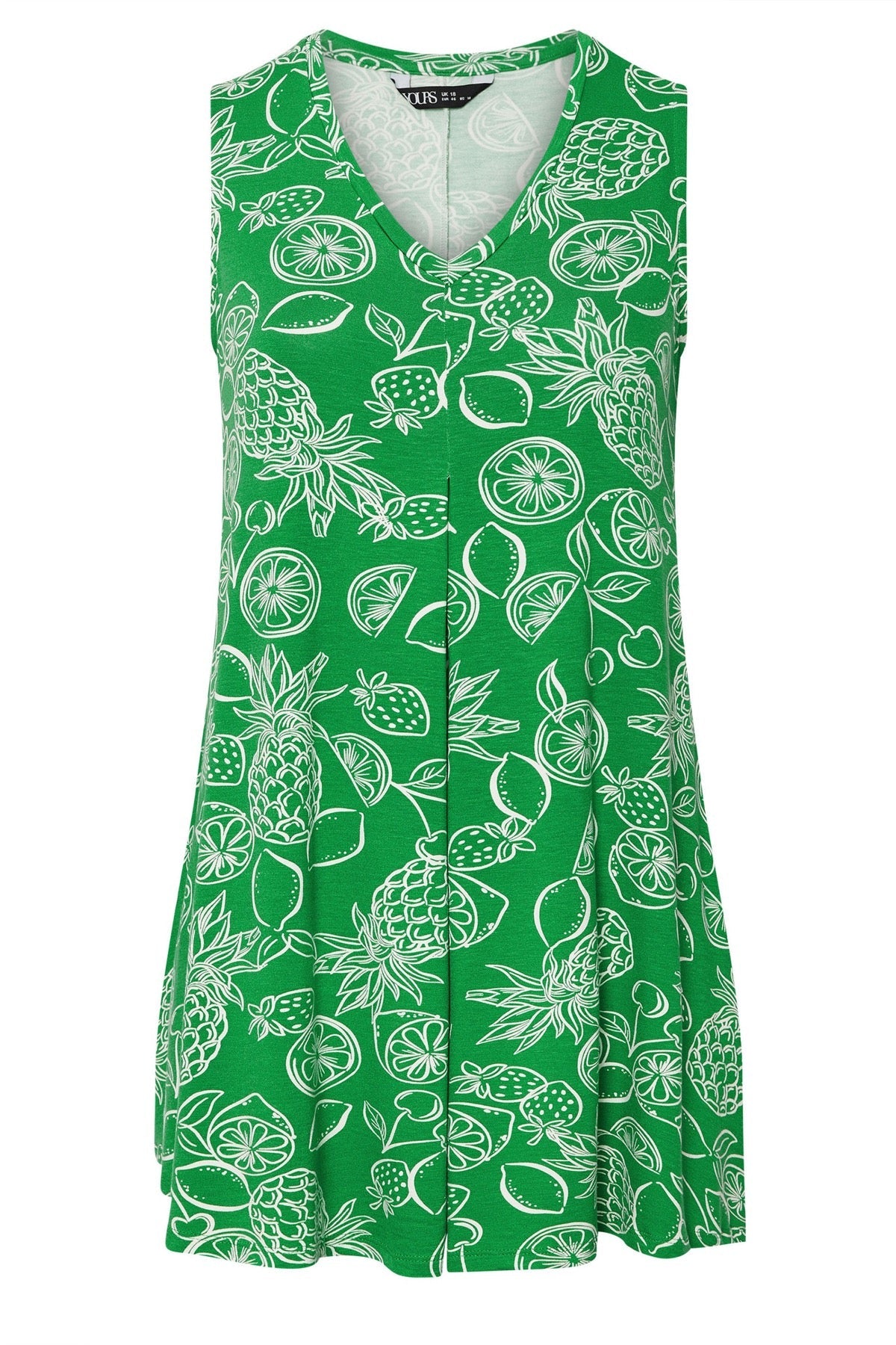 טישירט במידות גדולות צווארון V ללא שרוולים דוגמת פרחים 304169