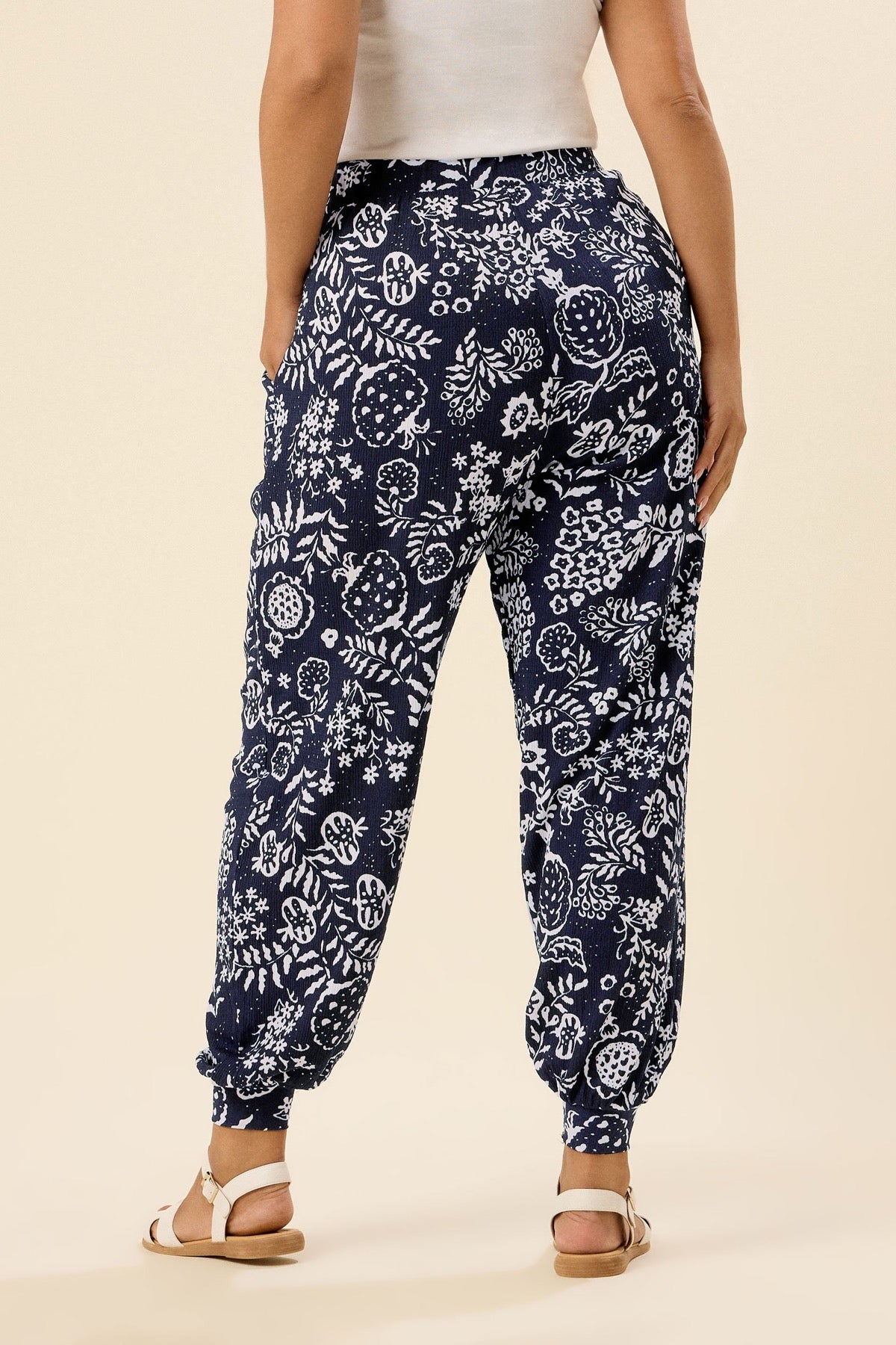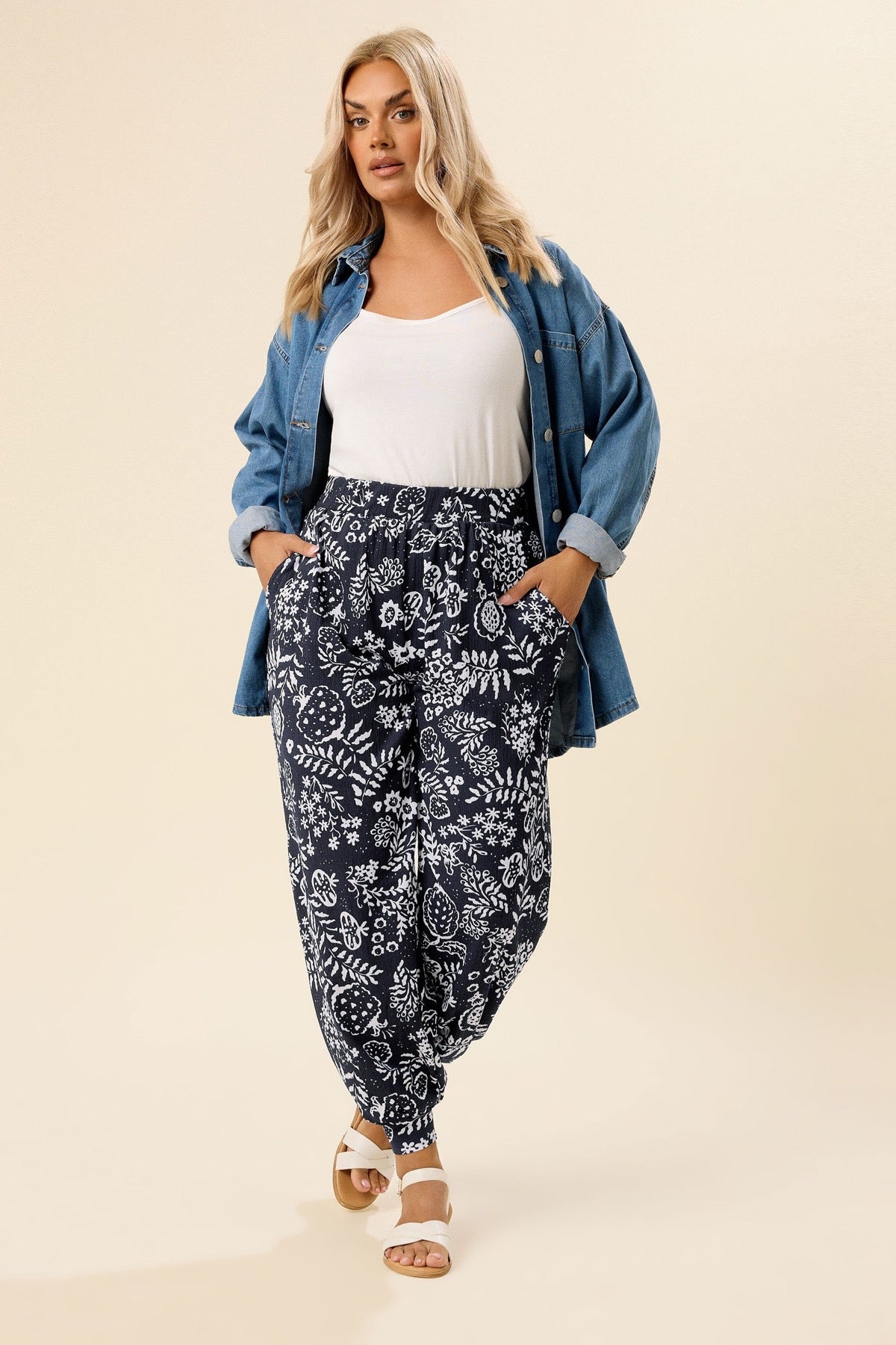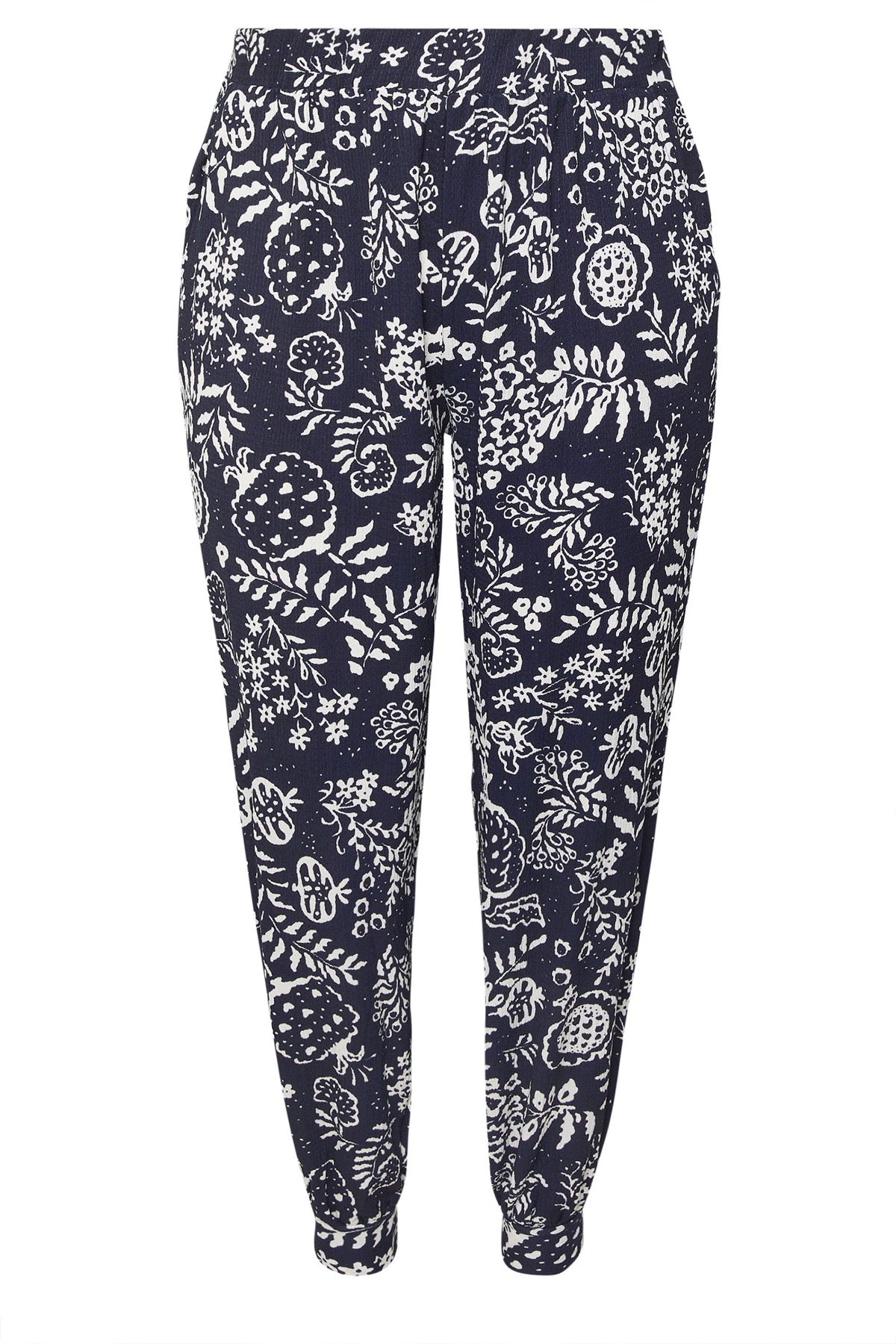 מכנסיים במידות גדולות גזרת גזר עם הדפס שתי כיסים קדמיים 3042569