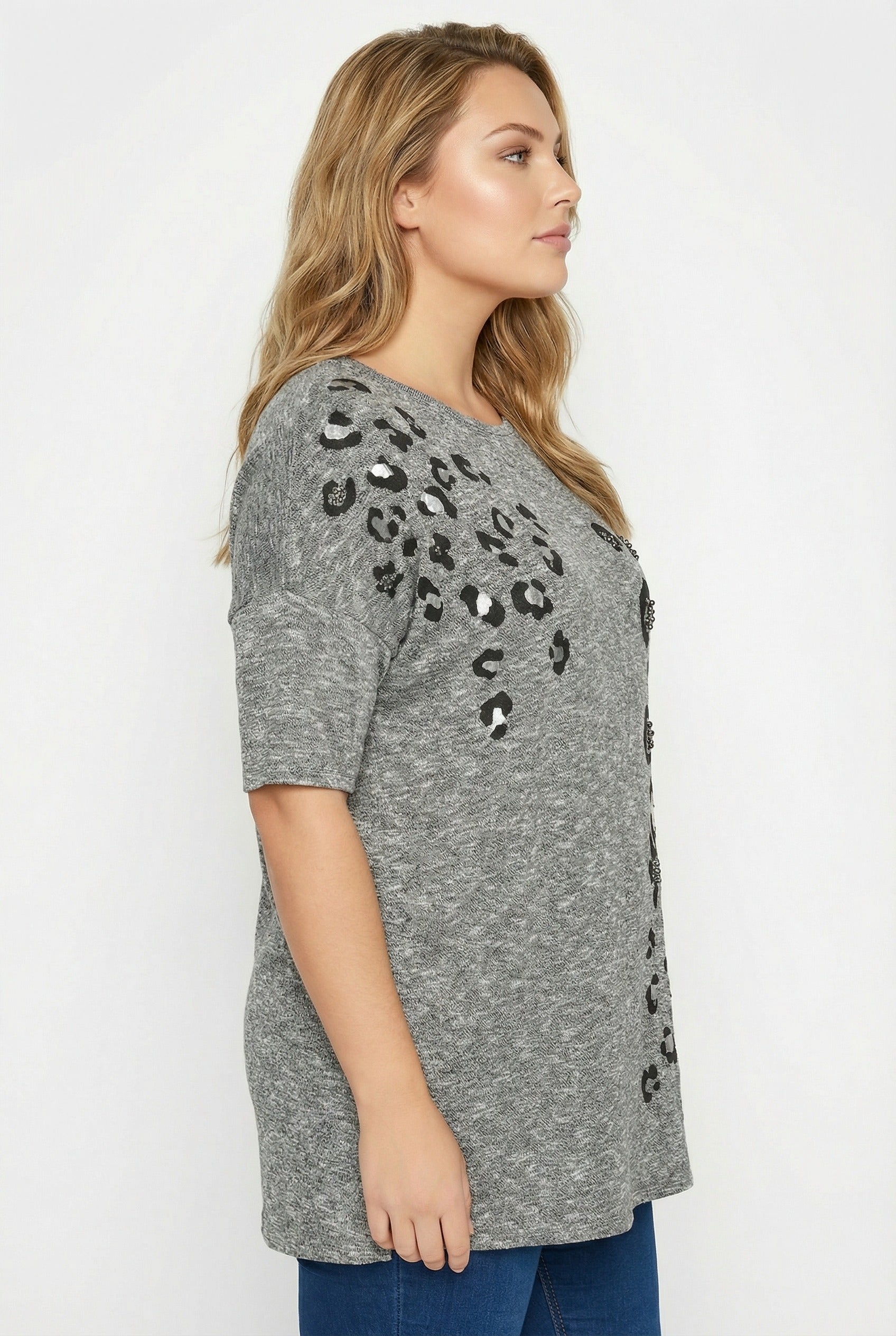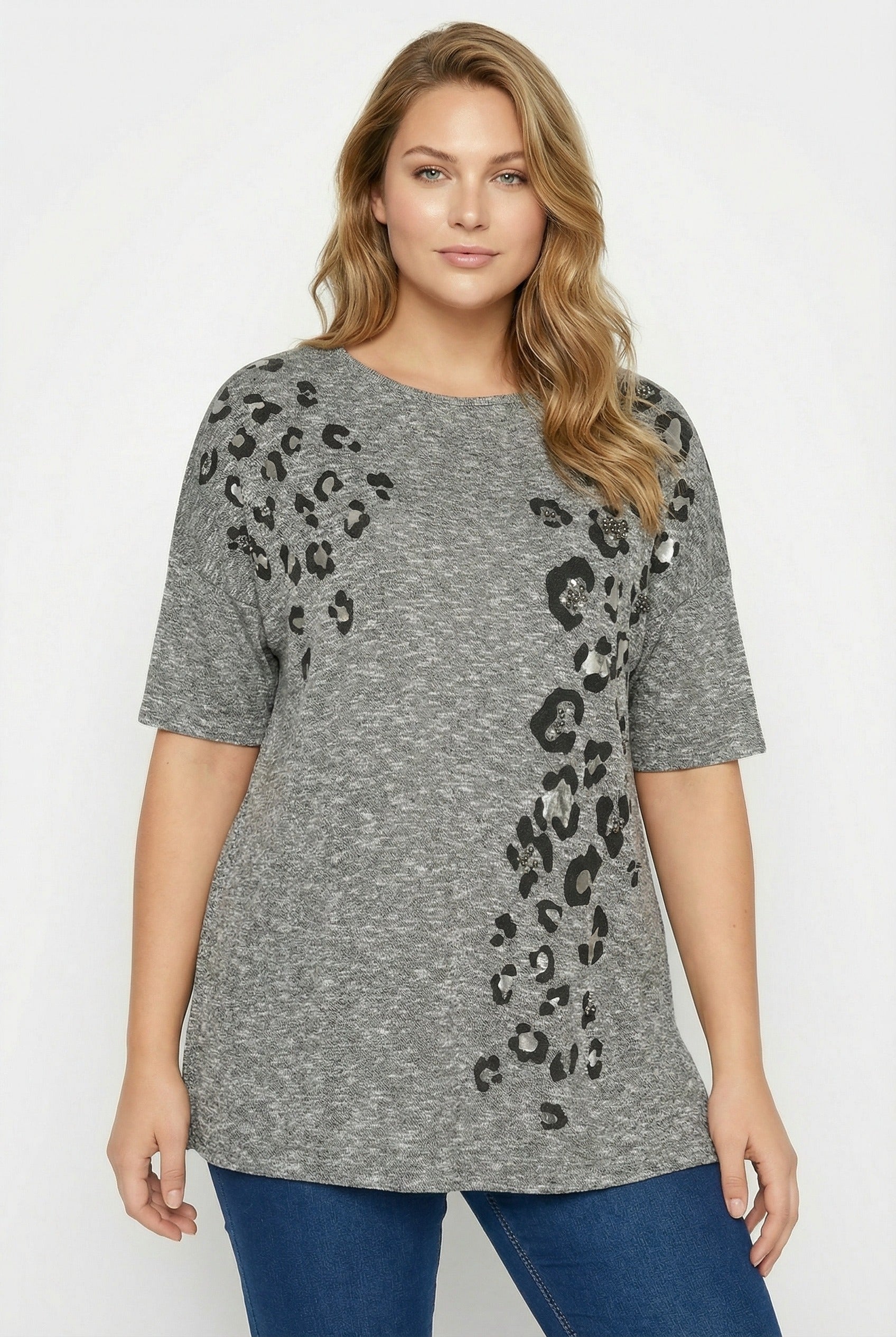 טוניקה במידות גדולות חצי שרוול עם חרוזים