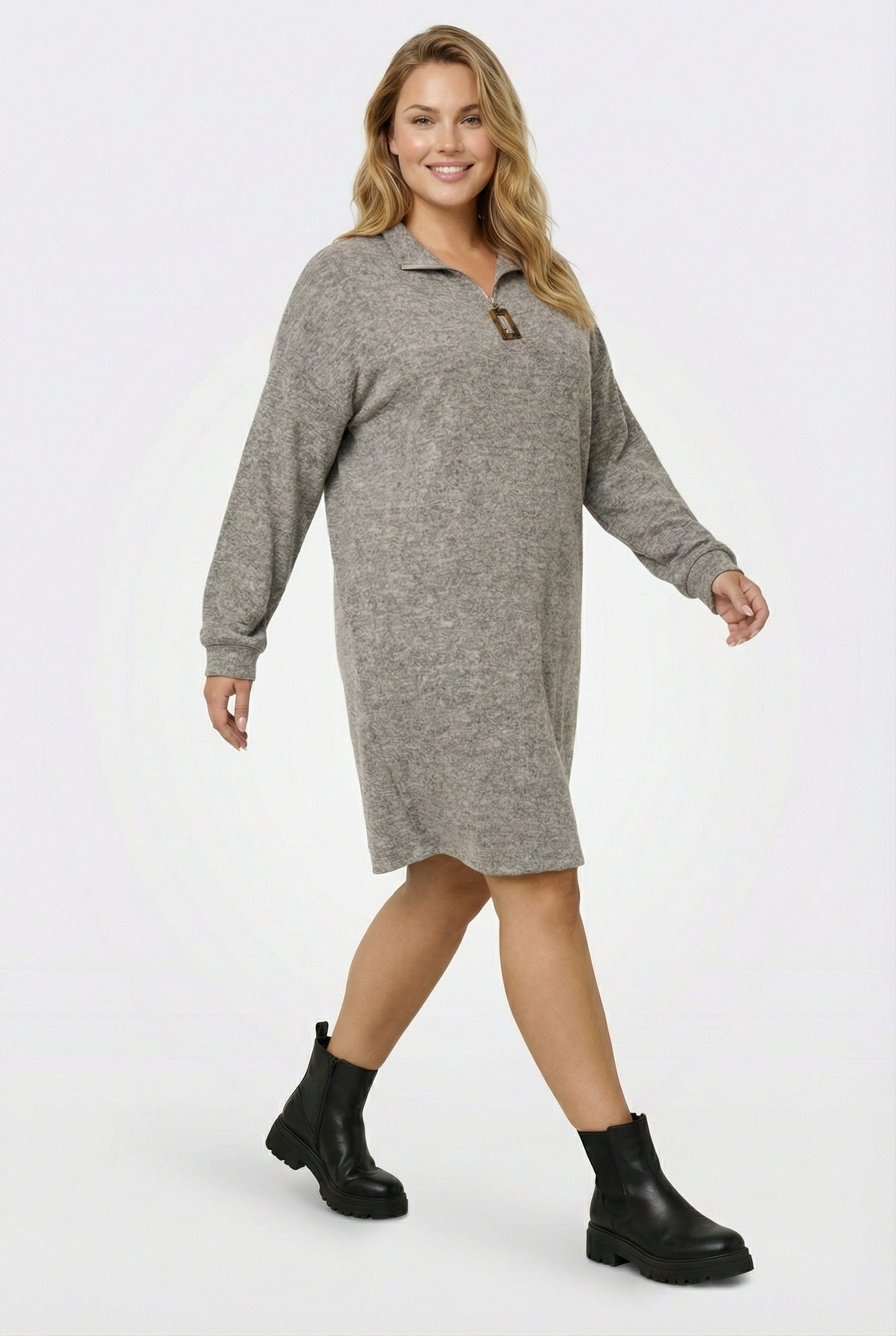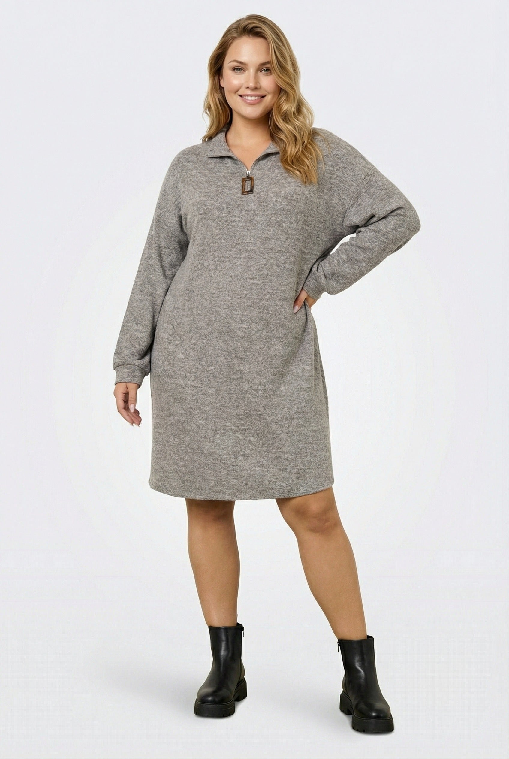 שמלת ג׳רסי במידות גדולות צווארון עם רוכסן שרוול ארוך 304280