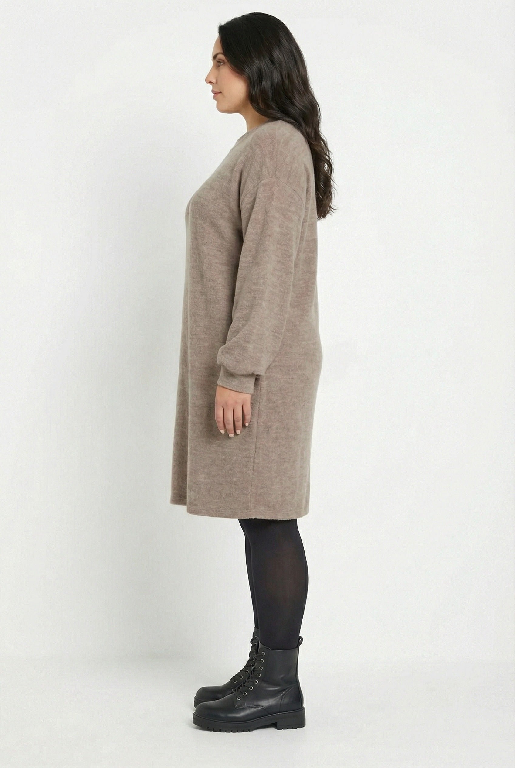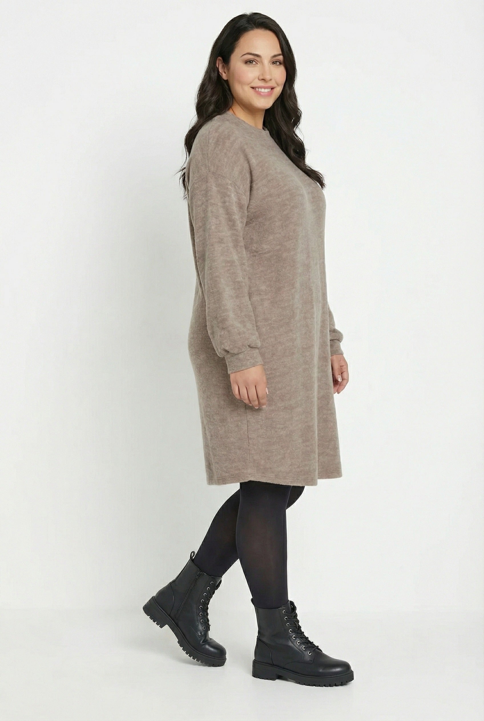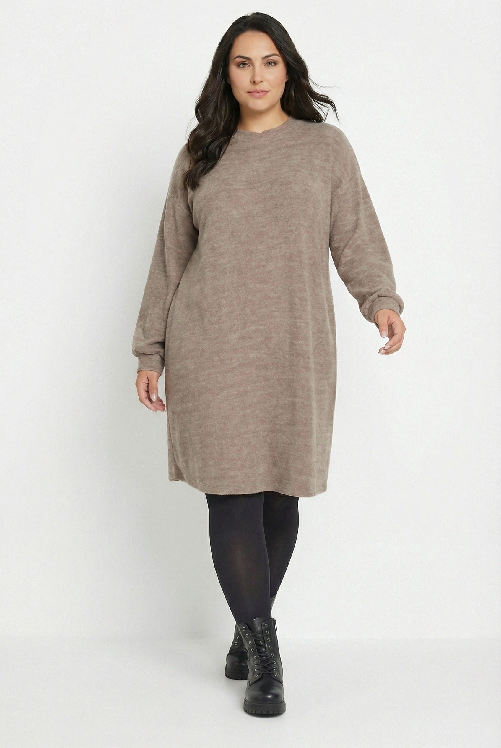 שמלה במידות גדולות שרוול ארוך צווארון עגול מרקם רך מיני 321599