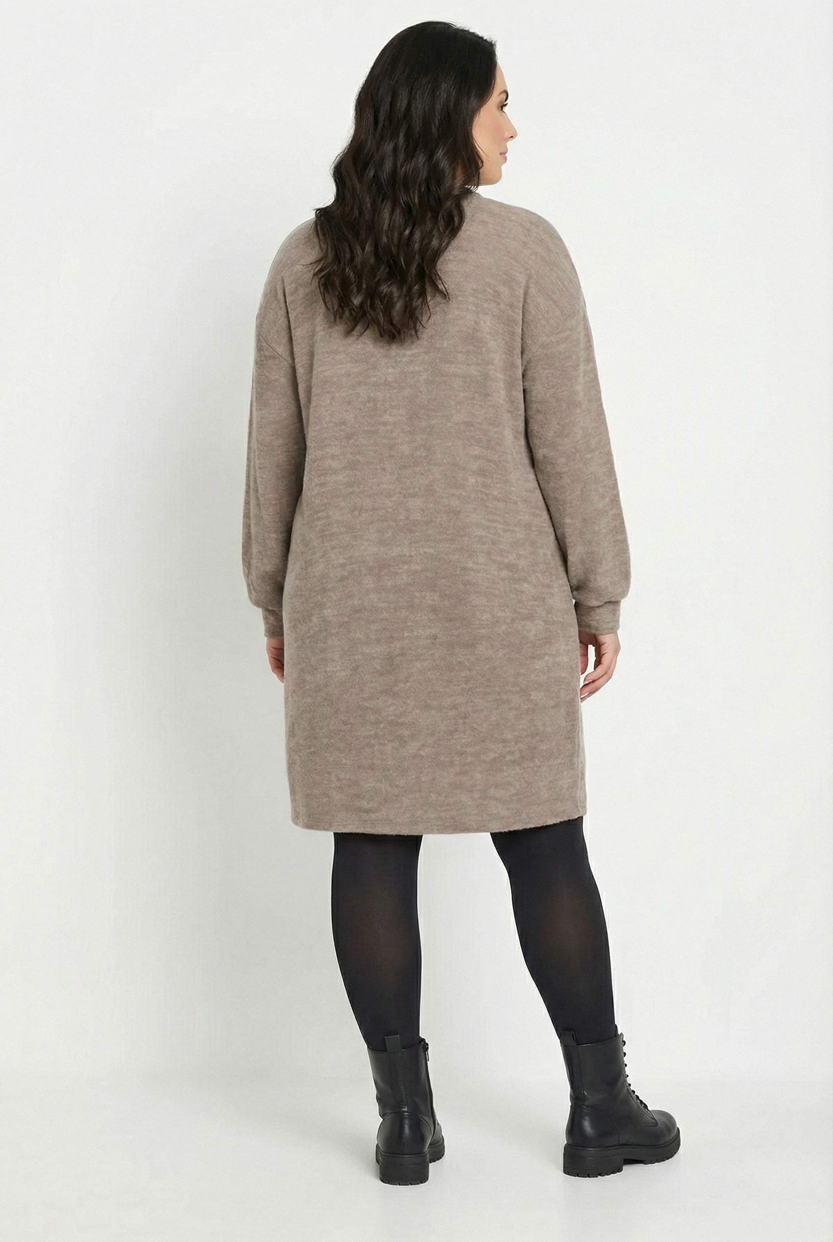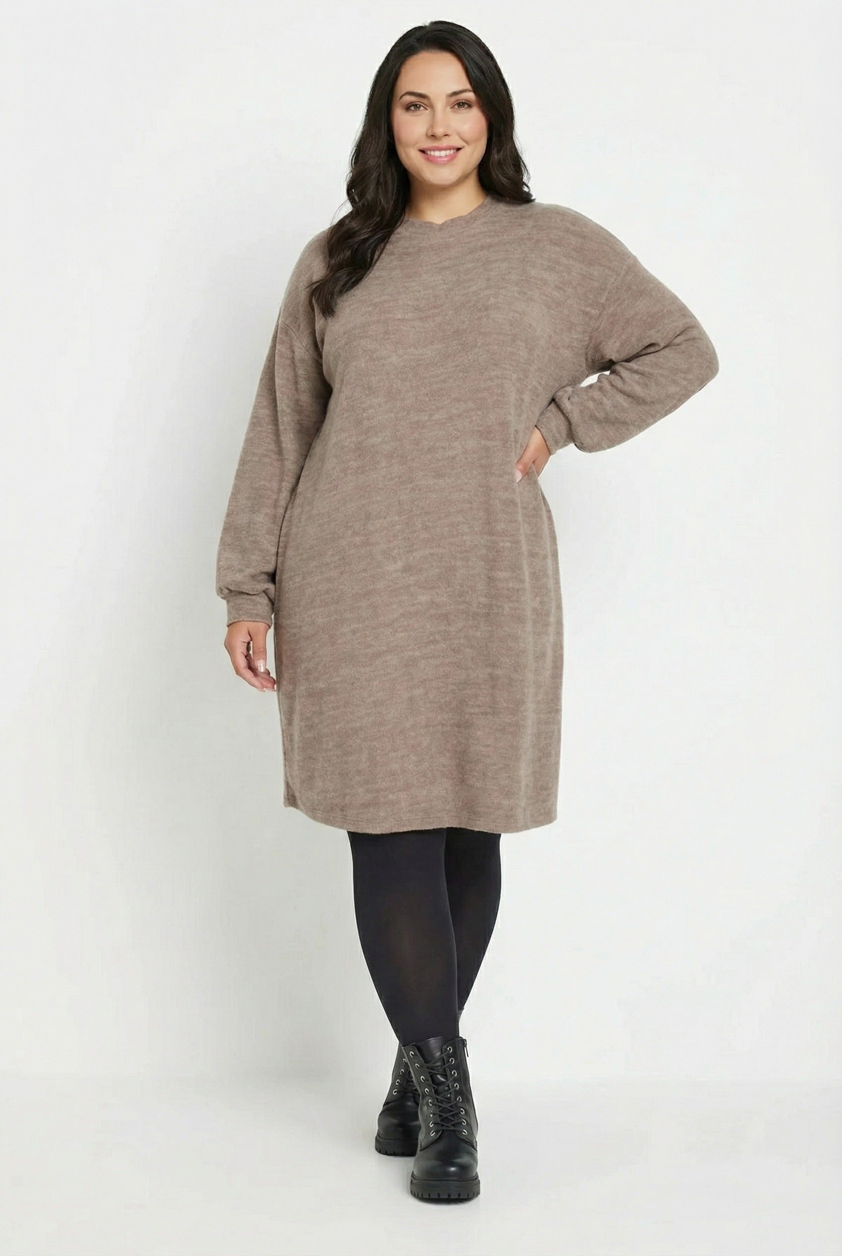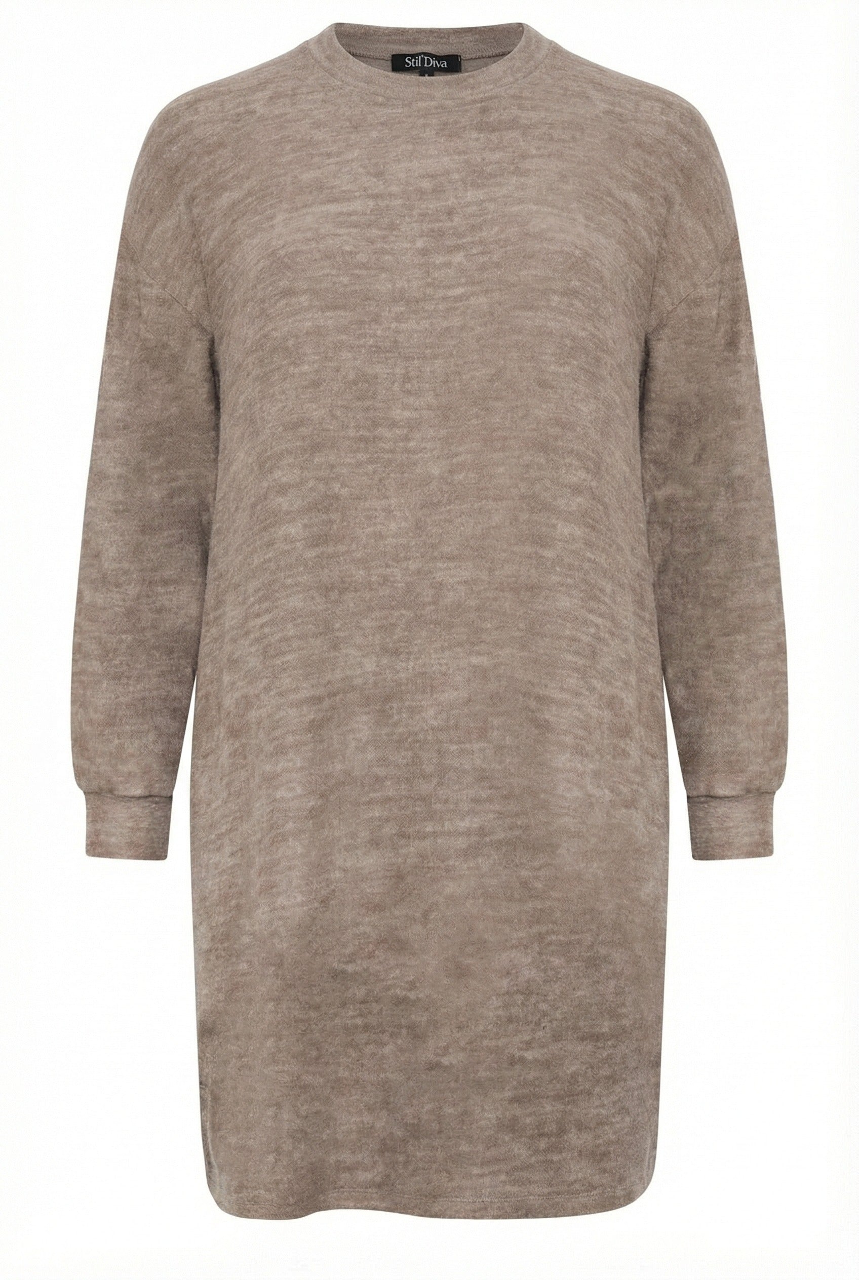שמלה במידות גדולות שרוול ארוך צווארון עגול מרקם רך מיני 321599