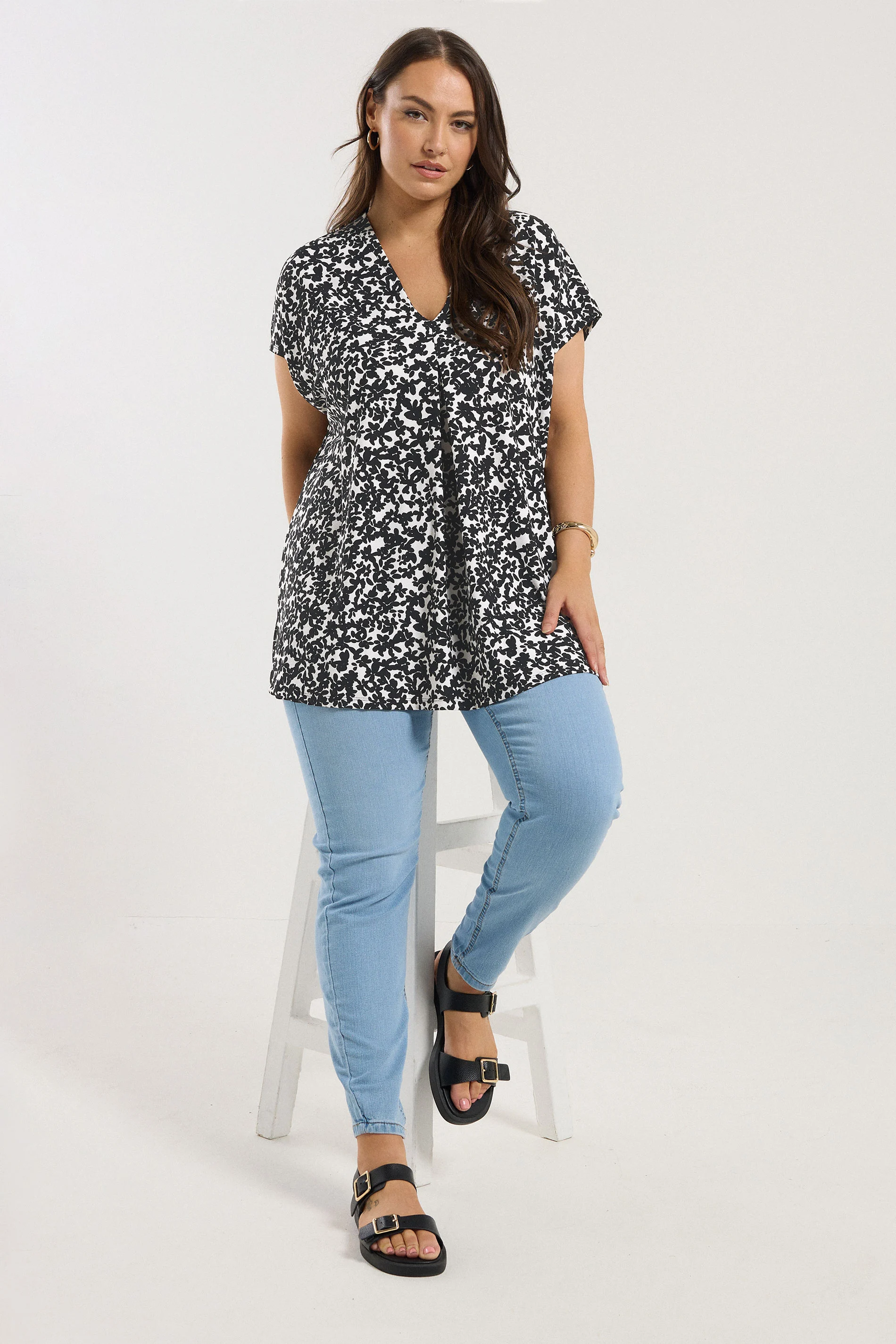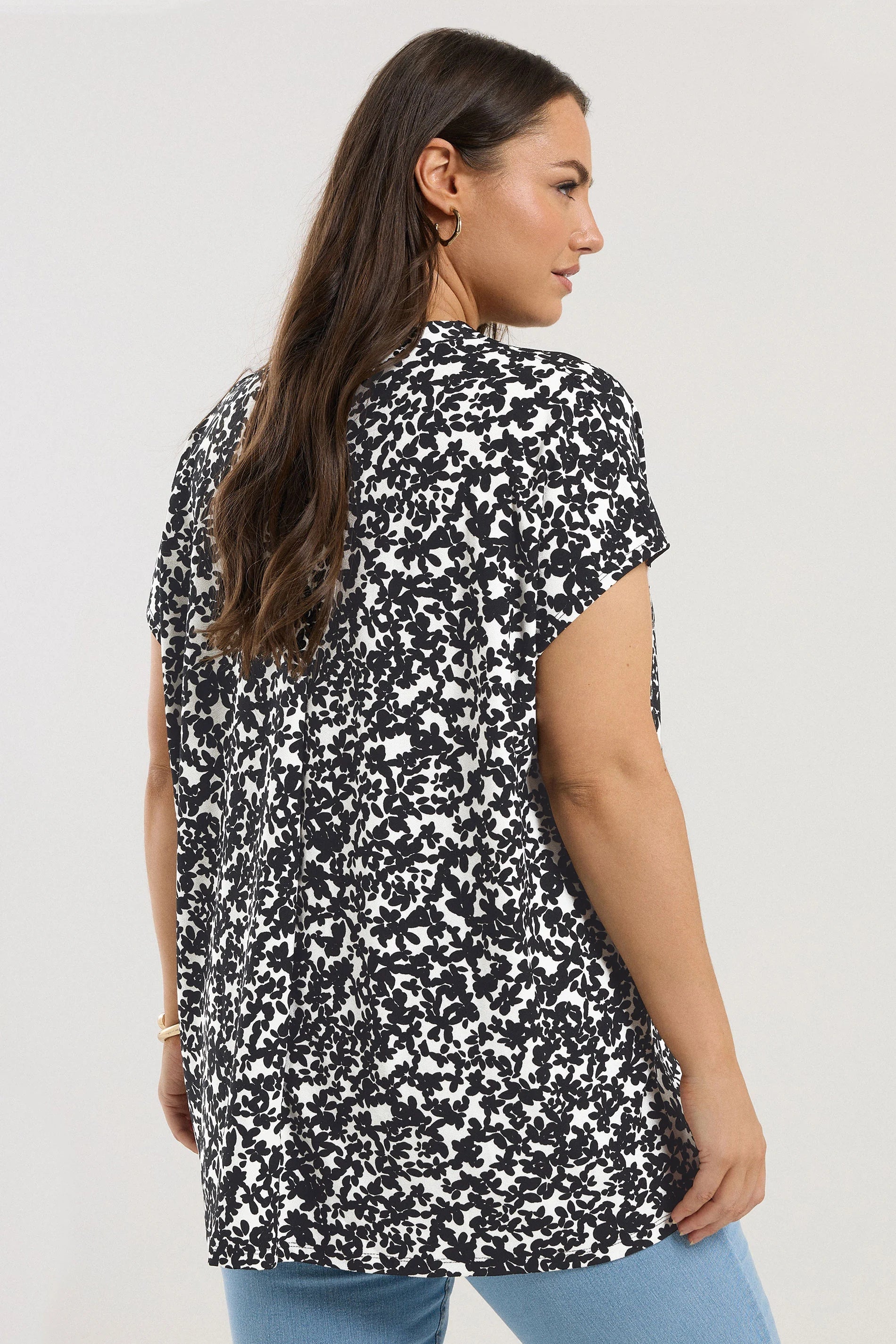 חולצה במידות גדולות צווארון V דוגמת פרחים שרוול קצר 321704