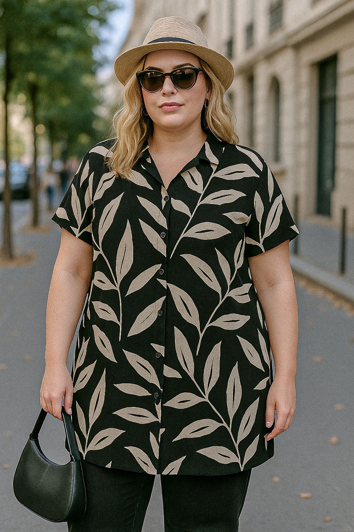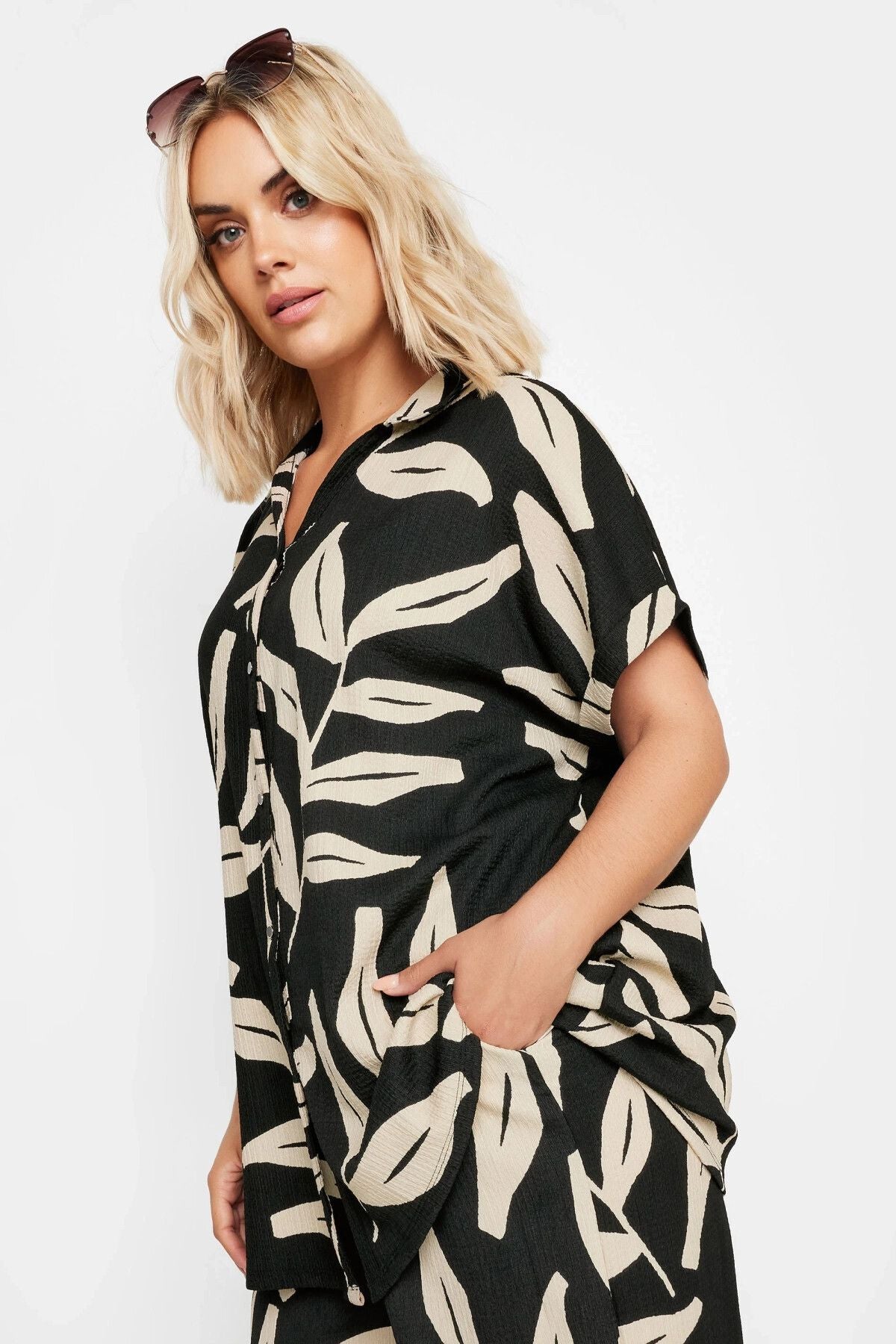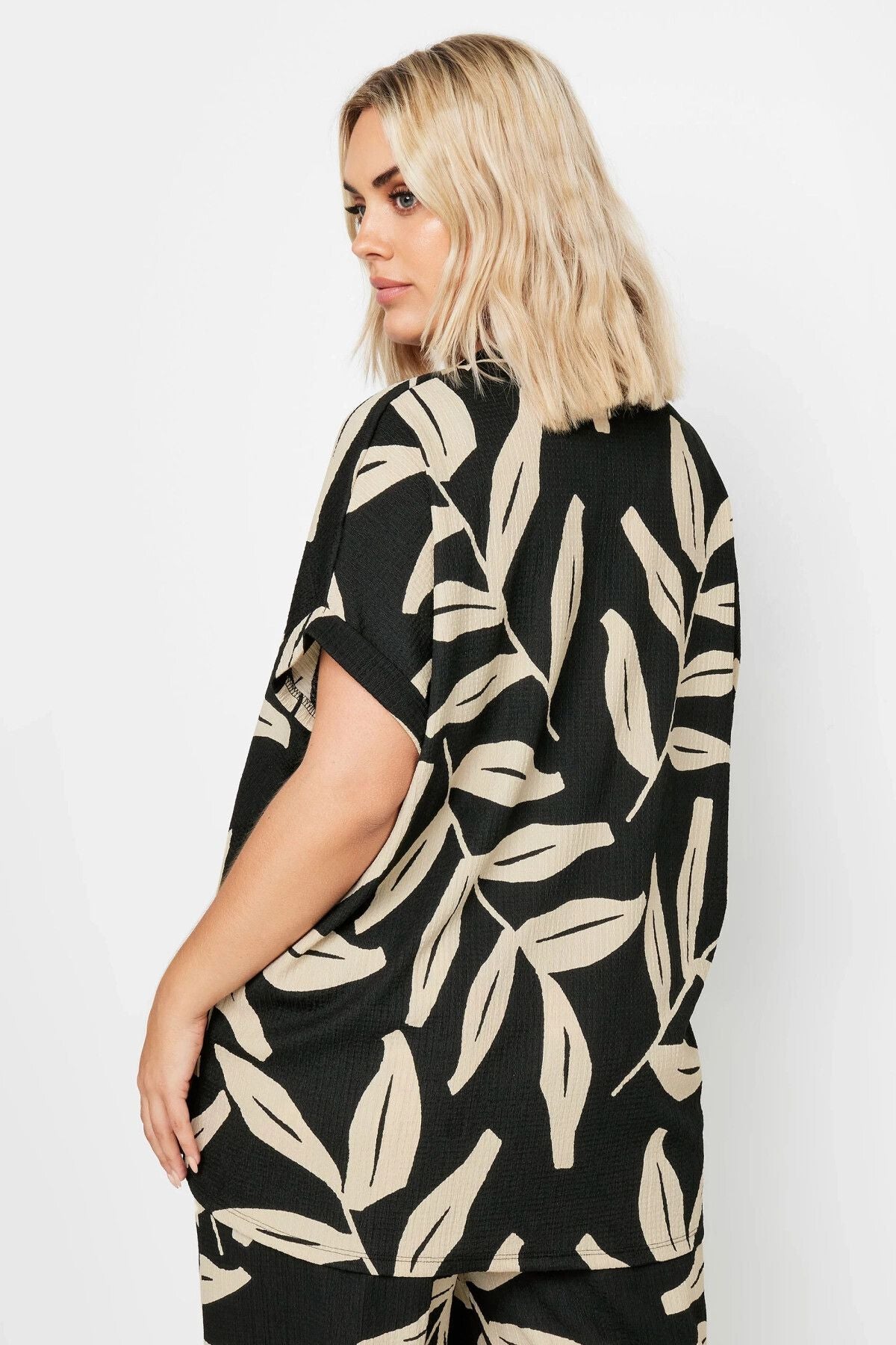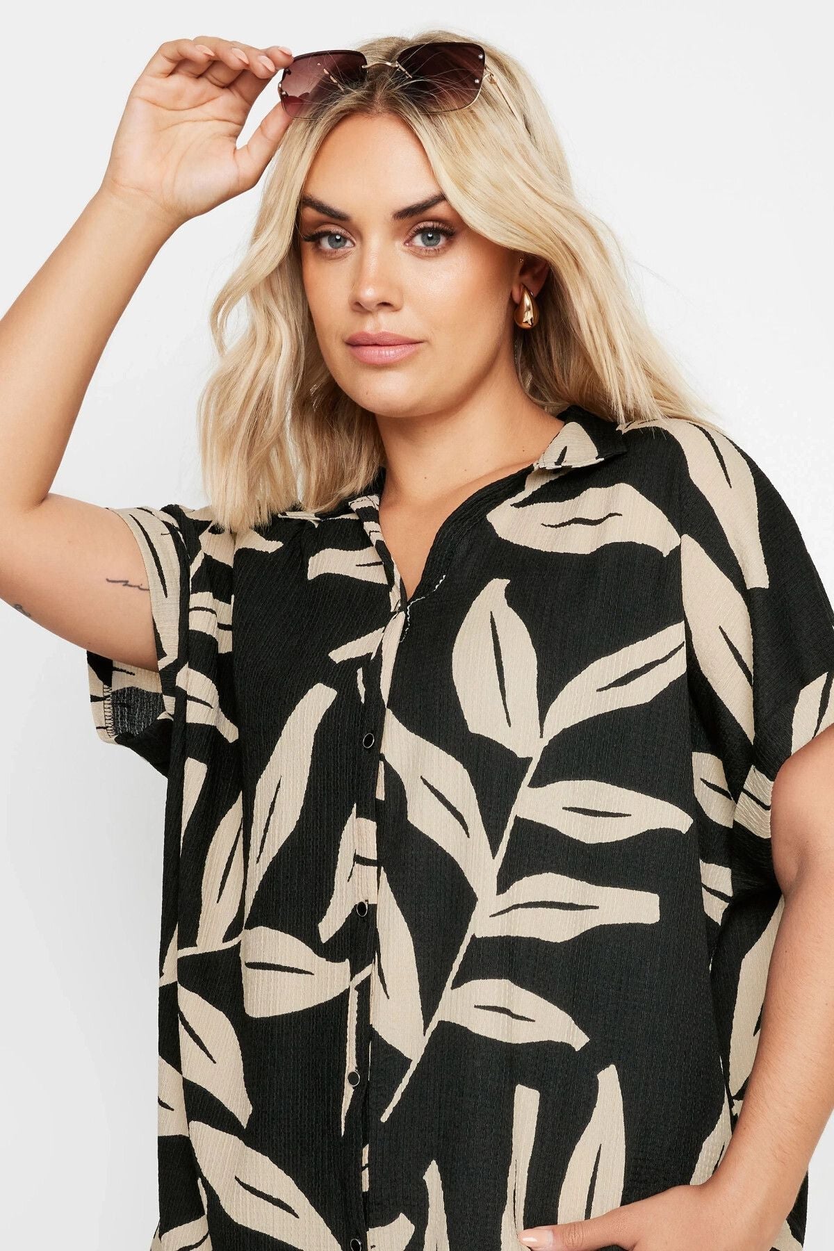 חולצה מכופתרת במידות גדולות שרוול קצר עם כפתורים עם הדפס 321855