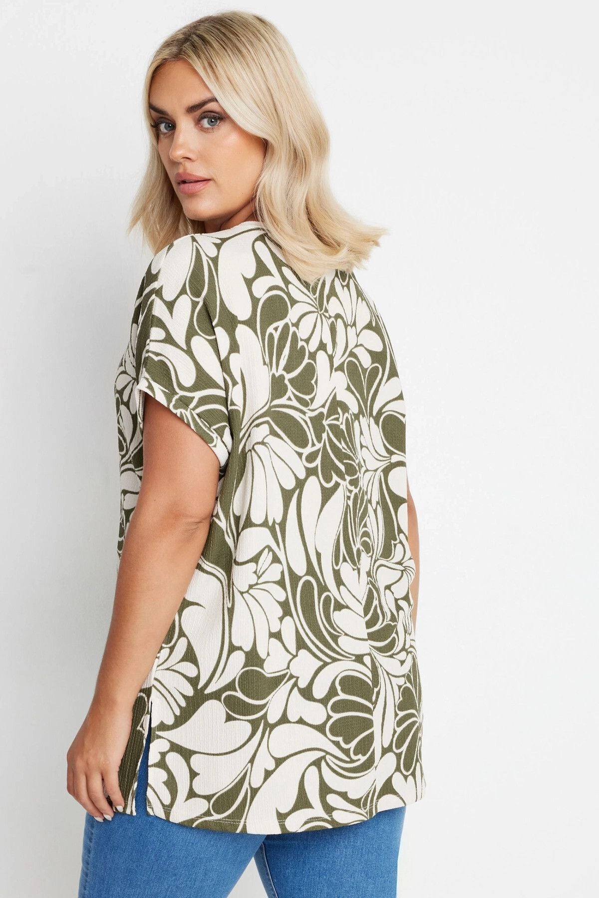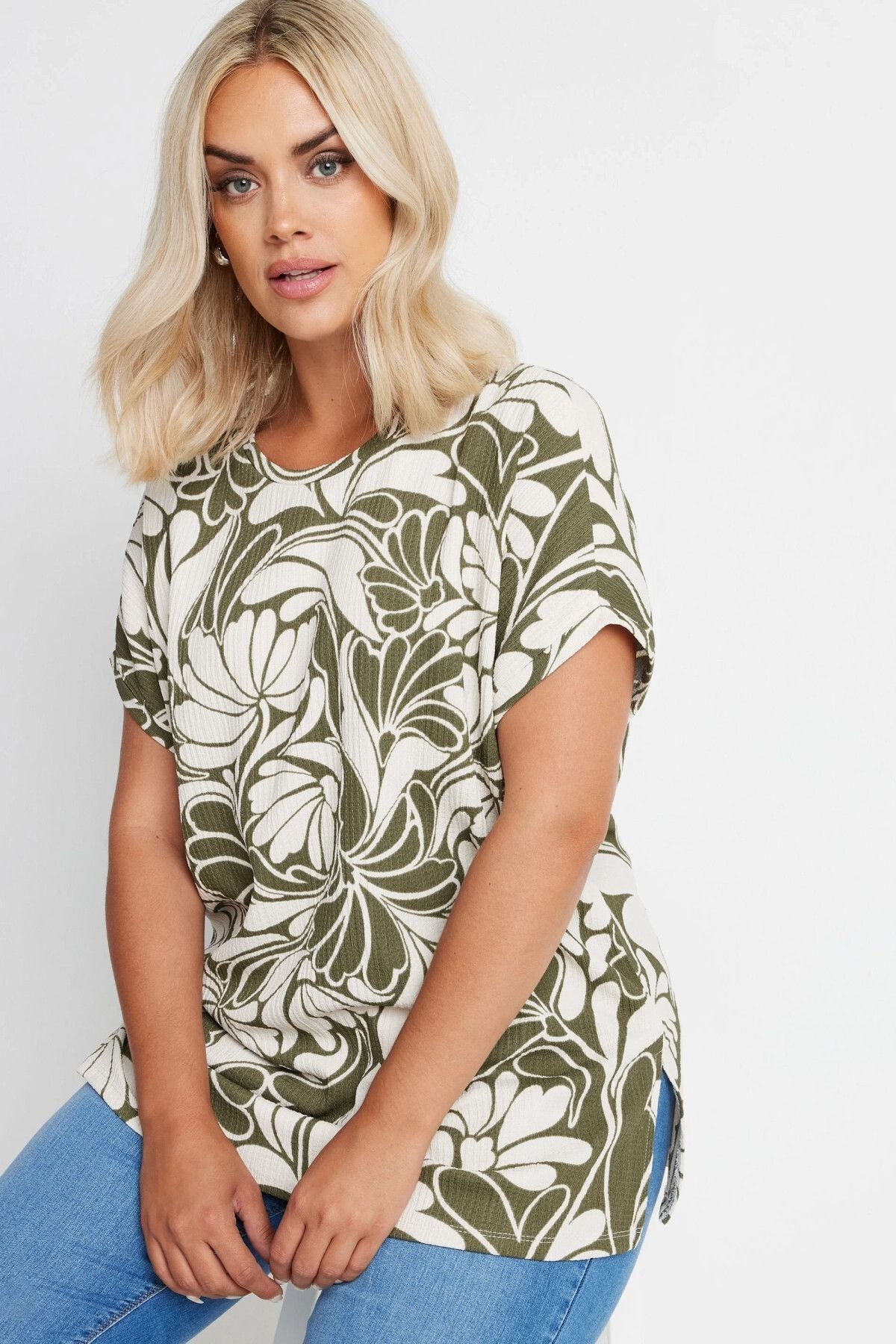 חולצה במידות גדולות עם צווארון עגול שרוולים קצרים והדפס 321994