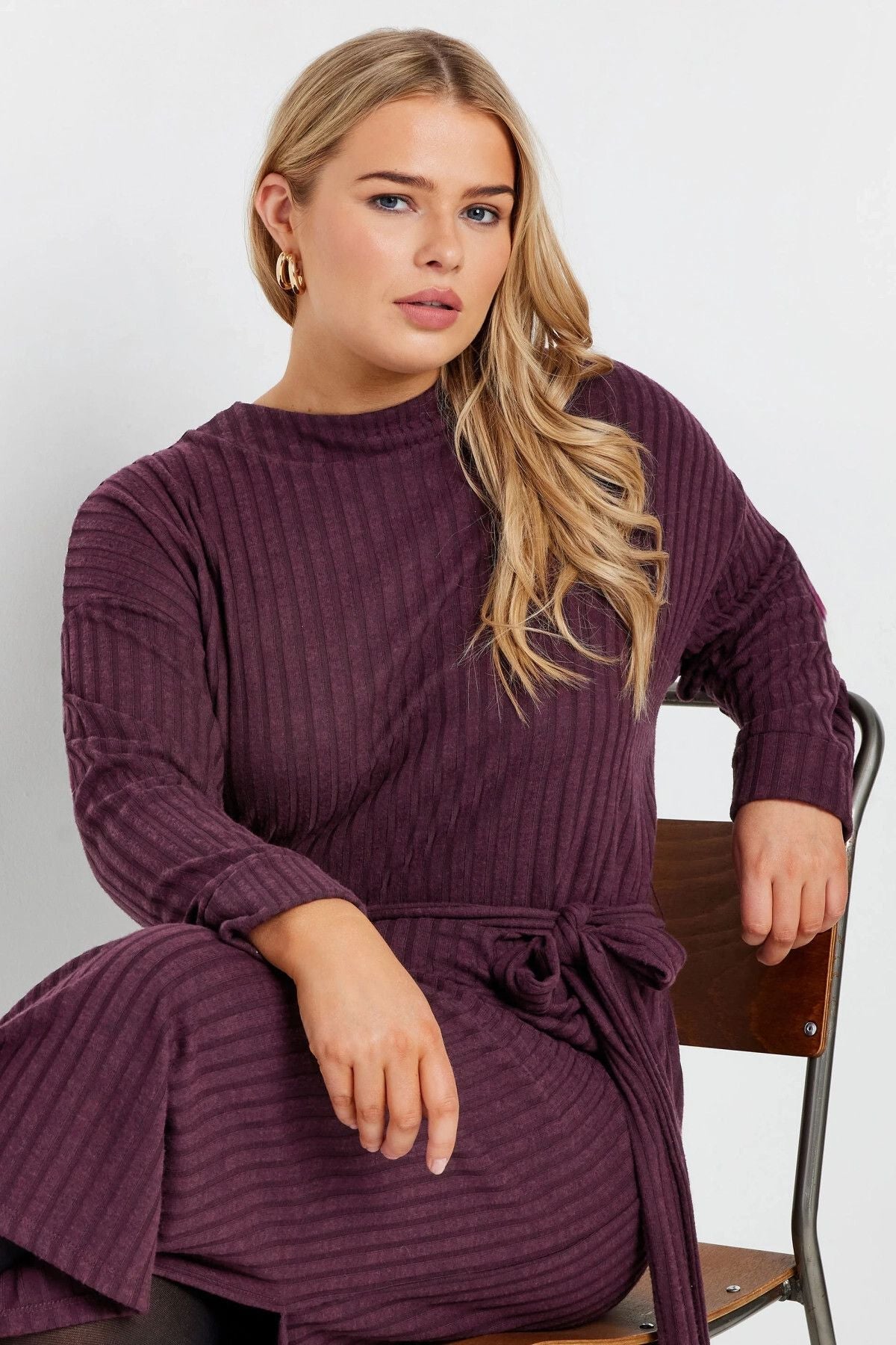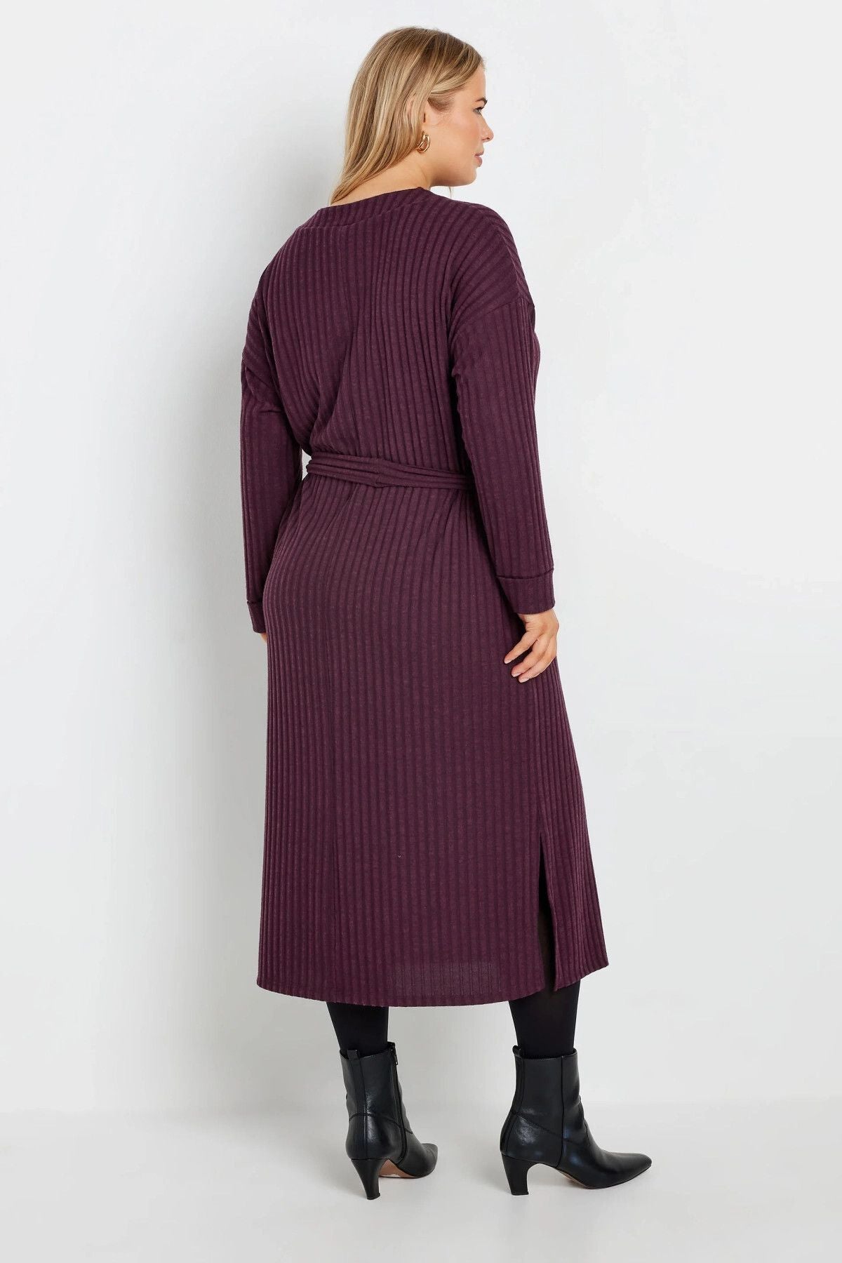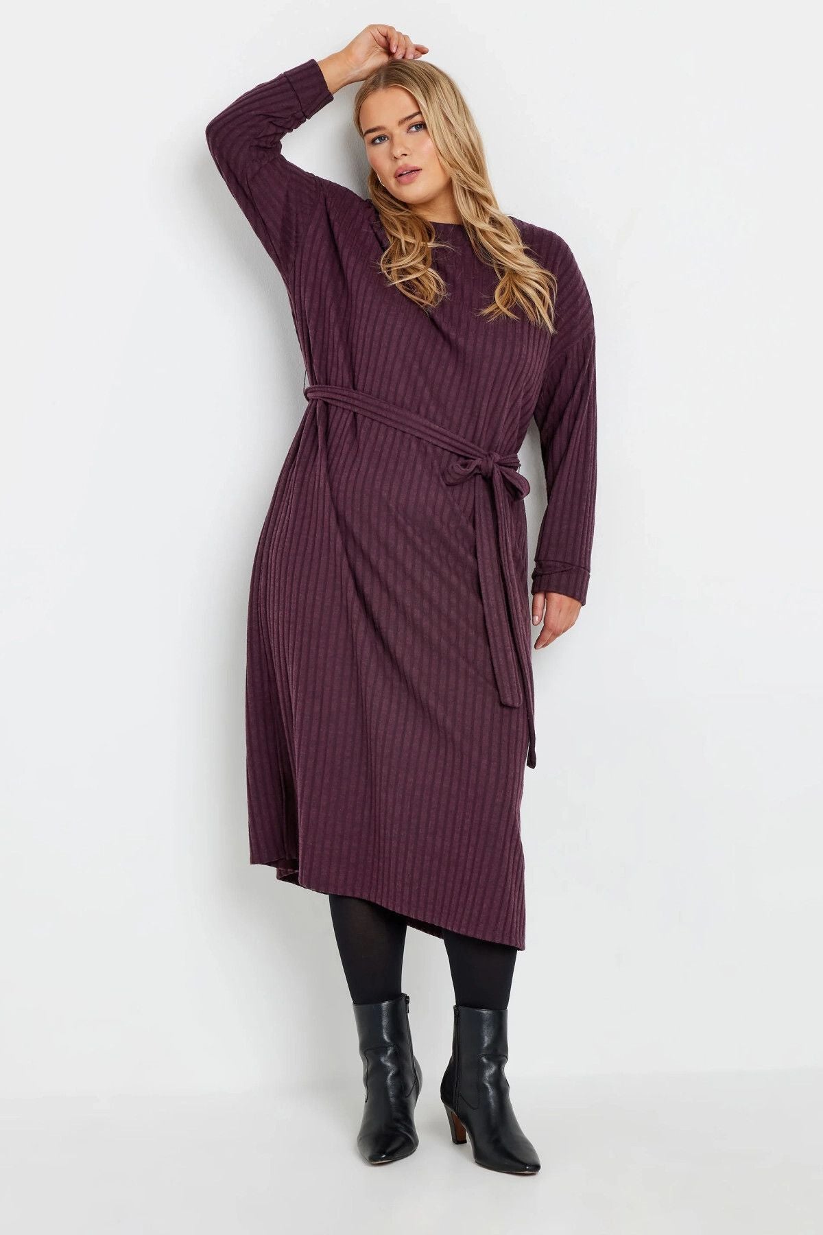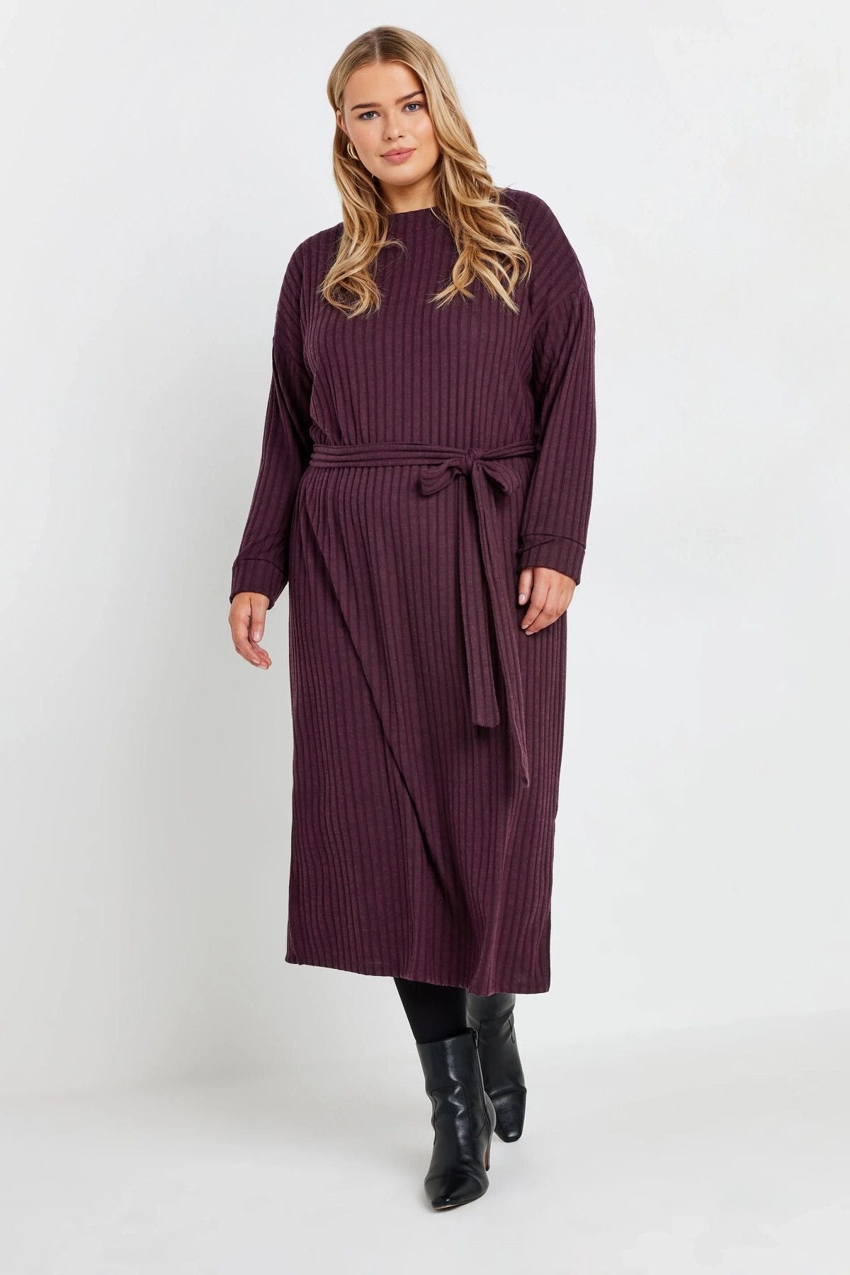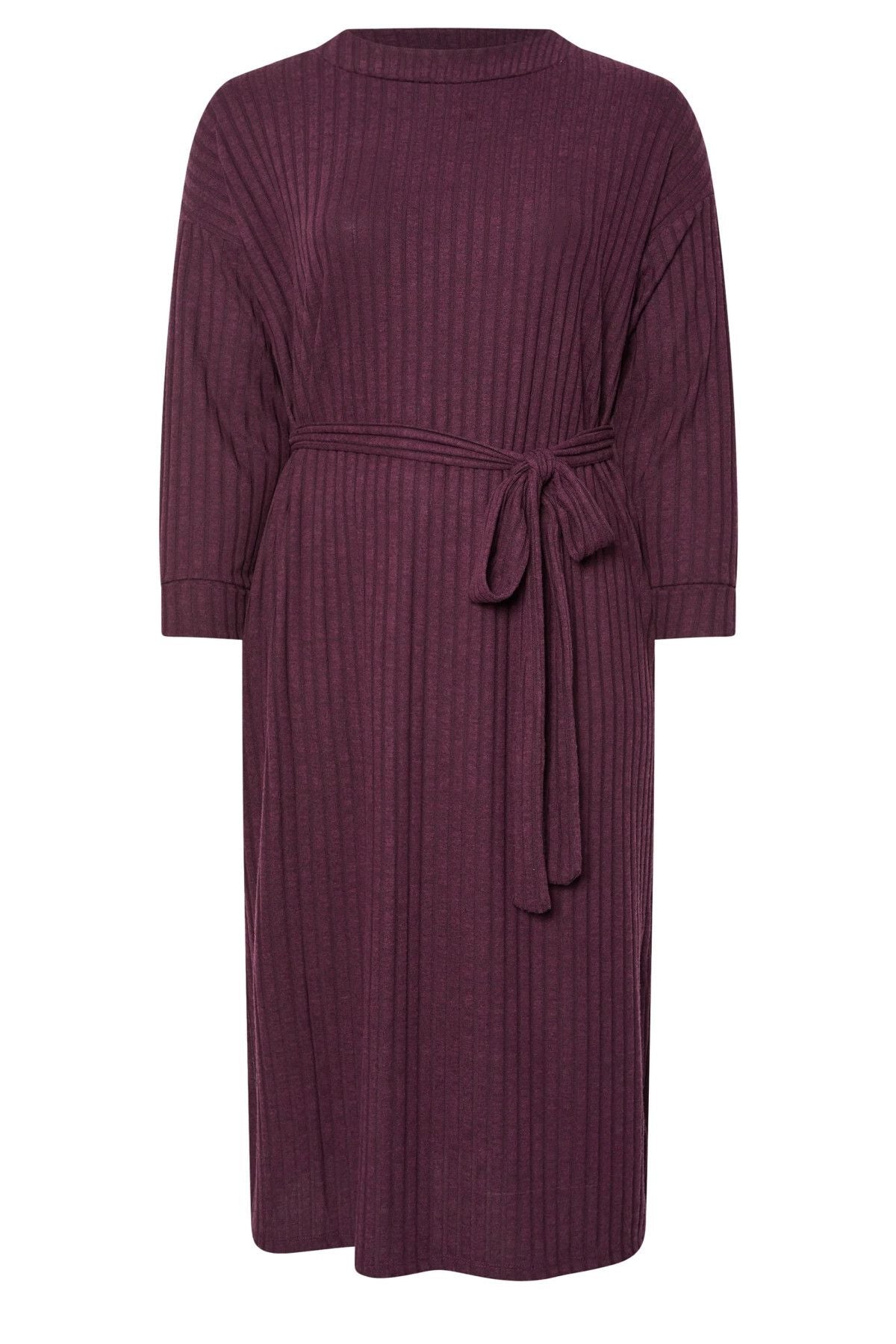שמלה במידות גדולות חגורה במותן גזרה ישרה בד במרקם שרוול ארוך ללא בטנה מידי 322195