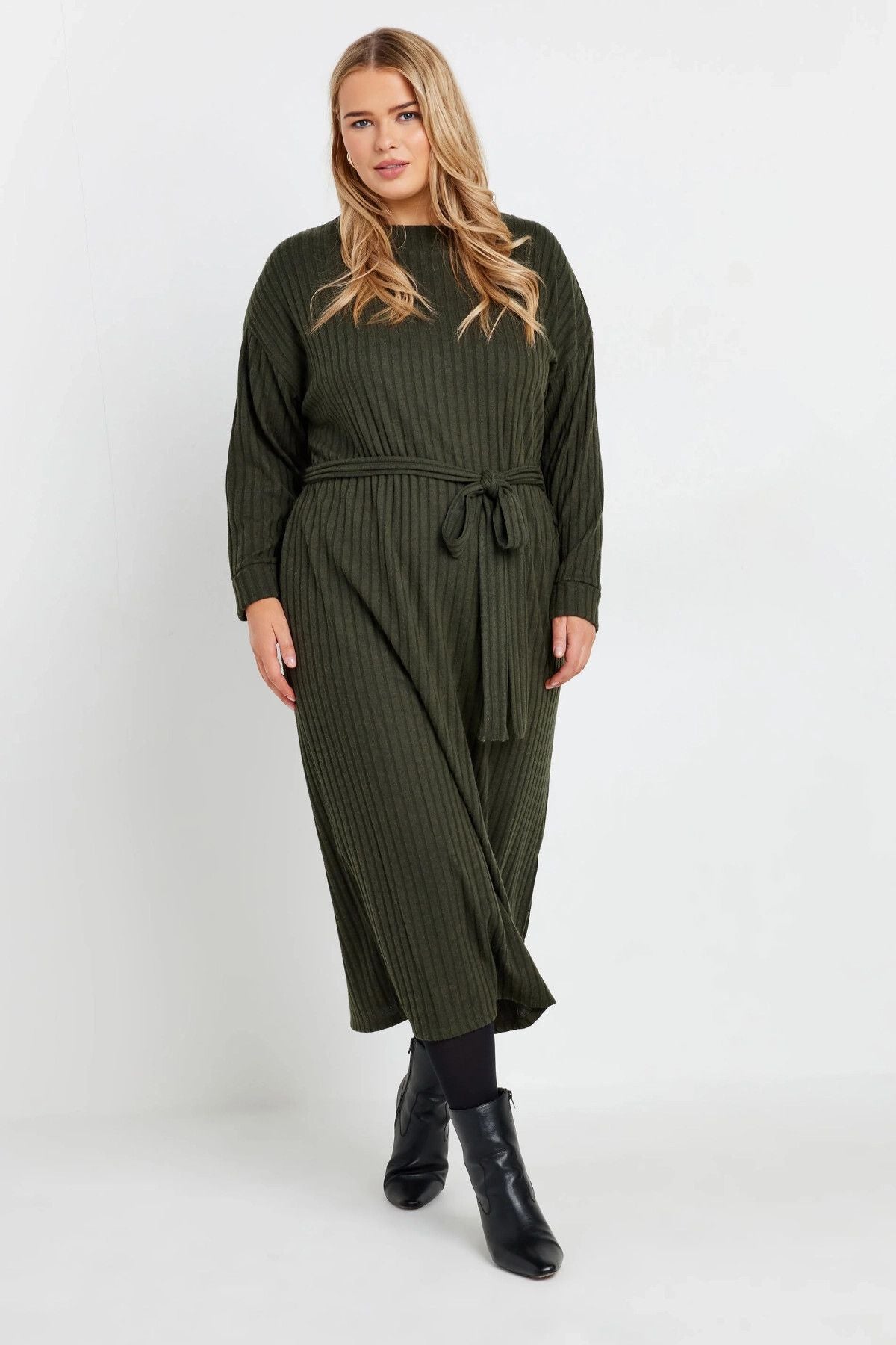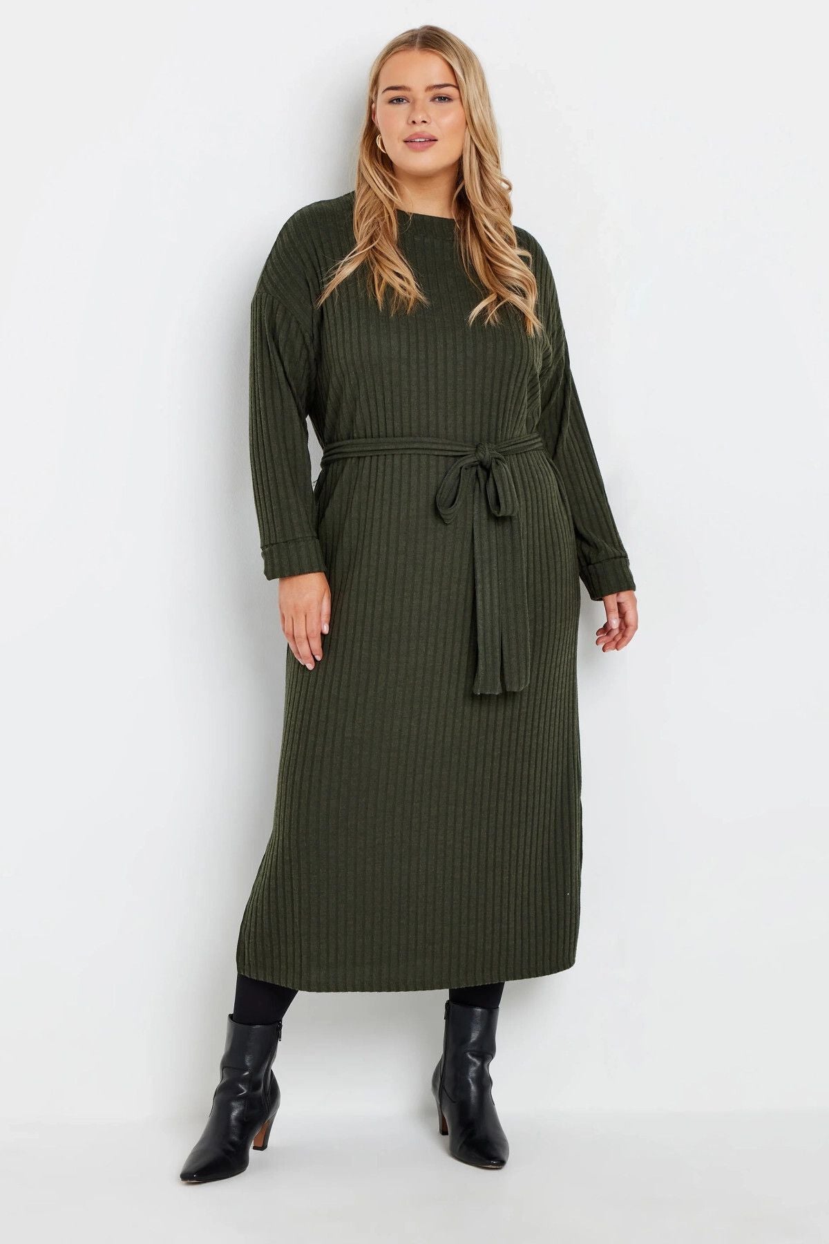 שמלה במידות גדולות חגורה במותן גזרה ישרה בד במרקם שרוול ארוך ללא בטנה מידי 322196