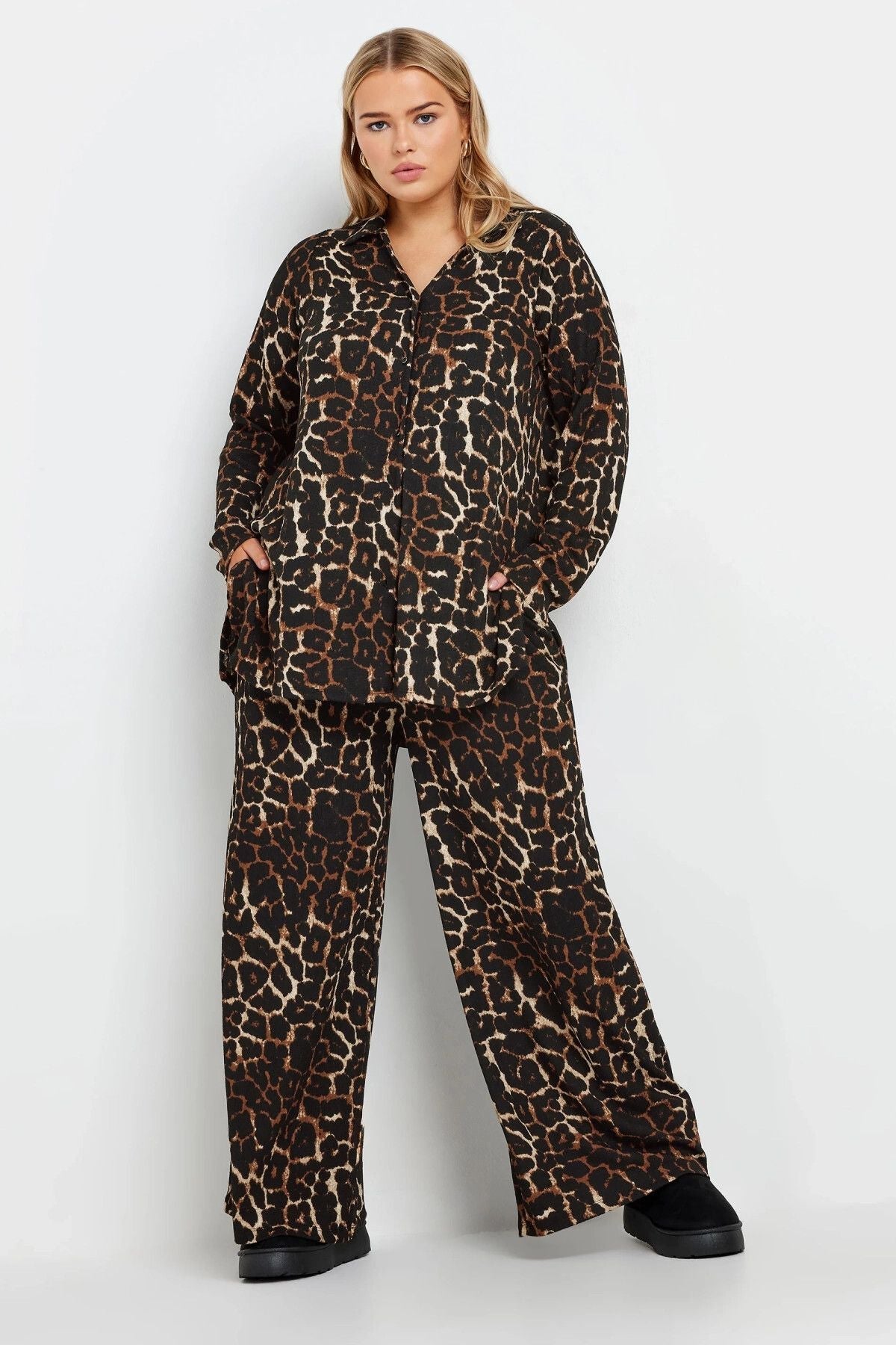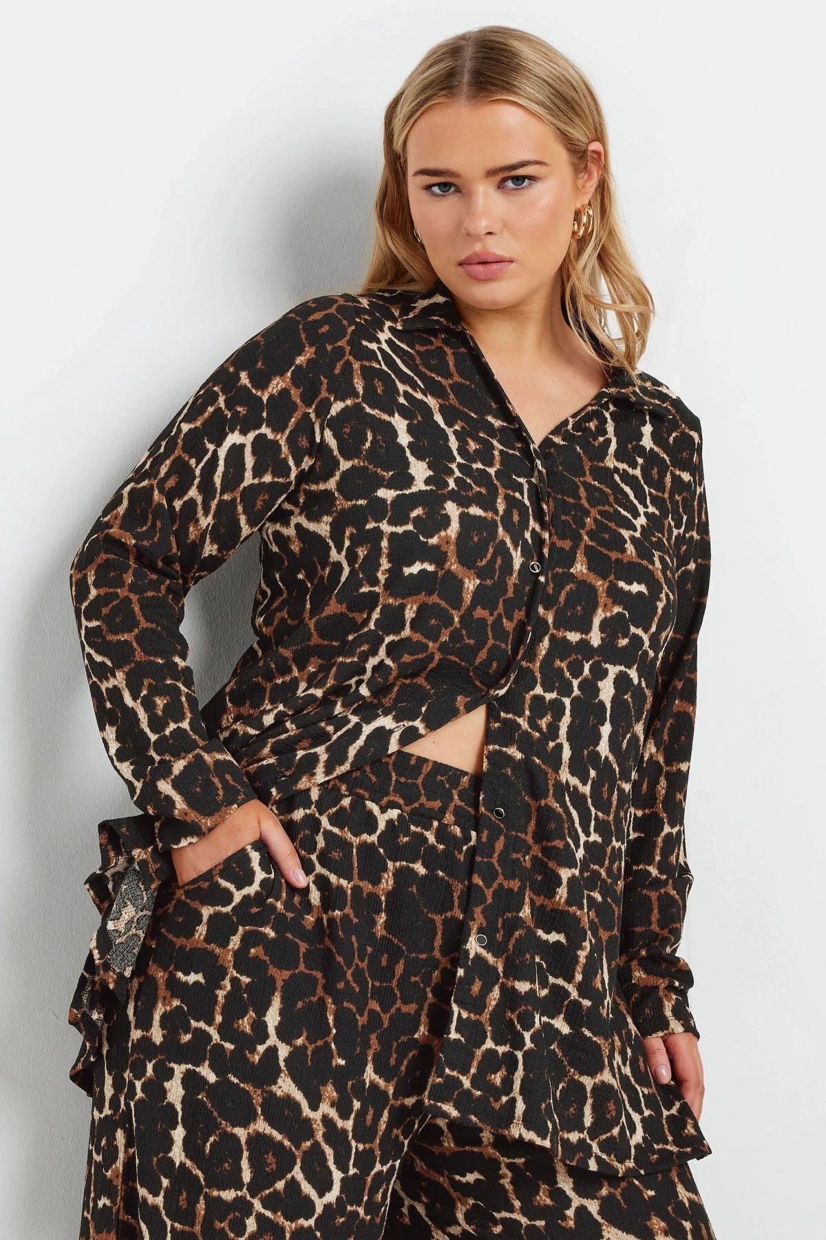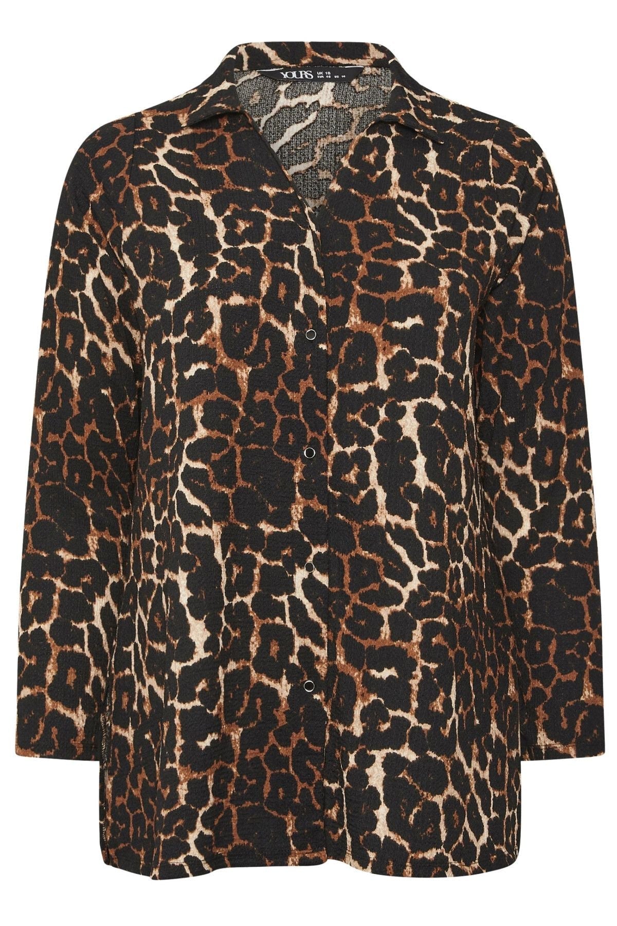 חולצה מכופתרת במידות גדולות שרוול ארוך כפתורים בחזית דוגמת נמר 322258