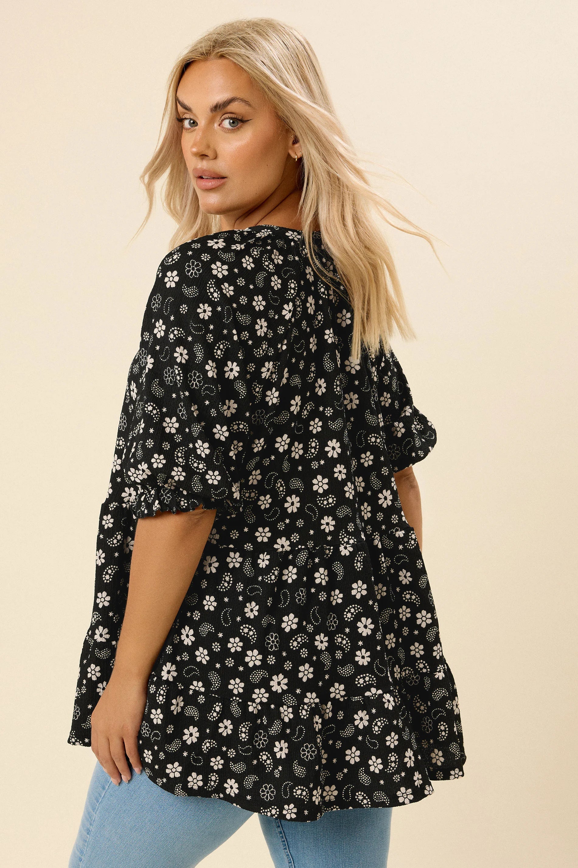 - תיאור מוצר: חולצה במידות גדולות עם הדפס שאל פרחוני, צווארון צ’נטיק, שרוול קצר וגזרת שכבות. דגם אוורירי, נוח ומחמיא המתאים במיוחד למראה יומיומי ולשילוב קל עם ג’ינס ונעלי ספורט.