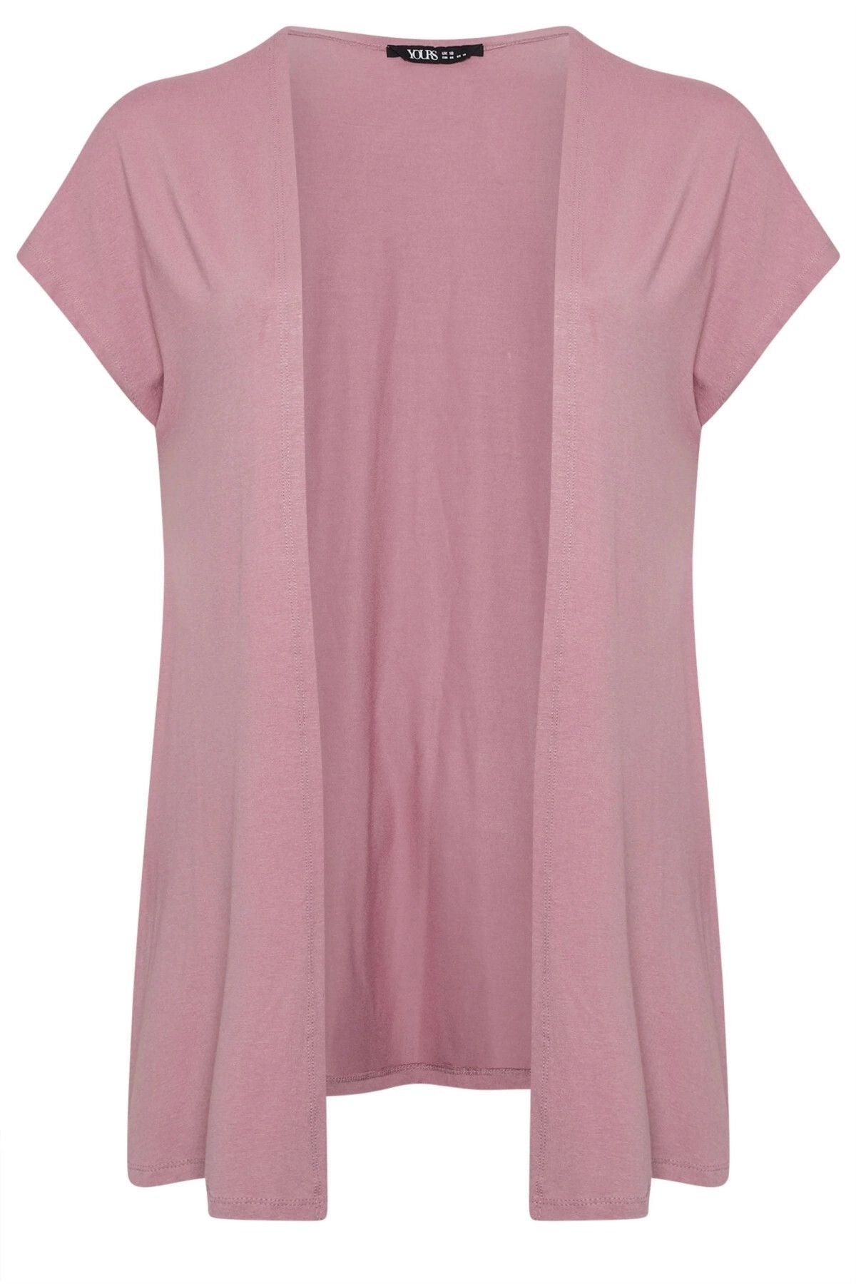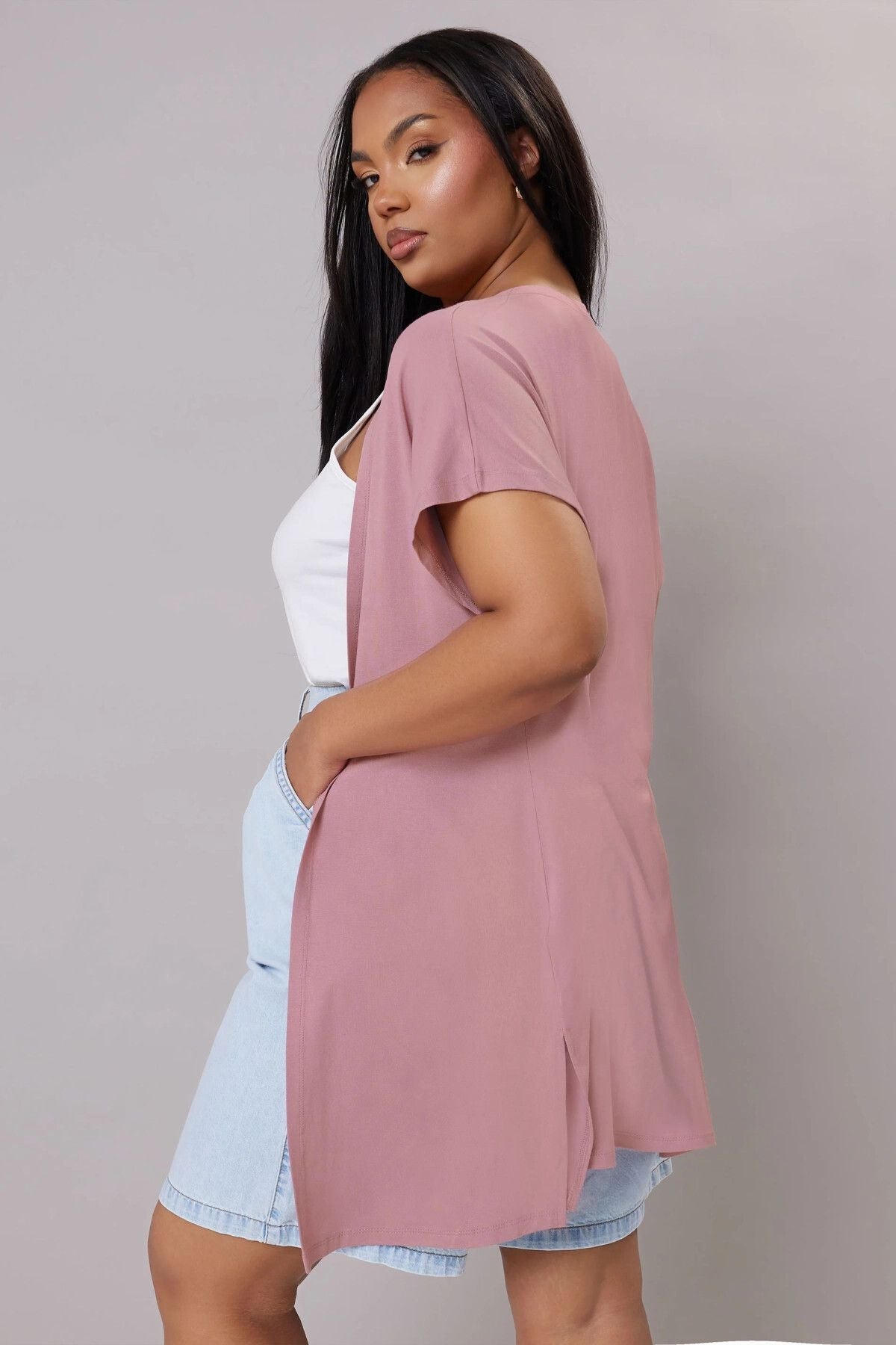 קרדיגן במידות גדולות שרוול קצר דק פתוח ללא סגירה שסעים בצדדים 322645