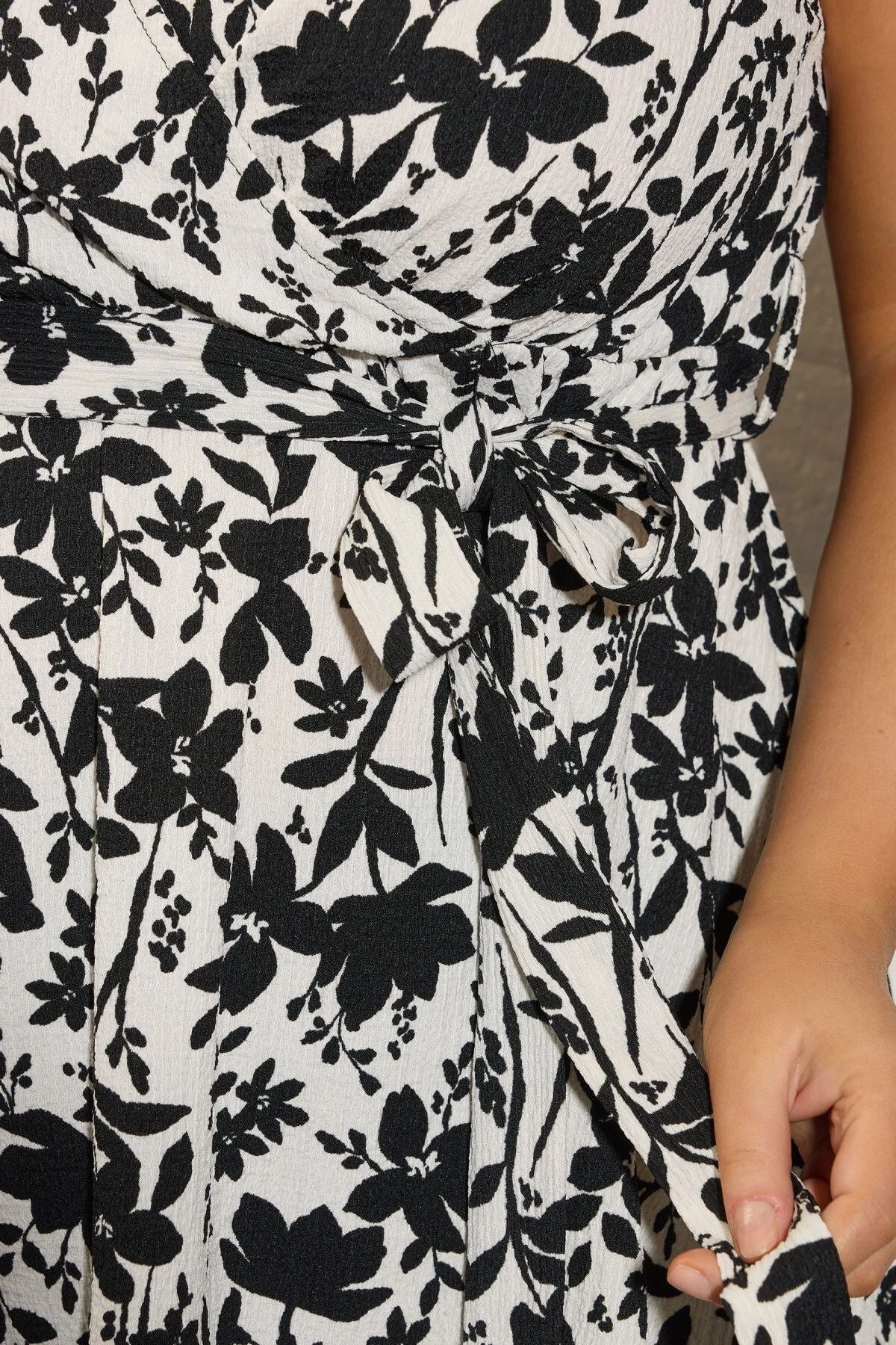 - פרטי הדגם: עם הדפס פרחים, צווארון V מדורג, קשירה קדמית, חולצה ללא שרוולים