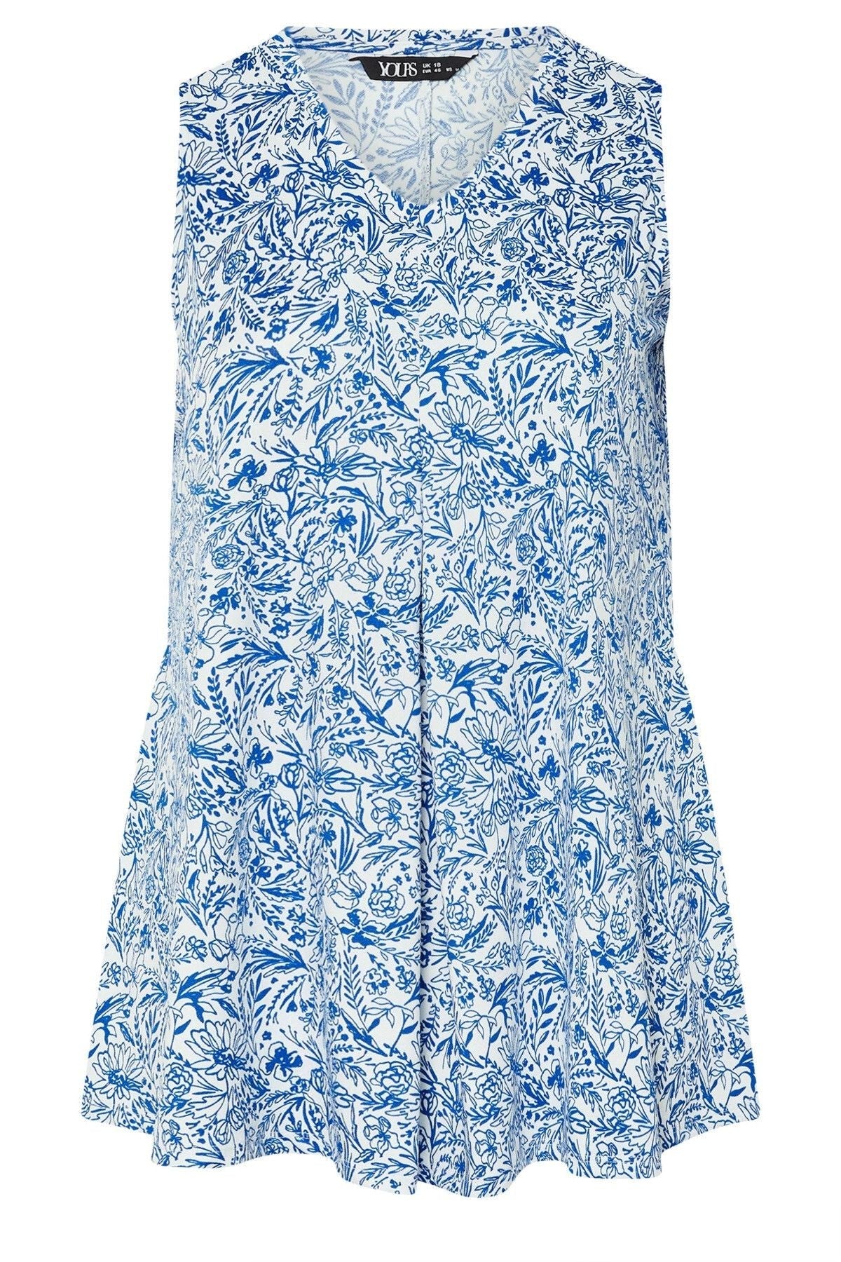 • פרטי הדגם: דוגמת פרחים, חזית עם קפלים, צווארון V, חולצה ללא שרוולים, גזרת סווינג