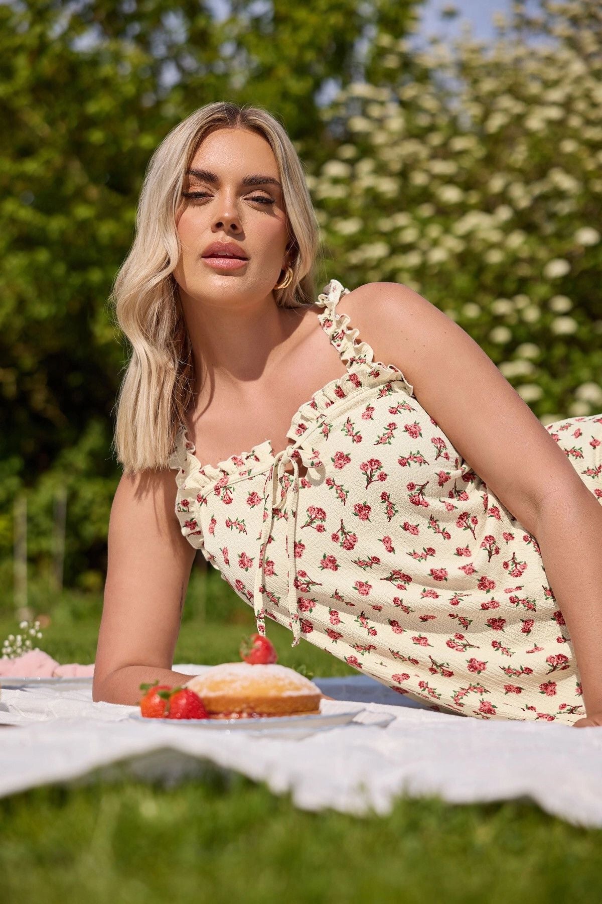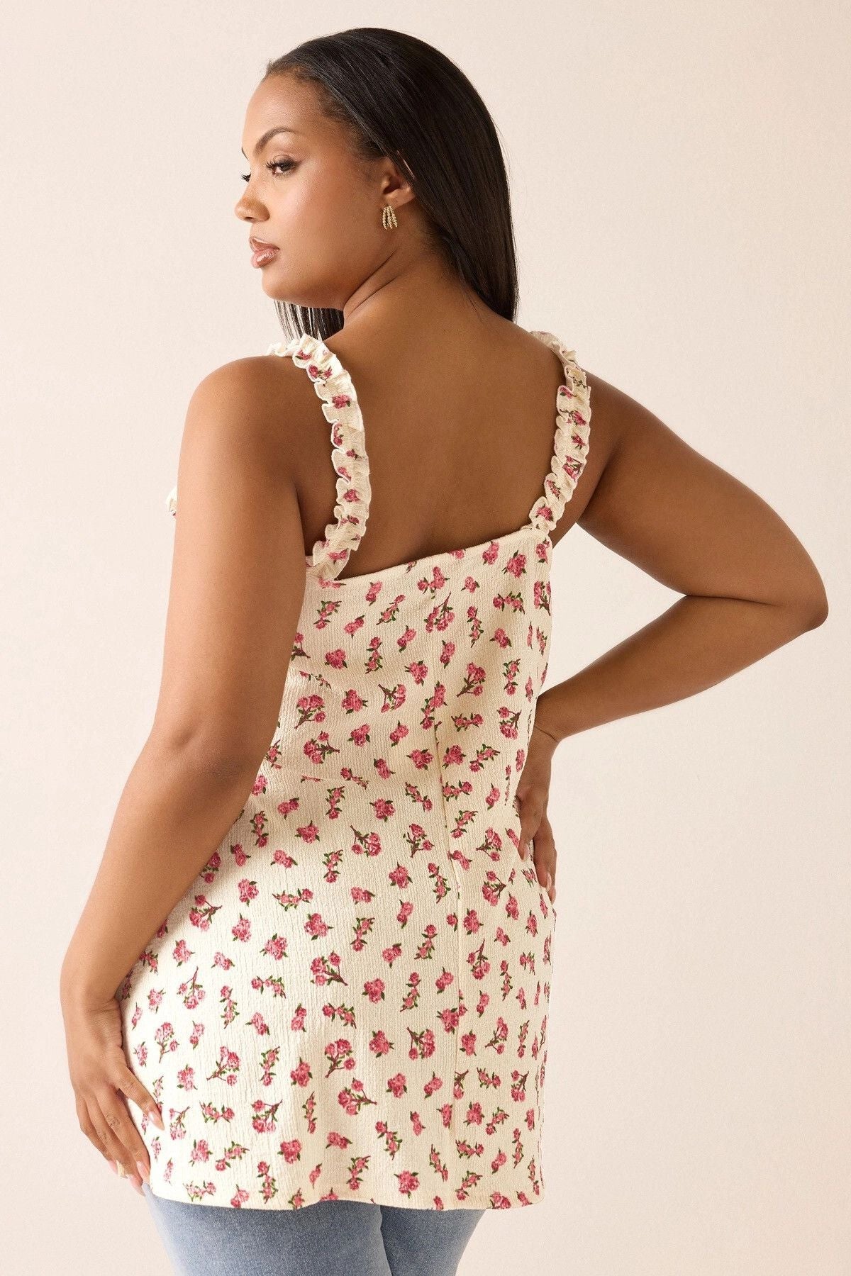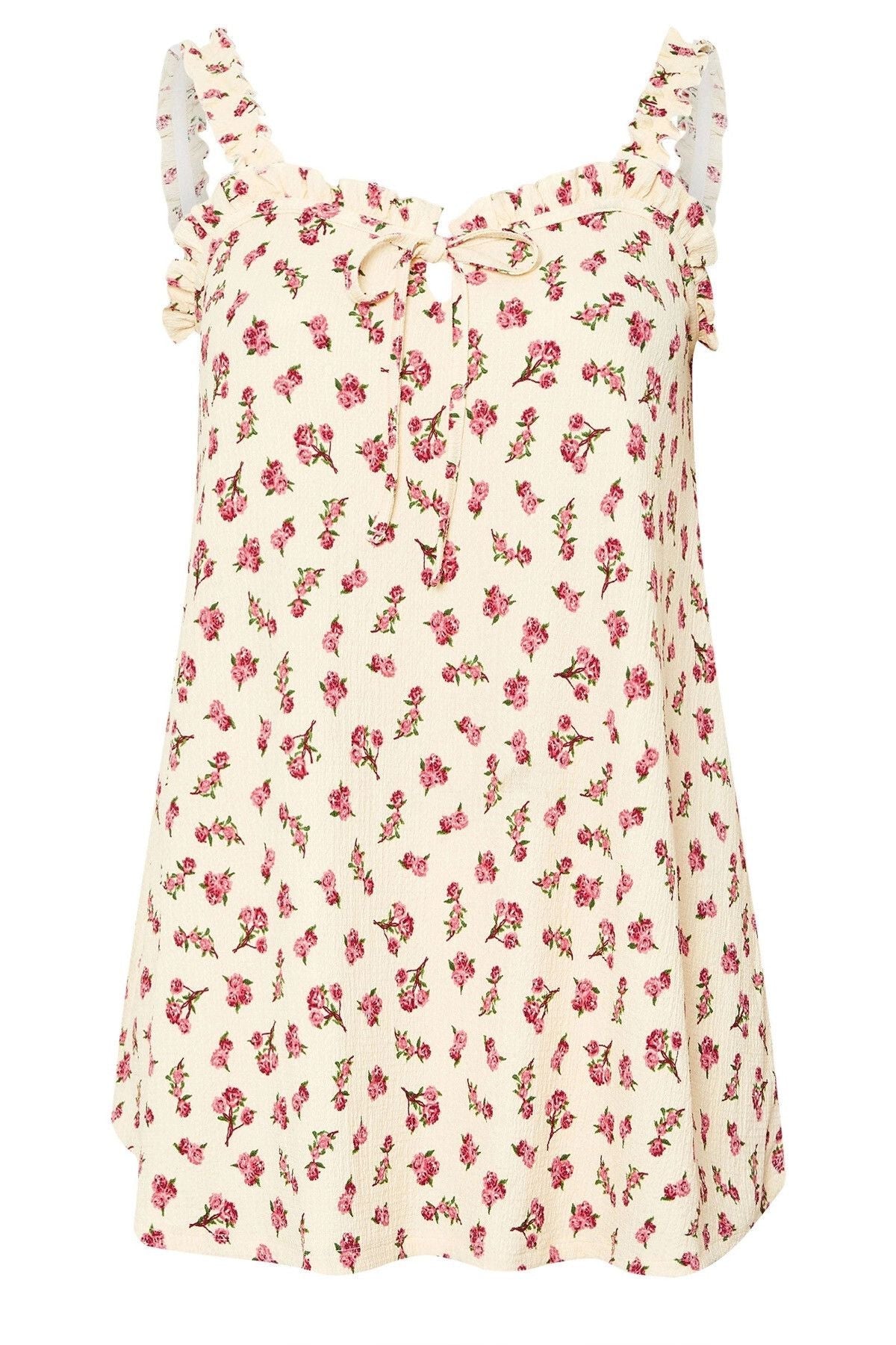 - פרטי הדגם: עם הדפס פרחים, כתפיות וצווארון במלמלה, צווארון קשירה, חולצה ללא שרוולים, גזרה נוחה