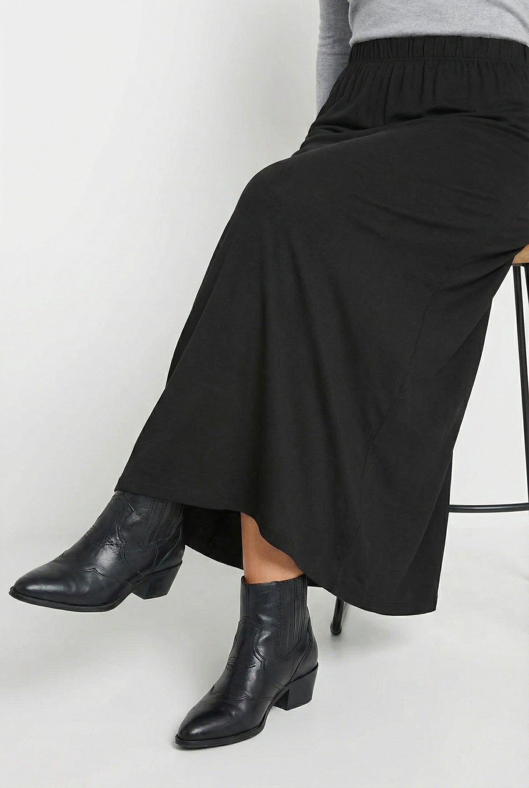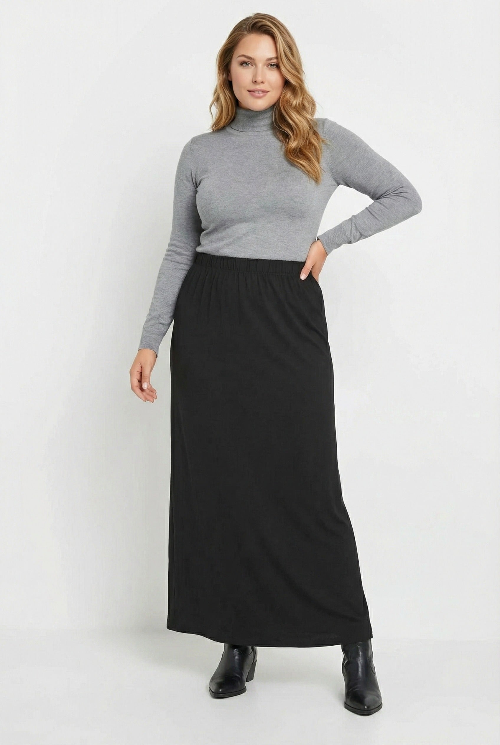 חצאית במידות גדולות מותן אלסטית גזרה גמישה מקסי