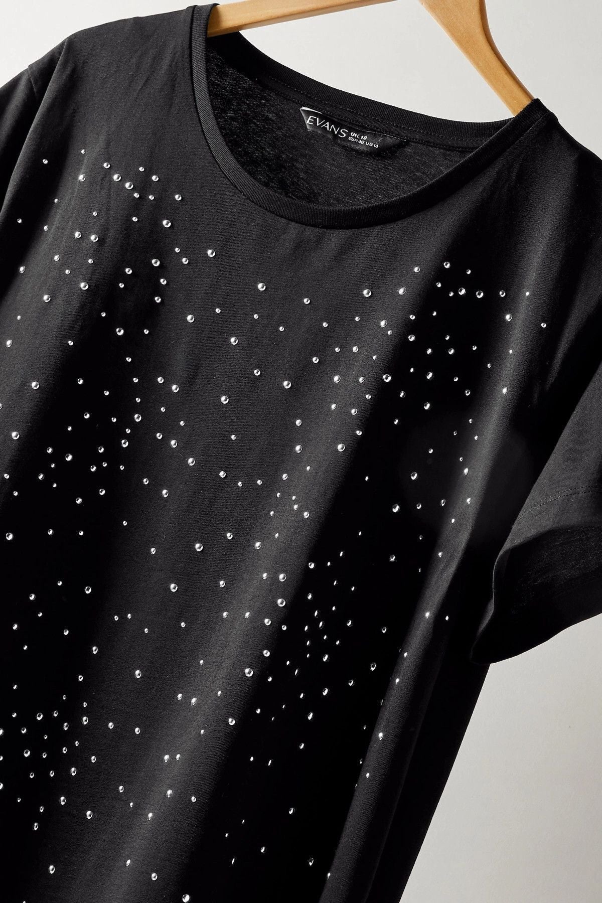 טישירט במידות גדולות צווארון עגול קצר מעוטרת באבנים 615350