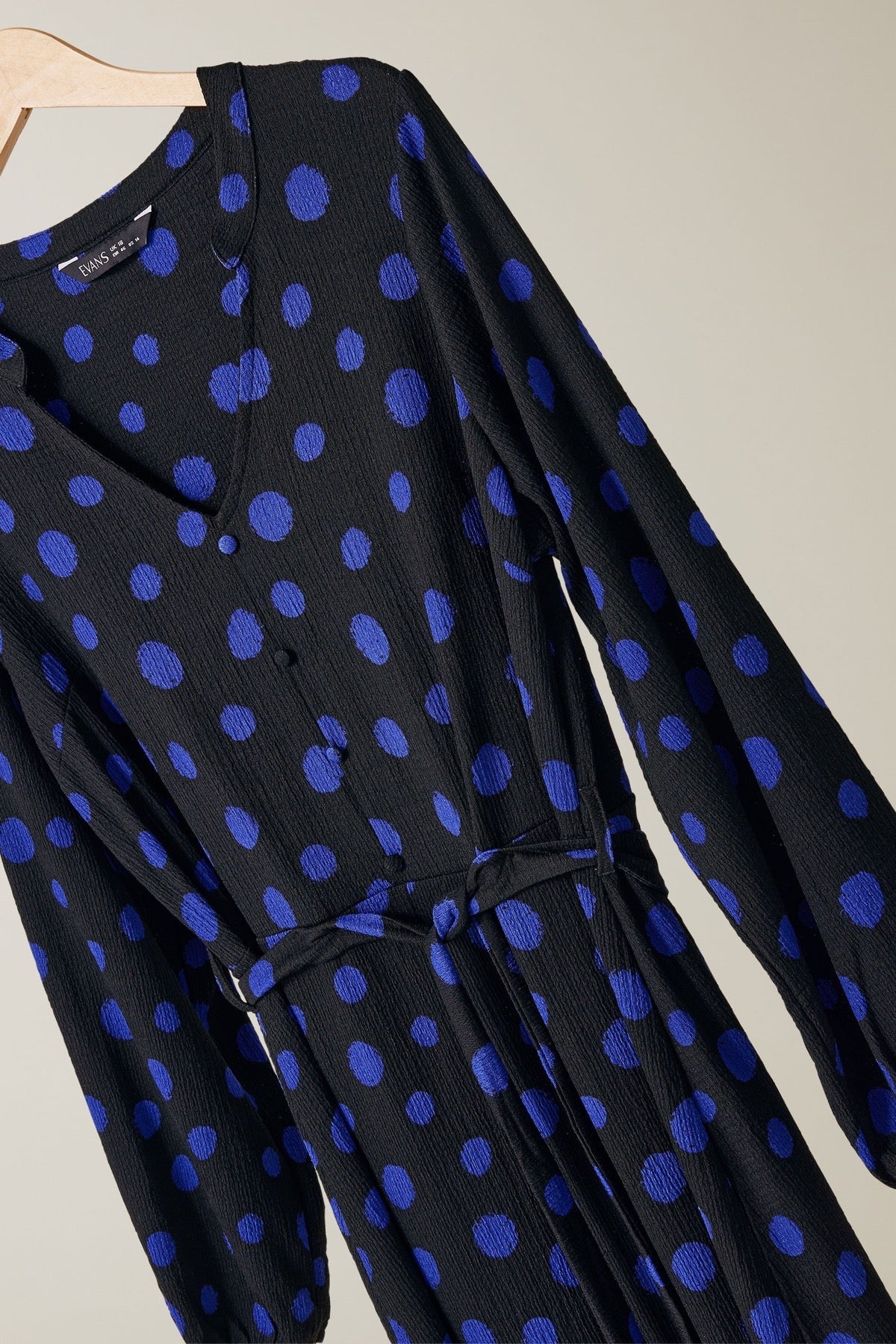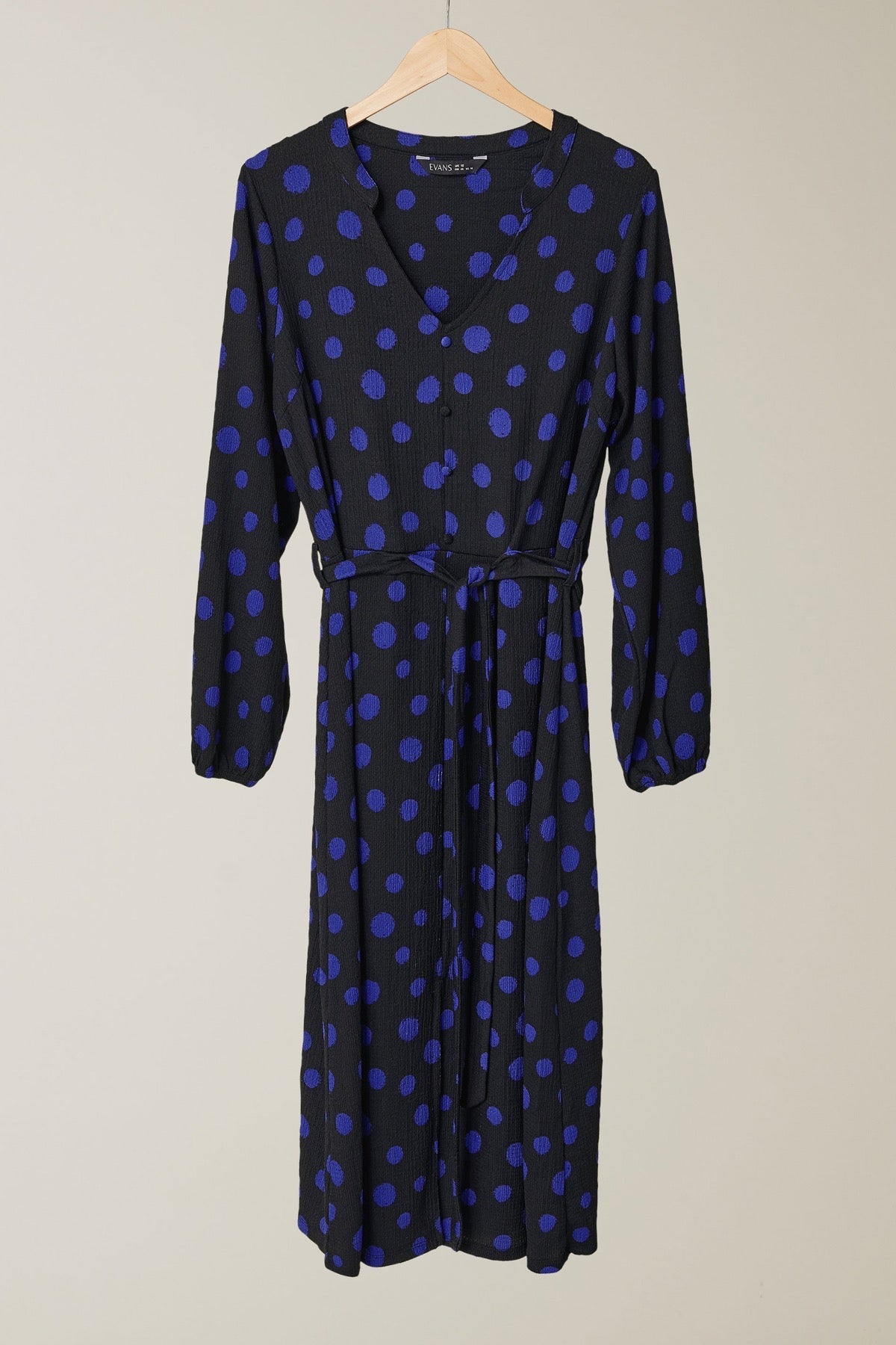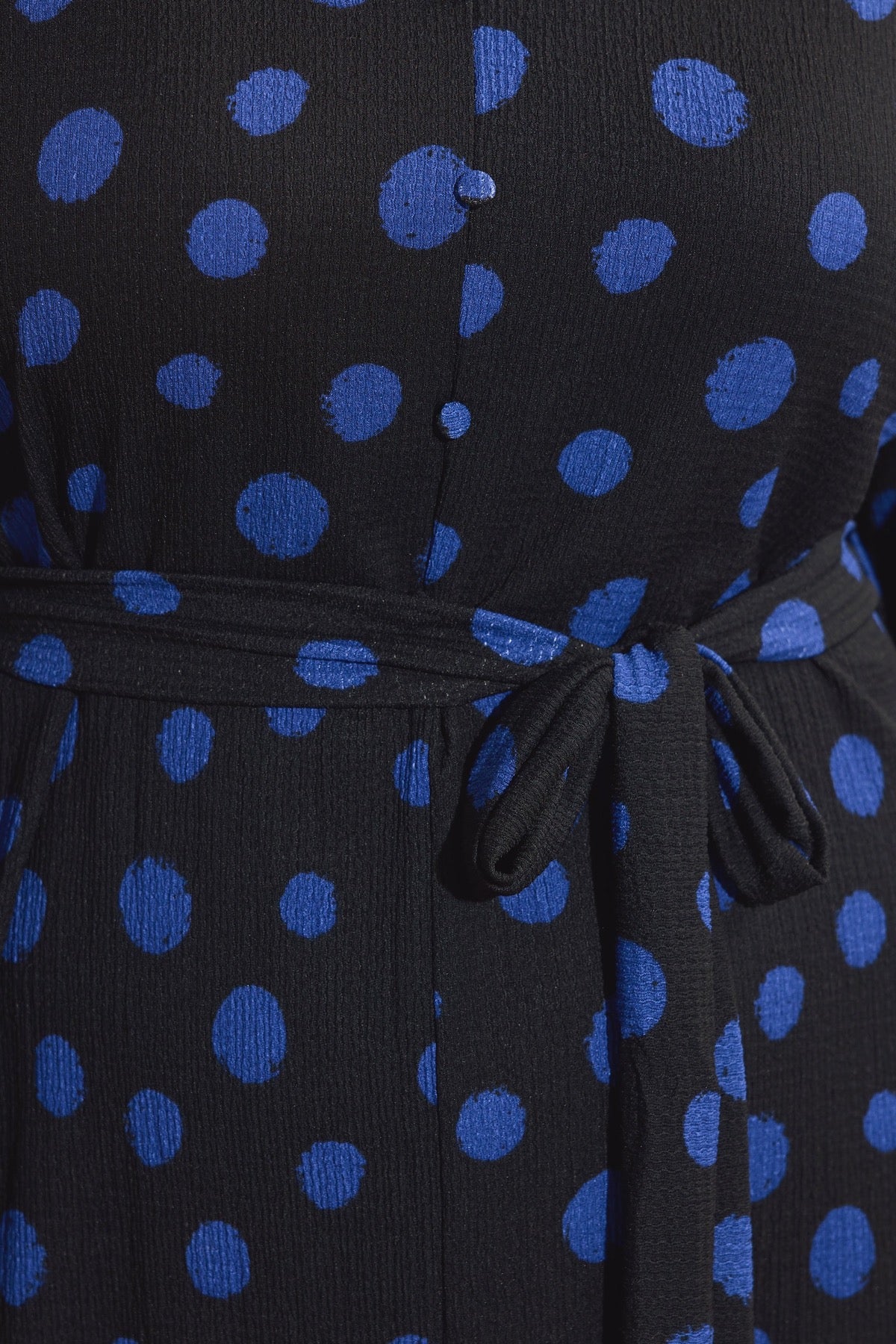 שמלה ארוכה במידות גדולות שרוול ארוך צווארון V חגורה דוגמת נקודות 615816
