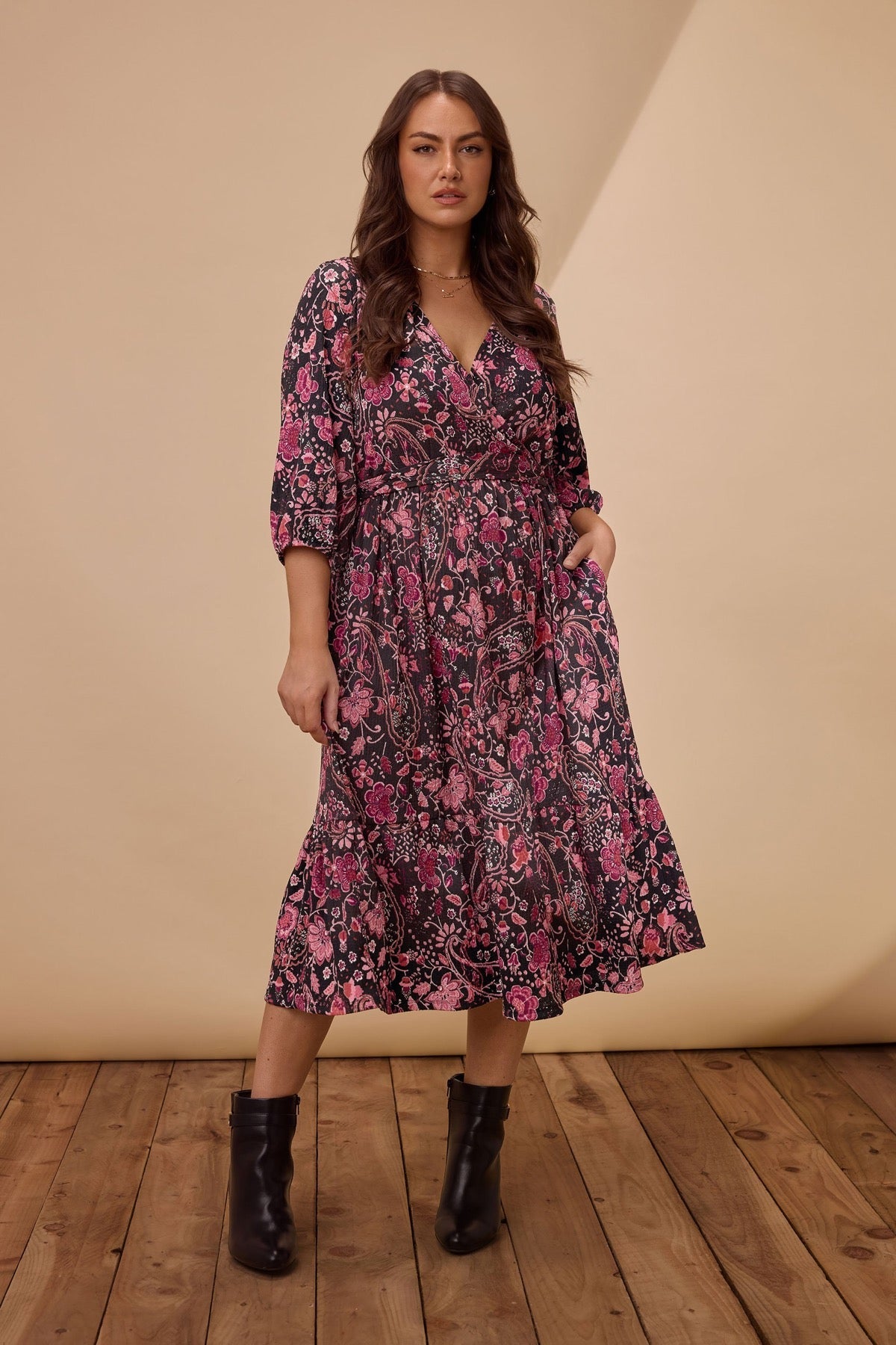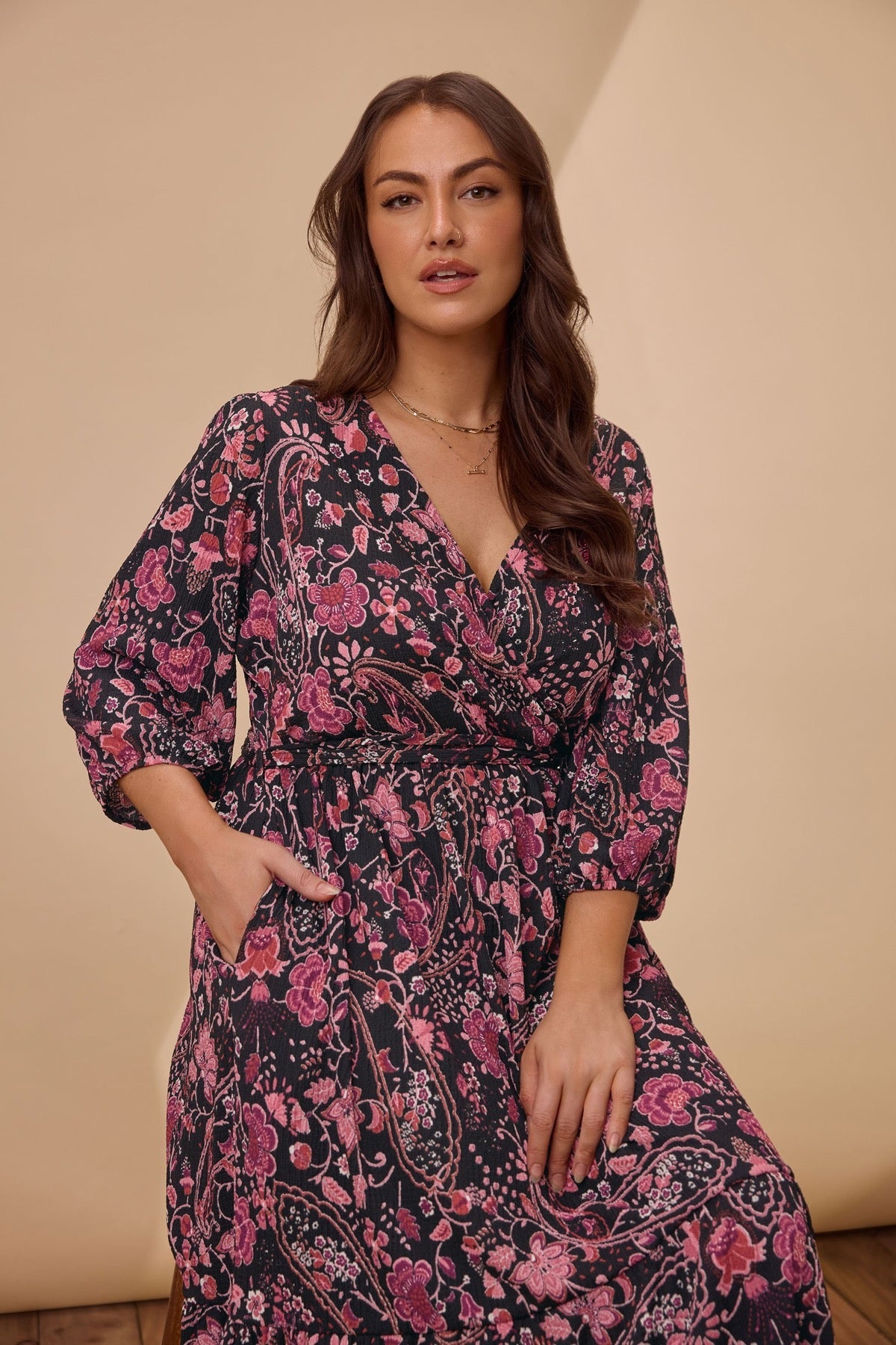 שמלה ארוכה במידות גדולות צווארון V דוגמת עם הדפס גזרת מעטפת 616311