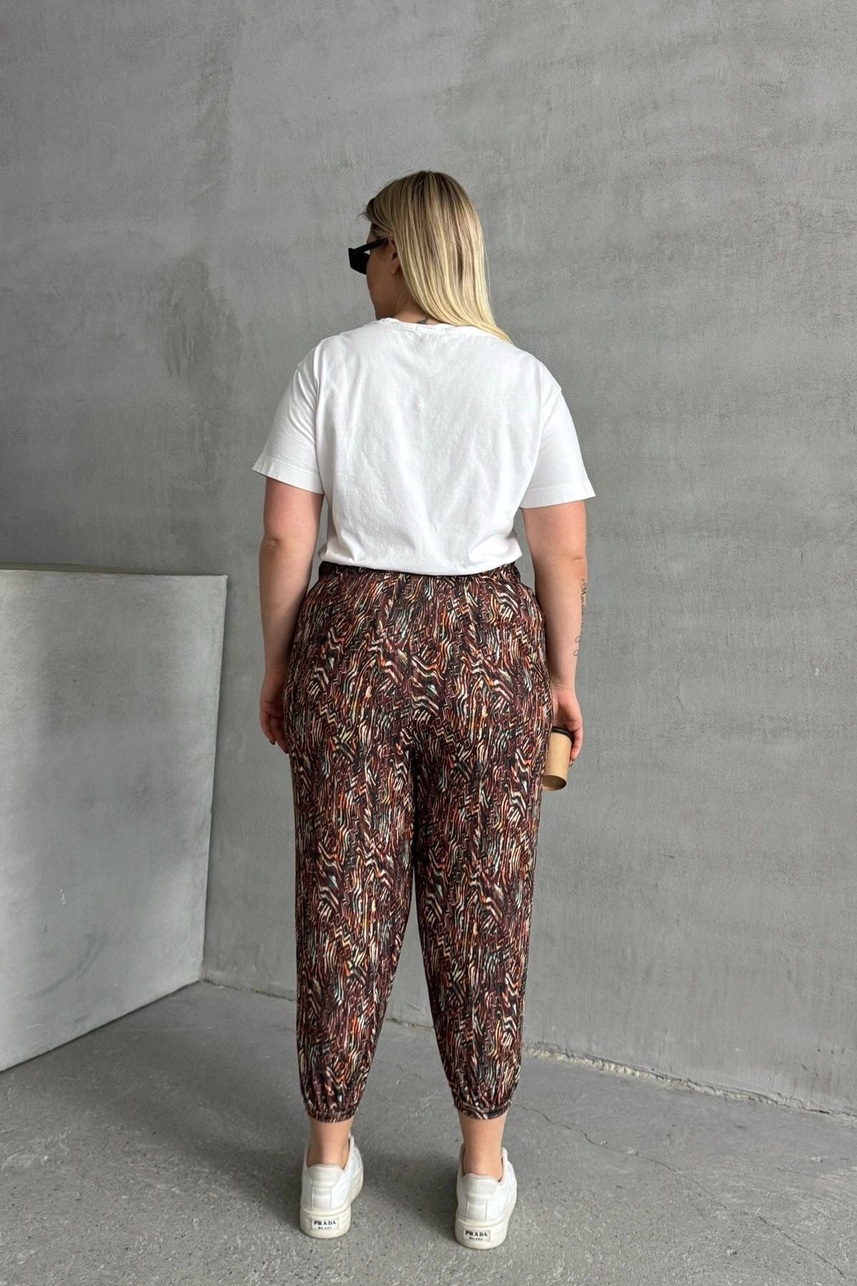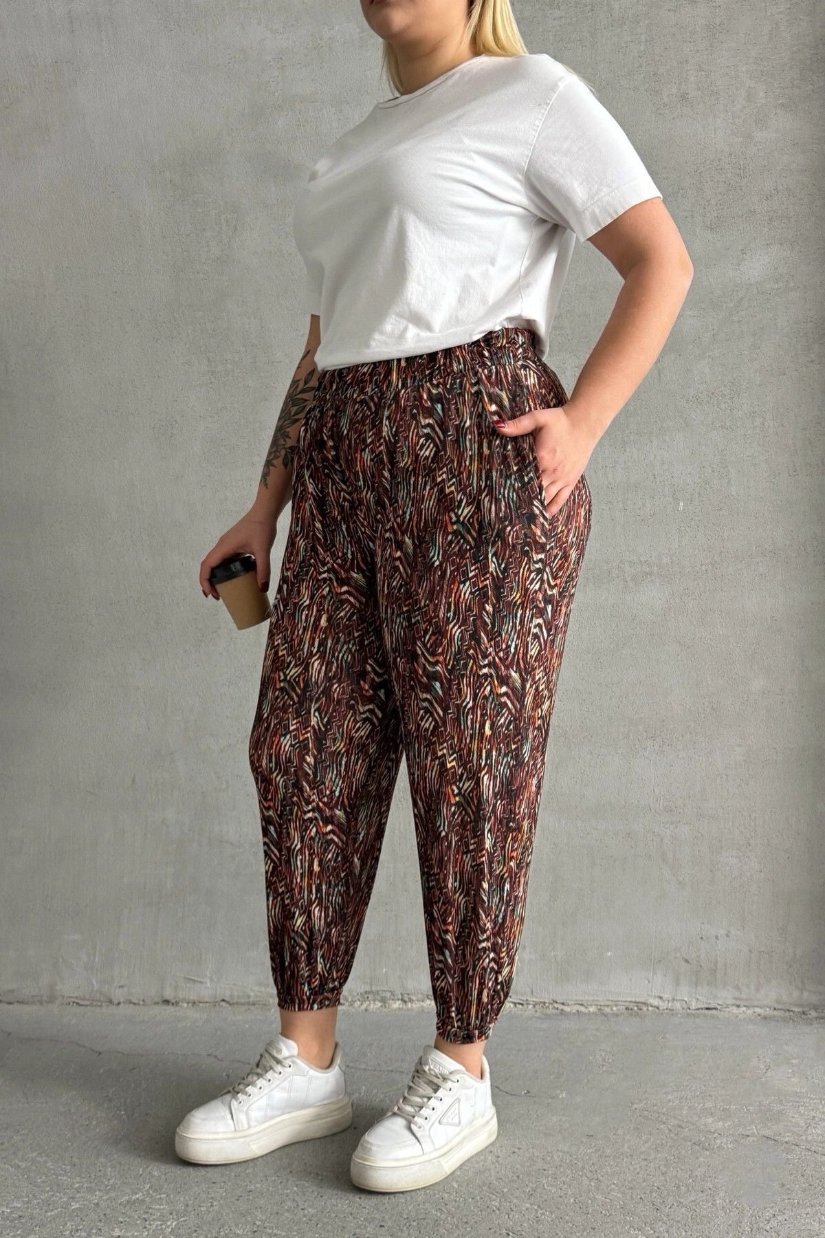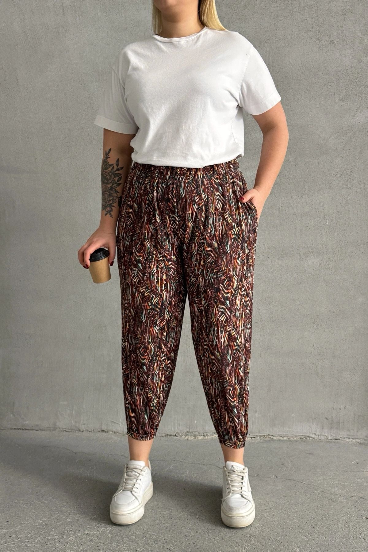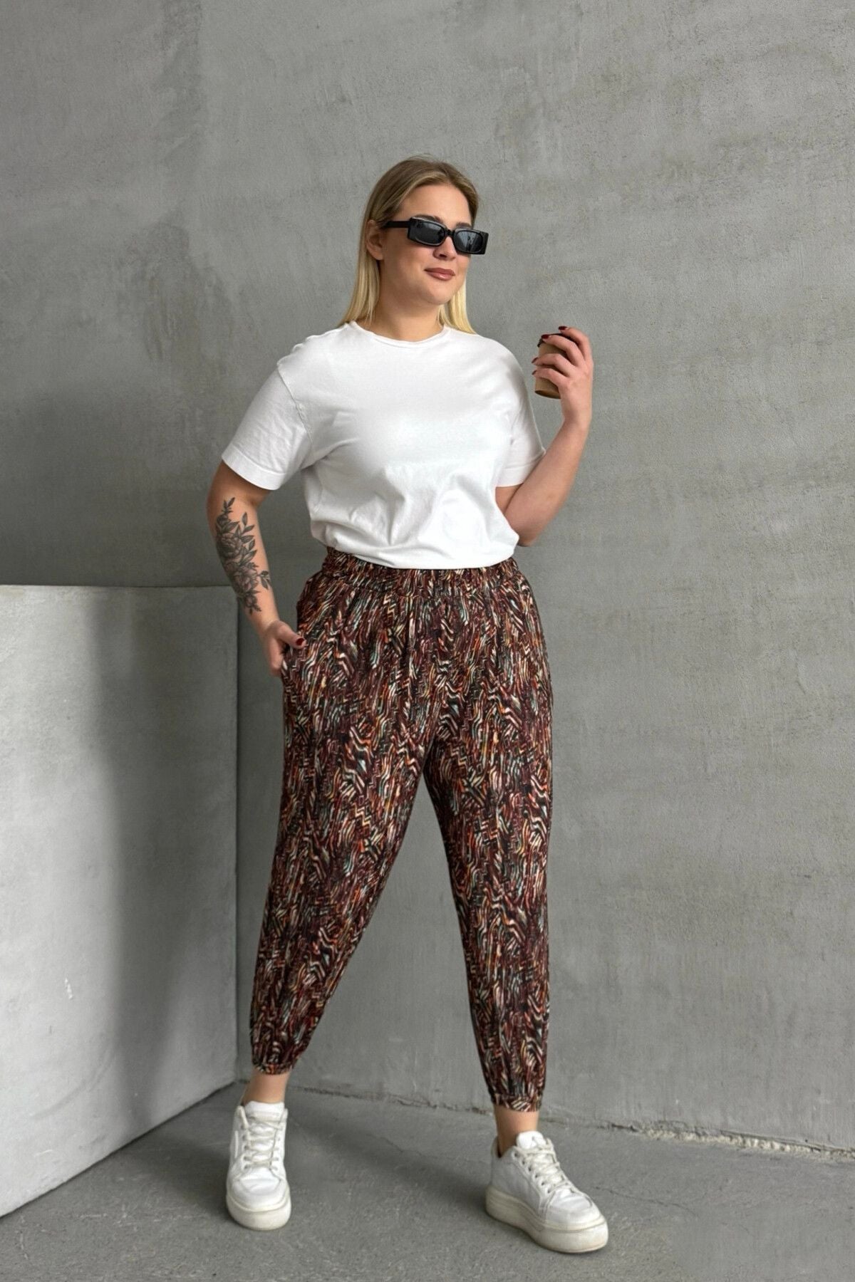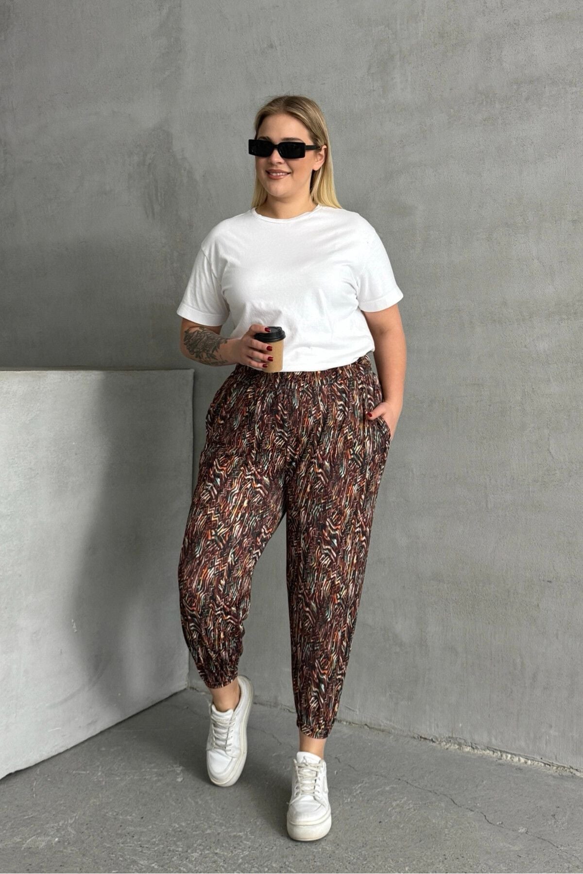 מכנסיים במידות גדולות גומי במותן גומי בשולי הקרסול עם הדפס עם כיסים 74-77