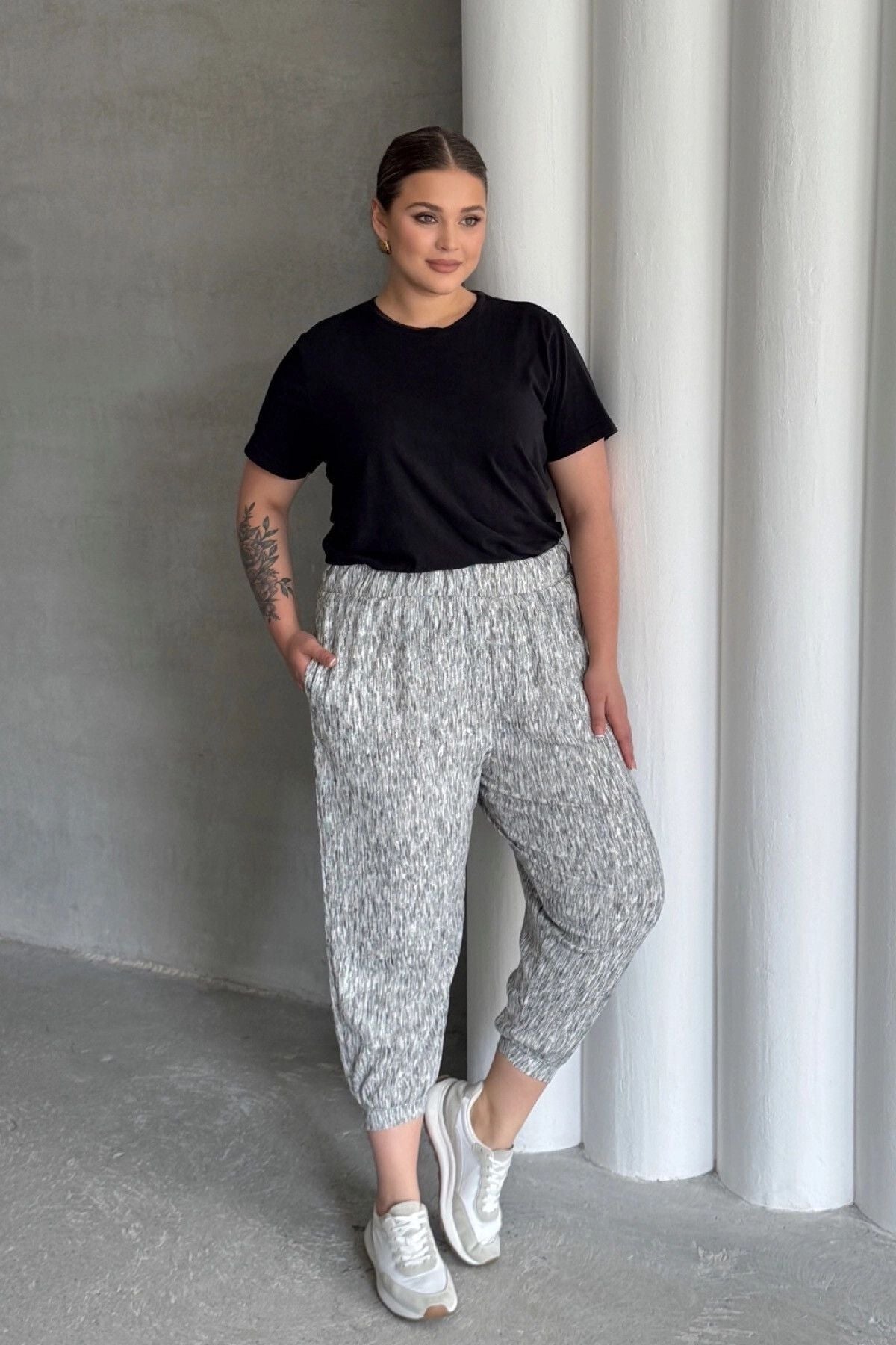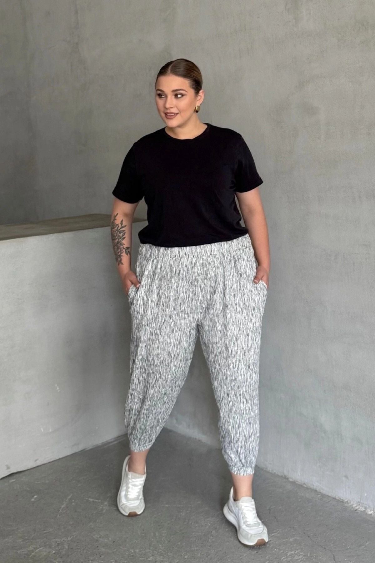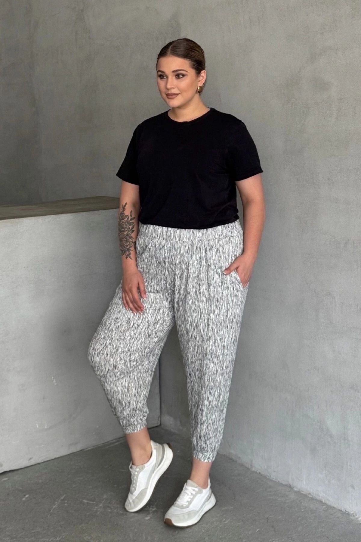 מכנסיים רחבים במידות גדולות גומי במותן גומי בשוליים עם כיסים עם הדפס 88-177