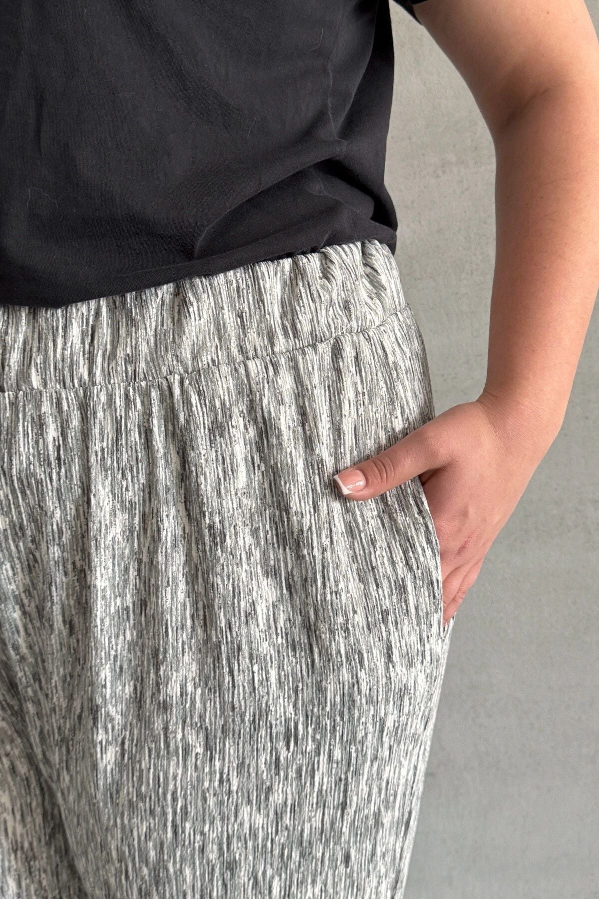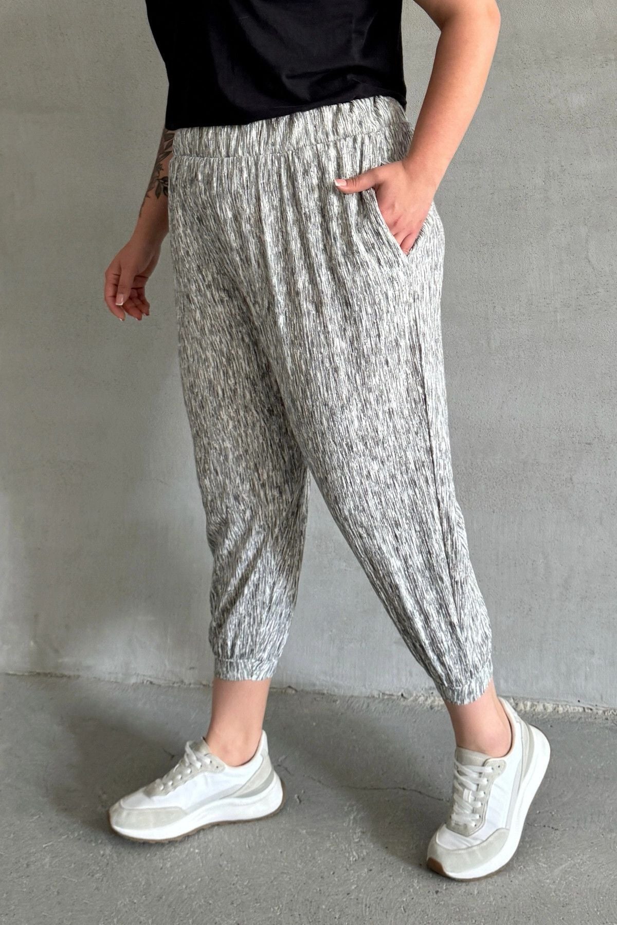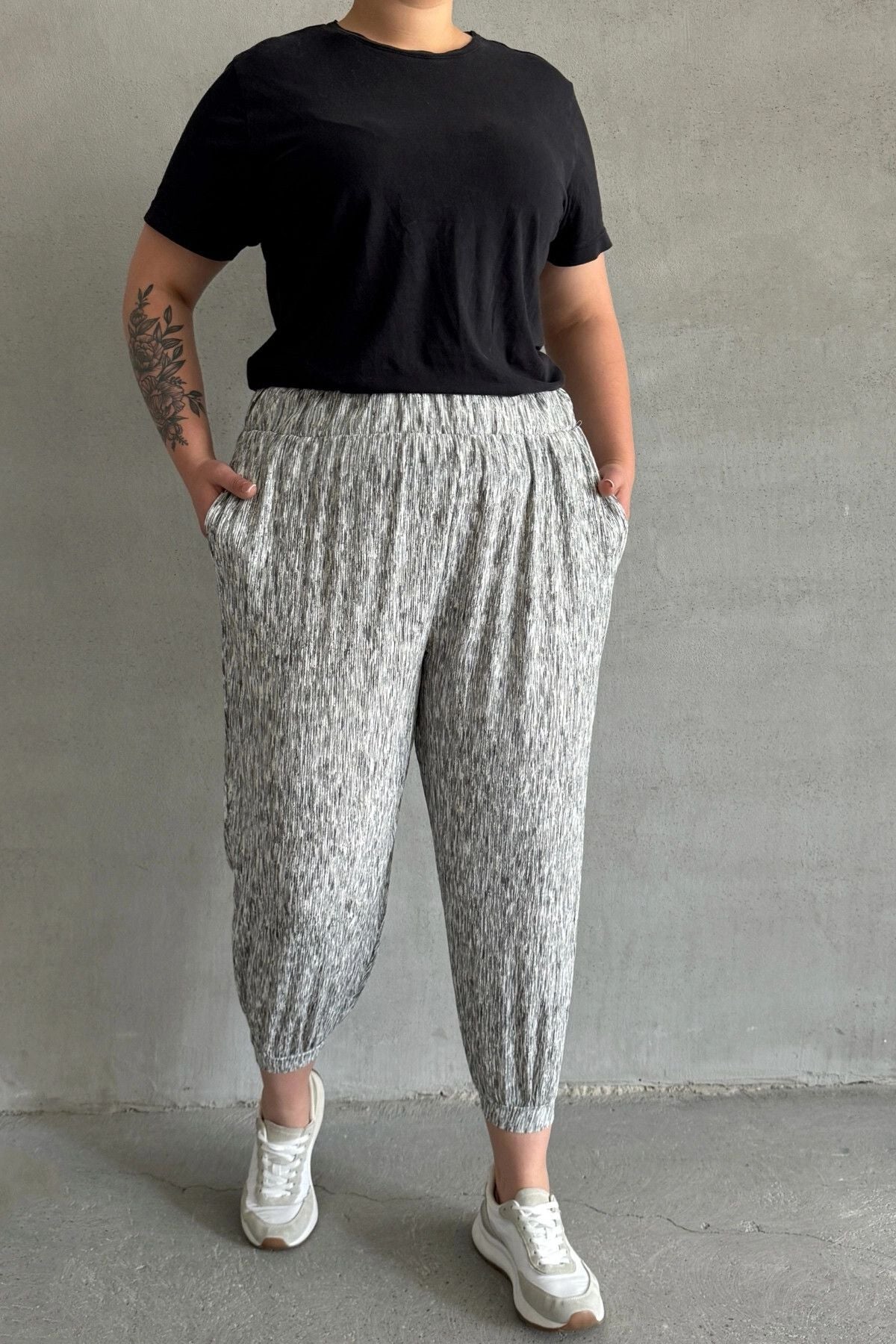 מכנסיים רחבים במידות גדולות גומי במותן גומי בשוליים עם כיסים עם הדפס 88-177