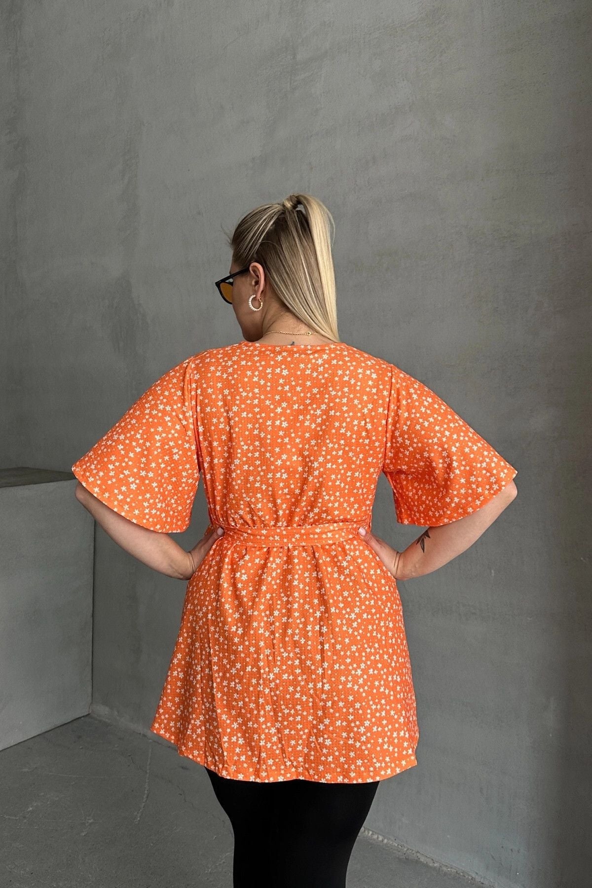 • פרטי הדגם: שרוול קצר צווארון V קשירה מקדימה