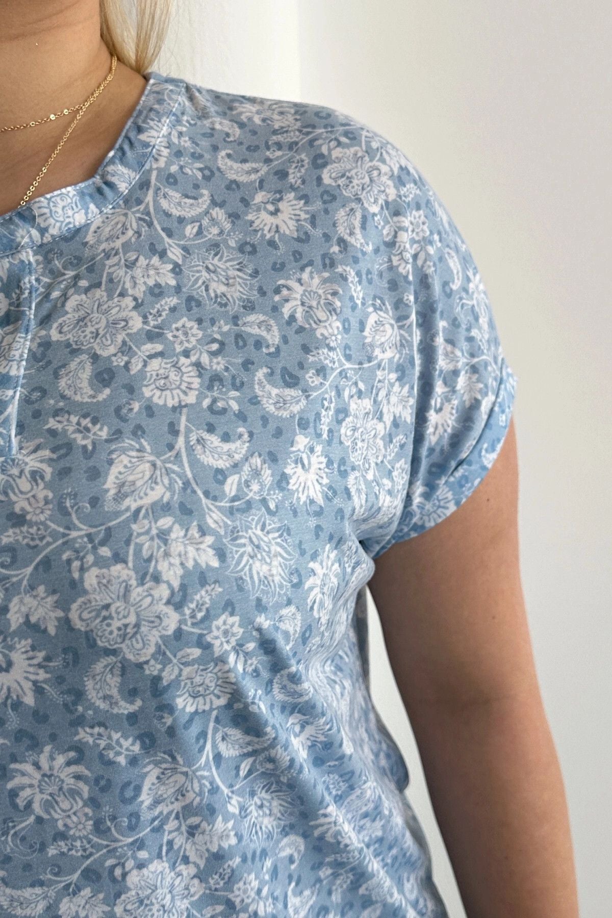 • תיאור מוצר: חולצה זו, עם דוגמתה האלגנטית וצווארון הV הפתוח עם החריץ, תוסיף רעננות לשיק היומיומי שלכם. הגזרה הנוחה והשרוולים הקצרים מעניקים נוחות תוך שמירה על מראה מלא סטייל. היכולת לכבס אותה במכונה מספקת קלות שימוש, וניתן לשלב אותה בקלות עם ג'ינס או חצאית.