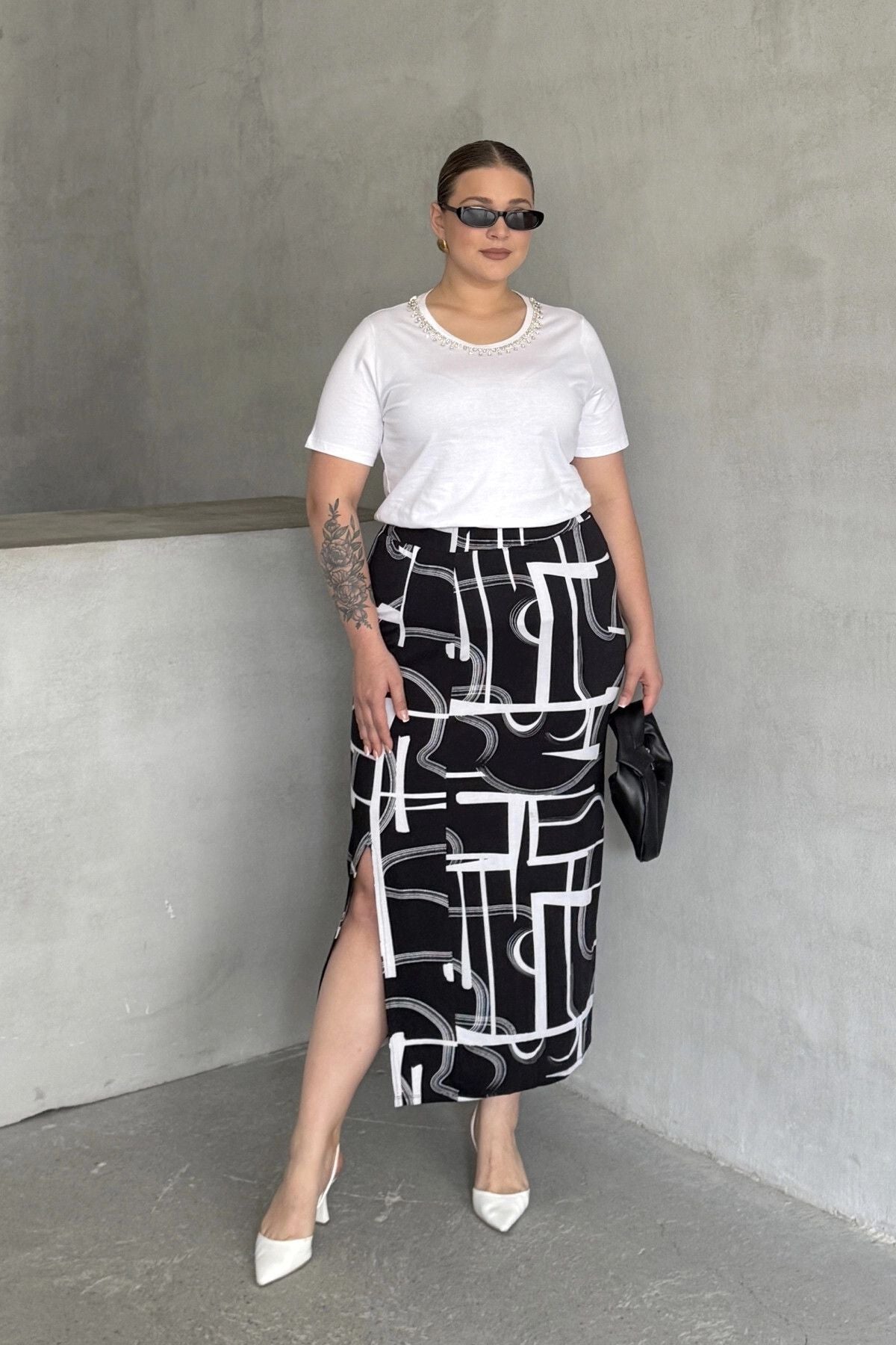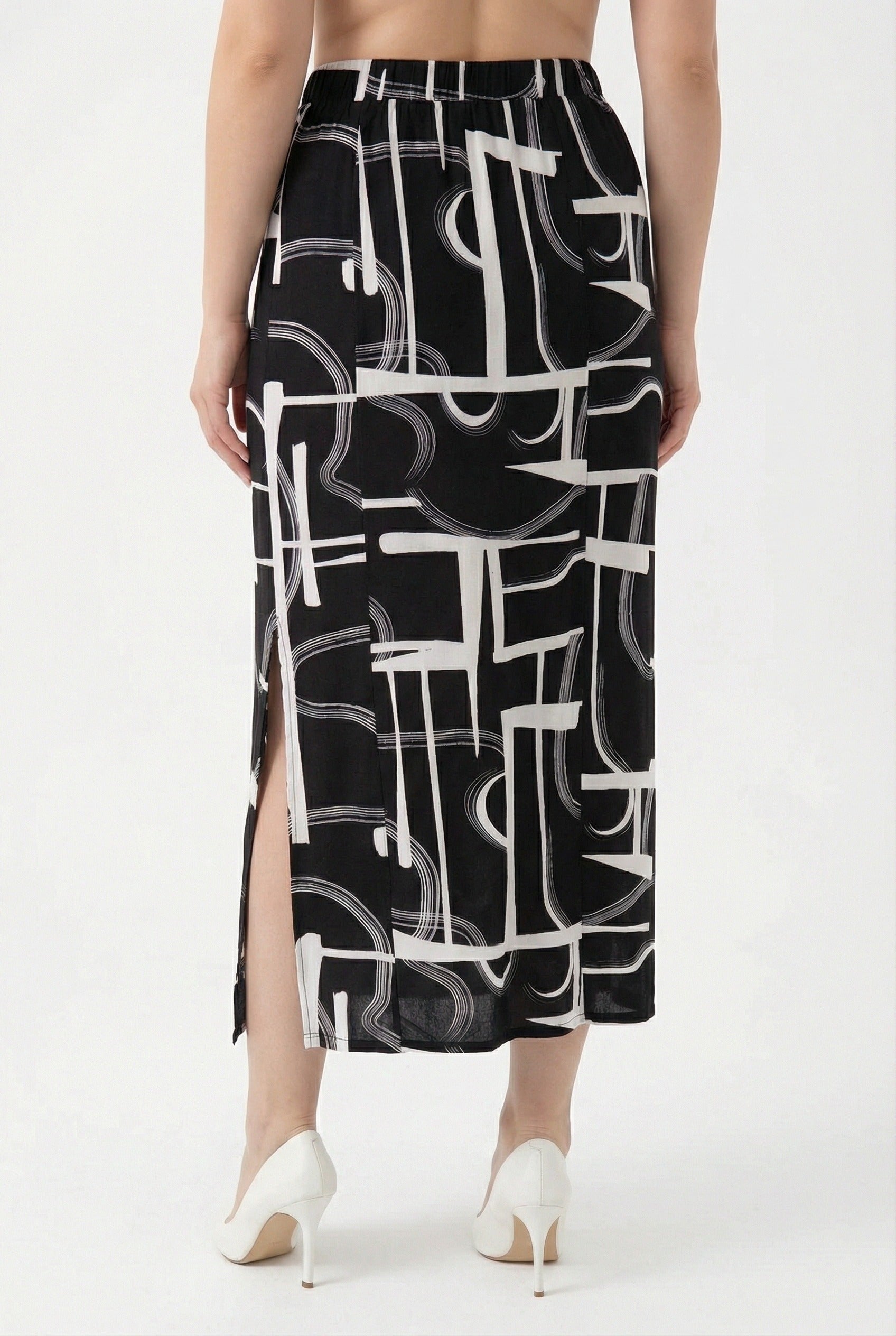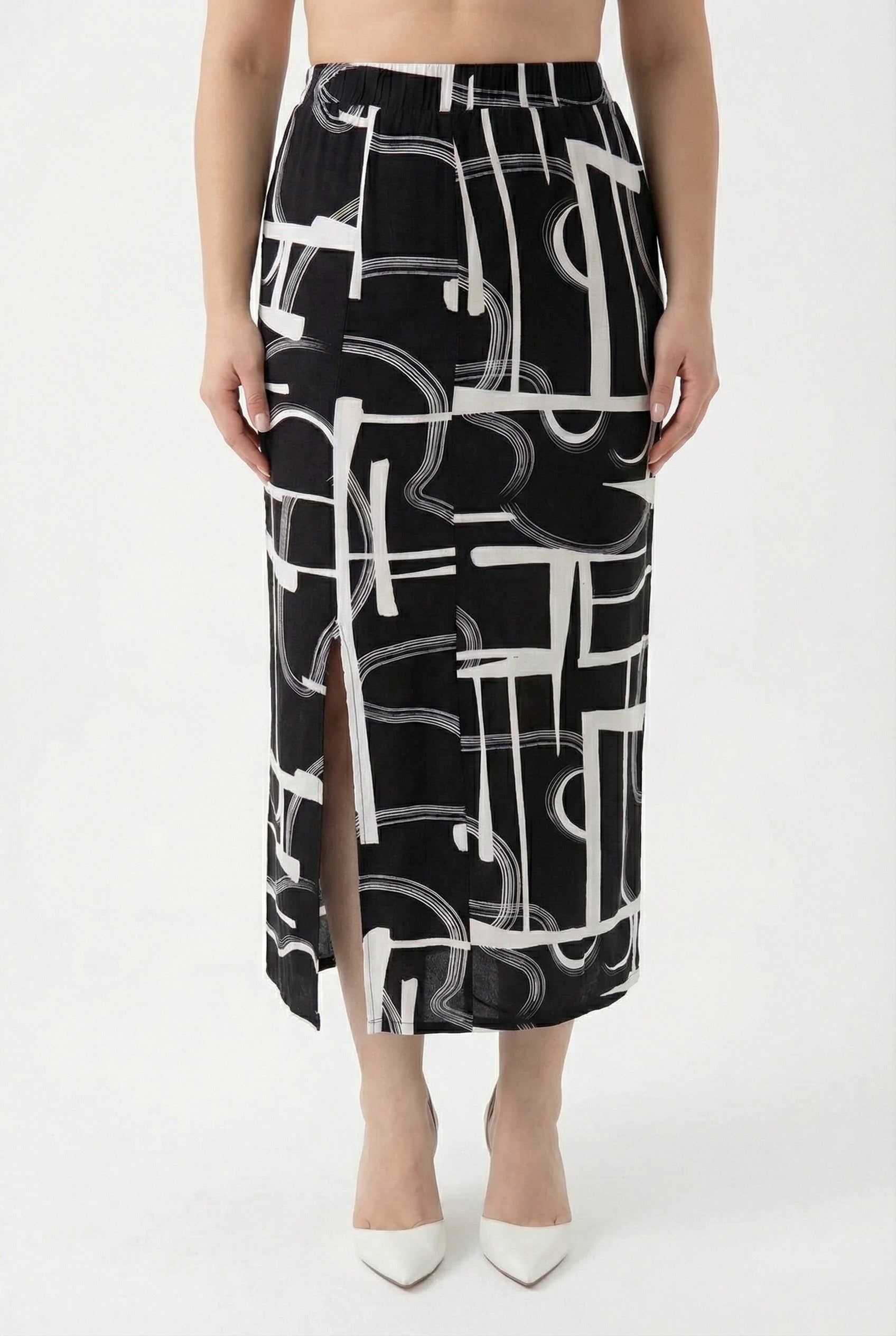 - תיאור מוצר: חצאית זו, הבולטת בדוגמה המודרנית ובעיצוב השסע, משלבת אלגנטיות ונוחות. בשילוב טישירט בסיסית ונעלי עקב מתקבל מראה יומיומי ואופנתי המתאים גם לאירועים מיוחדים.