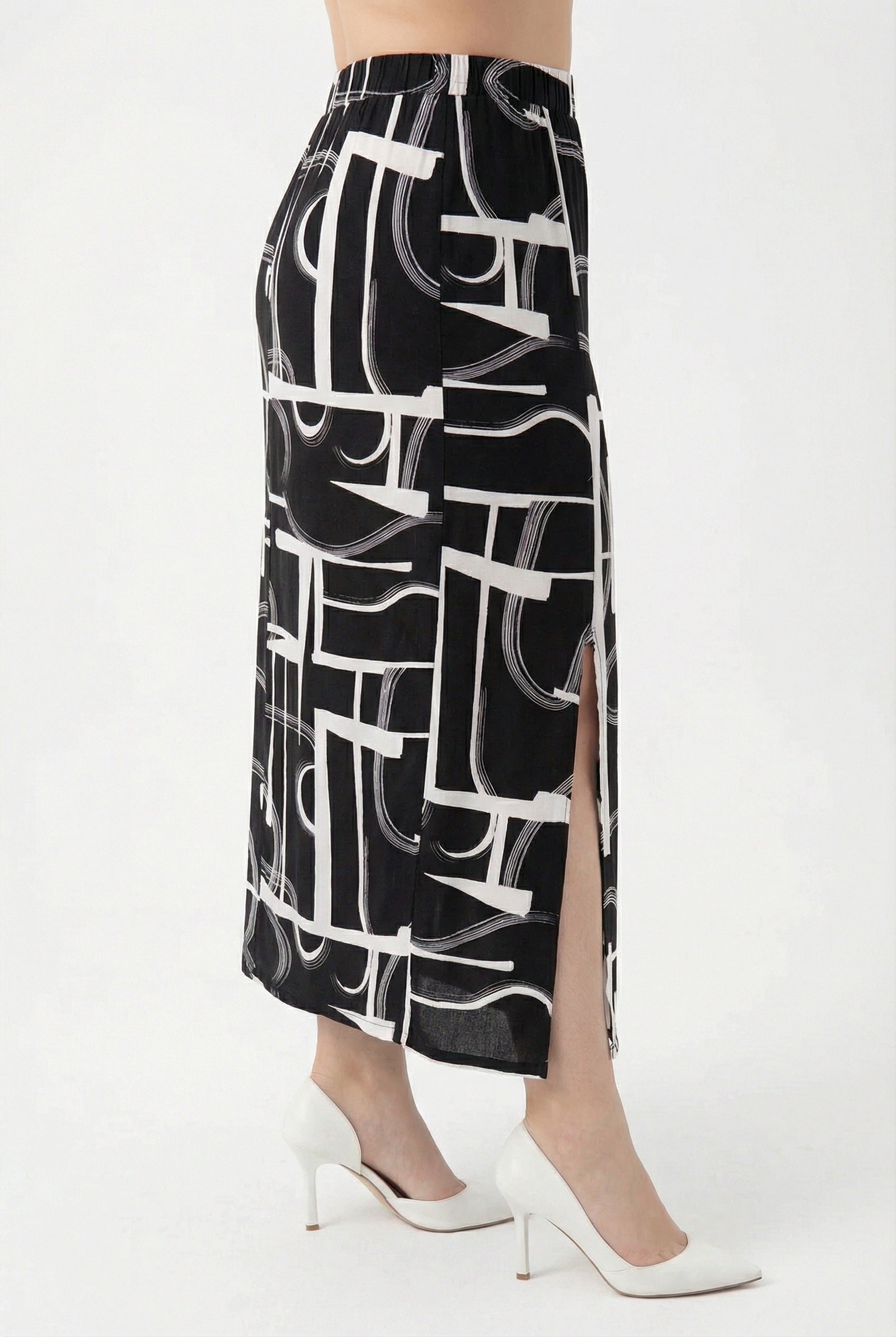 חצאית ארוכה דוגמת אבסטרקט שסעים בצדדים