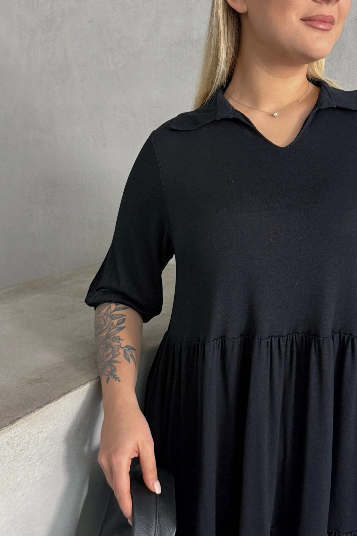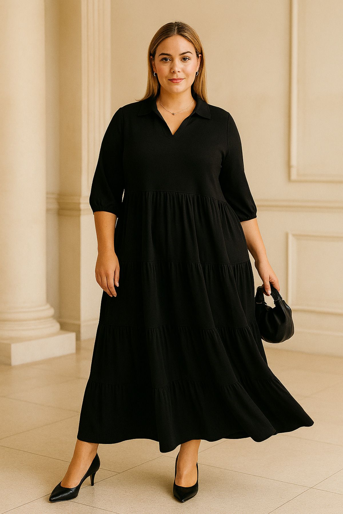 • תיאור מוצר: שמלת מקסי רבשכבתית זו מאחדת בין אלגנטיות ונוחות. פרט הצווארון הקלאסי מעניק מראה אלגנטי, בעוד הגזרה הנוחה מספקת נוחות לאורך כל היום. ניתן לשלב אותה בקלות עם נעלי עקב או עם סנדלים לשימוש יומיומי או לאירועים מיוחדים.