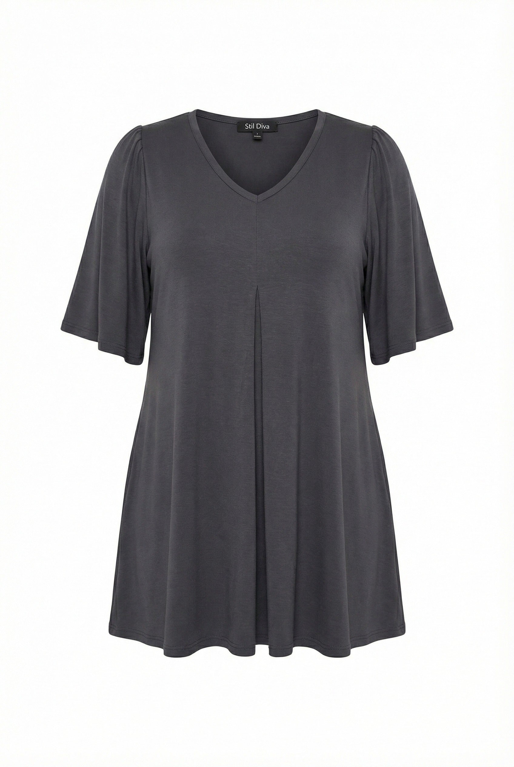 - פרטי הדגם: צווארון וי שרוול מלאכית קצר גזרה אסימטרית