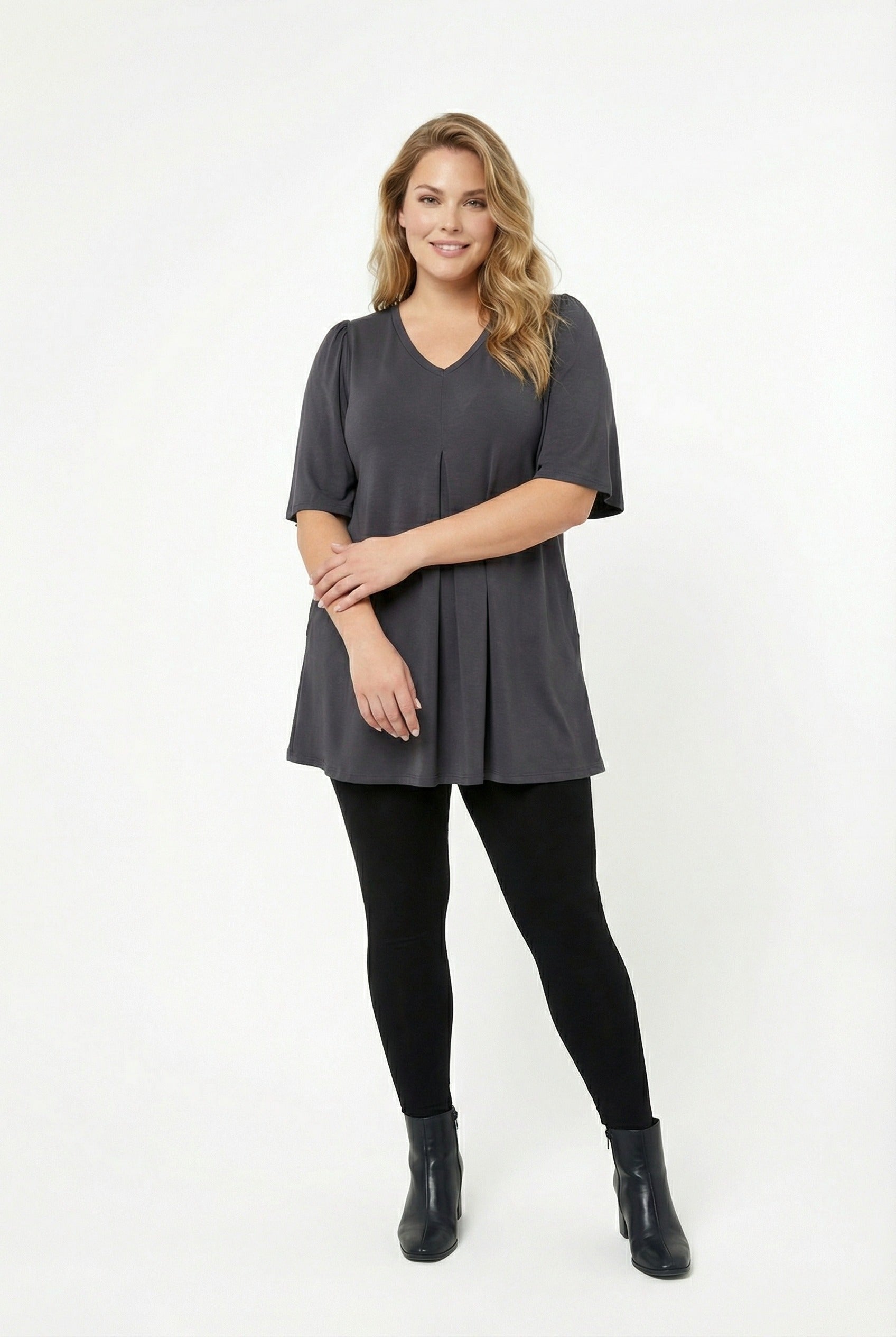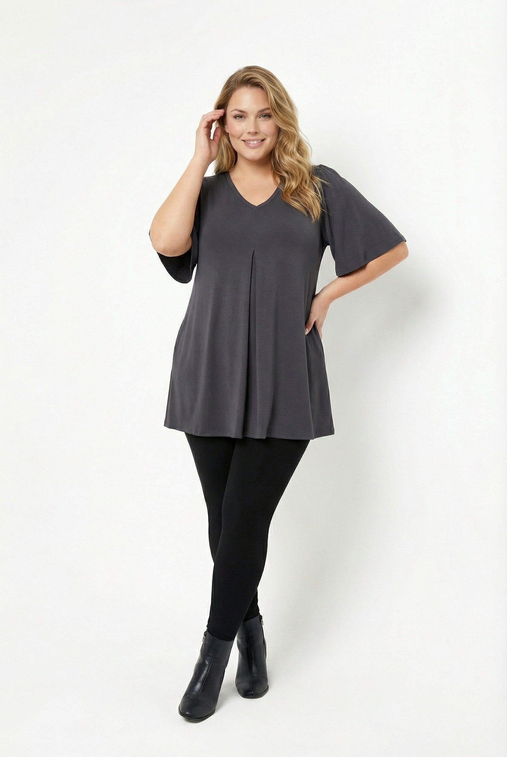 - תיאור מוצר: בעיצוב עכשווי ובנוחות מעולה, חולצה זו מדגישה את הדקולטה בעזרת גזרת צווארון הV, ומעניקה סגנון ייחודי ושונה באמצעות הגזרה האסימטרית. בזכות הבד הגמיש, החולצה מציעה גמישות מושלמת ומאפשרת חופש תנועה. היא שומרת על השילוב של אלגנטיות ונוחות הן בחיי היומיום והן ברגעים מיוחדים.
