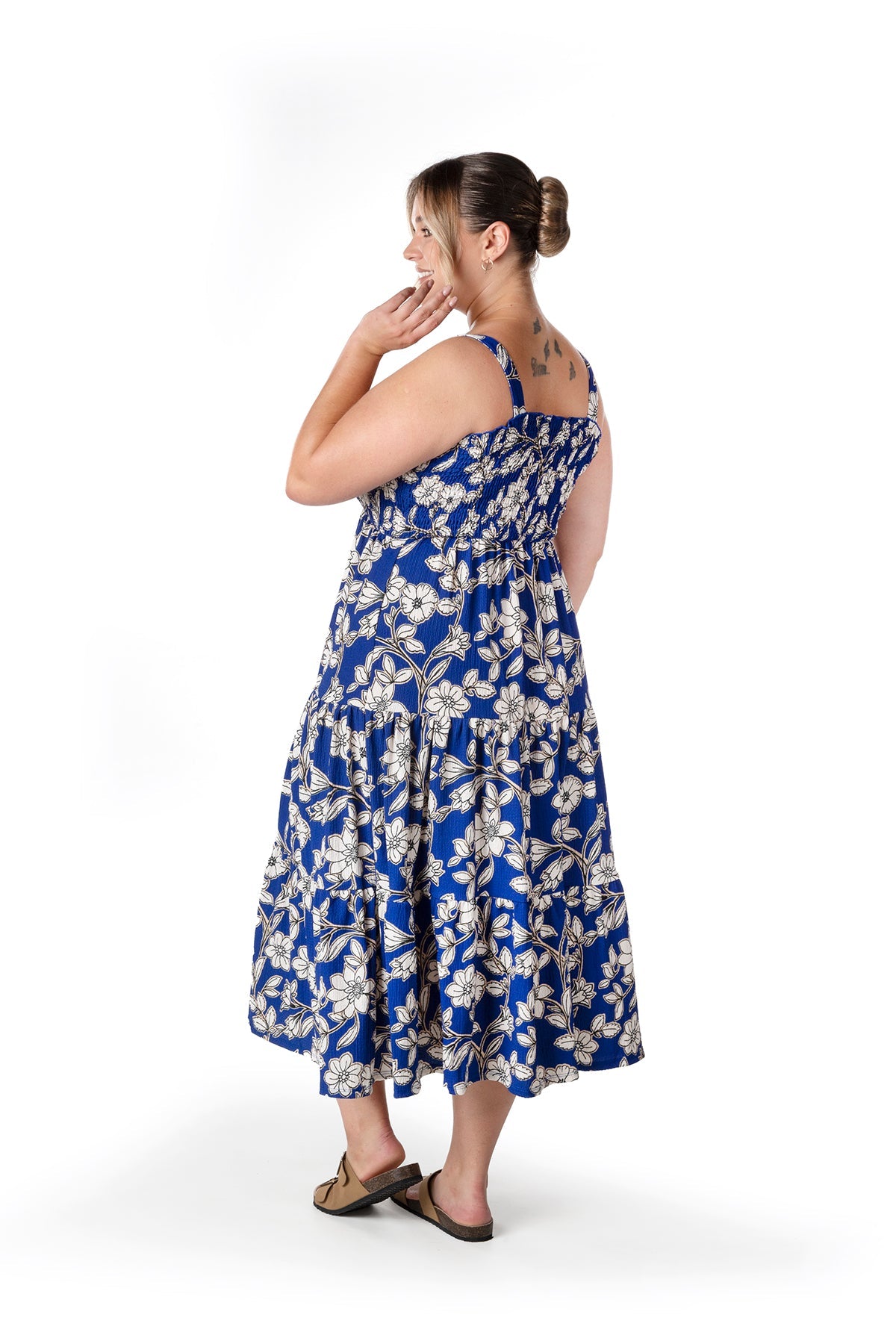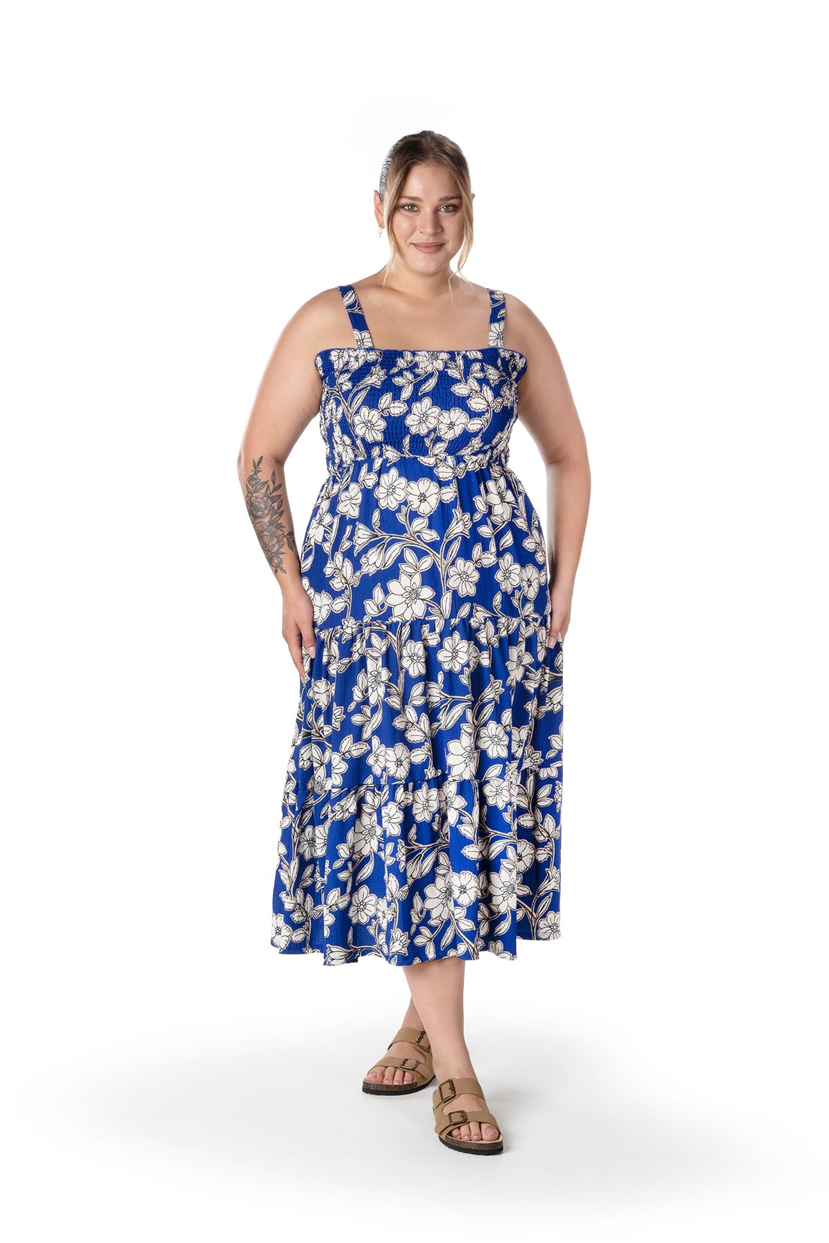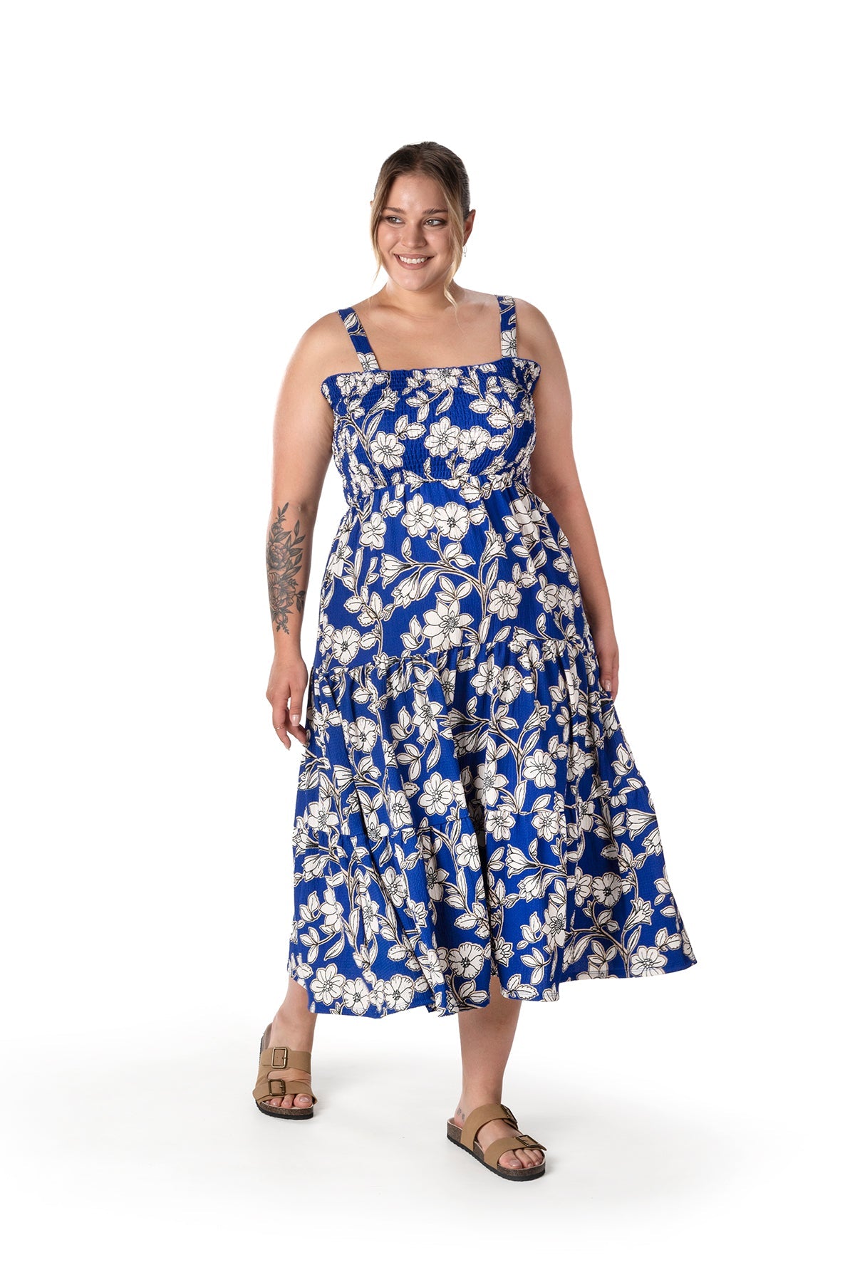 שמלה במידות גדולות גומי במותן עם כתפיות רחבות דוגמת פרחים T-80